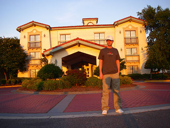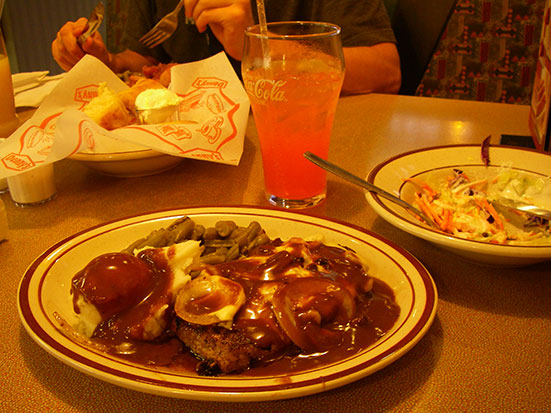 Auf dem Highway kamen wir durch lange Staus nur langsam voran. Es war schon 6 als wir im La Quita eincheckten. Das Motel war gute 15 Minuten vom Strand entfernt. Jetzt waren wir zu müde, um noch irgend ’ne Aktion zu machen. Wir setzten uns nebenan ins tiefgekühlte Denni’s. Ich bestellte mir ein Swiss Steak, mit Käse überbacken, Kartoffelbrei und grüne Bohnen. Sehr gut.