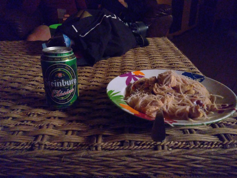 Zuerst mal gab’s Abendessen – €5 für ein Hühnchen-Nudel-Ding + Bier. Naja, günstig geht auch da anders. Im Zimmer dann checkte ich das Internet mit endlich mal gutem WiFi. Draußen machten die Deutschen Kids Party. Ein älterer Mann fluchte in einem Zimmer über oder neben mir. Es war in der Tat laut bis gegen 3, dann kann man nichts machen.