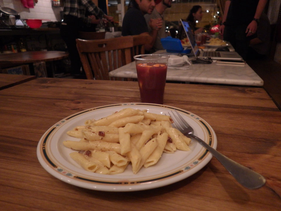 Ein Einkauf bei Lidl brachte mir das schnelle Abendessen (Sushi). Im Hostel gab’s dann noch das Family Dinner für €6 mit Sangria. Auch nur Pasta Carbonara und auch hier etwas überteuert. Wenigstens saß ich am Tisch mit ein paar jungen Leuten. Irgendwie kam das Gespräch dann auf Politik, Tribalism und Donald Trump, wo ich meine Ideen mal auskippen konnte. Ich war leicht beschwippst und leider sagte auch hier jemand was von interessanten Ideen, womit das Ego wieder Auftrieb bekam. Naja, Tribalism ist wohl genetisch verankert, man musste sich eben lange zum Überleben in Gruppen zusammenfinden, was auch heute immer noch nachwirkt. Statt künstlicher Gruppenbildung mit Religion, gibt es Ersatz-Religionen und Marken eben: Vegan, Crossfit, Nationalismus, am Ende eben Familie und Alter usw.. Diese Tage ist es wohl die Kombi zwischen dem Buddhismus Buch und Krishnamurti, die alles durcheinander bringt. Wirklich Zeit für neue Sachen und Ziele.