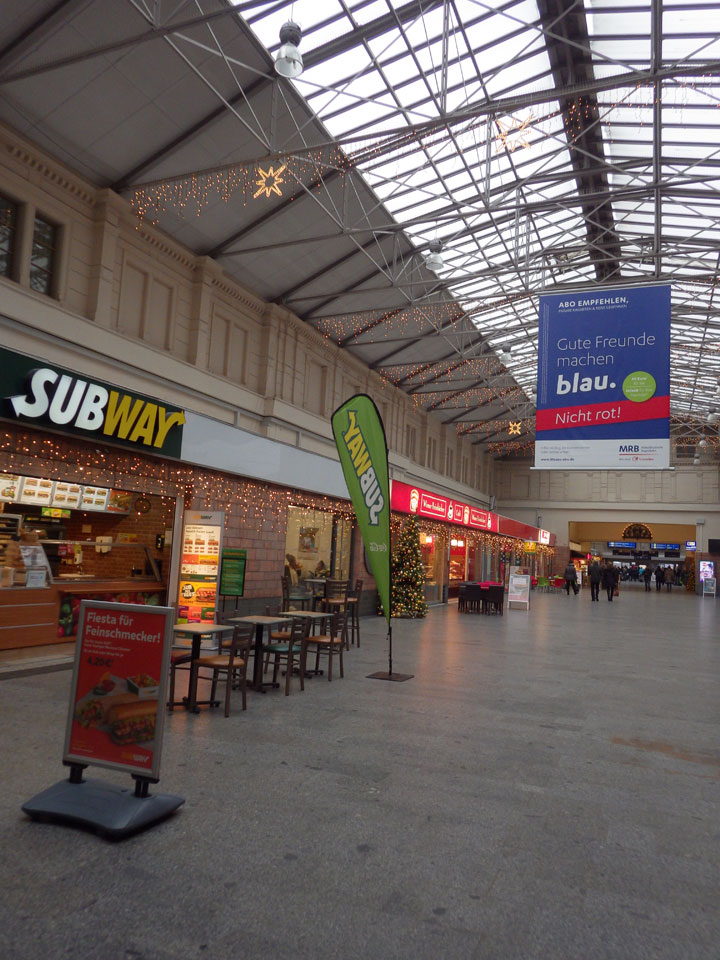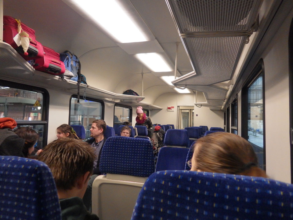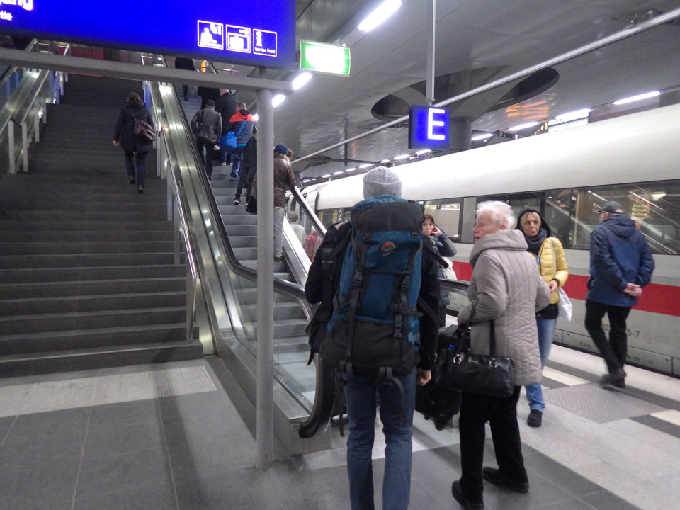 Mit dem Zug 13:31 war es einfacher, zur rechten Zeit auf dem Bahnhof zu sein. So geht’s mal wieder schnell los, mit großem Gepäck.