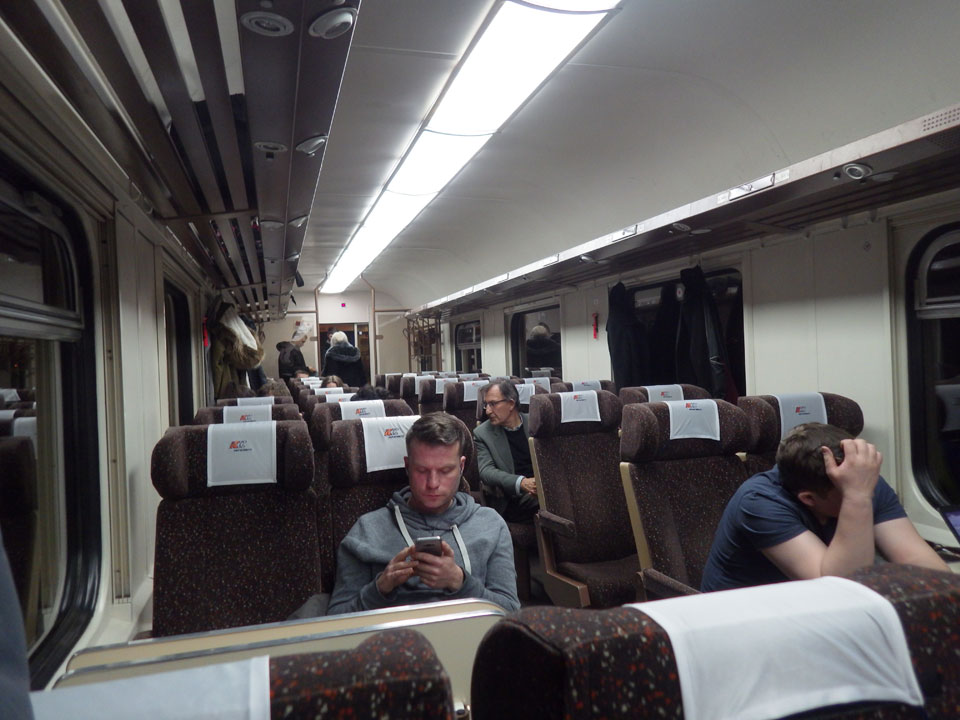 Die Fahrt verging schnell in recht vollen Zügen. Einzig Berlin-Poznan hatte genügend Plätze. In Polen gibt’s wneigstens einen kostenlosen Kaffee.