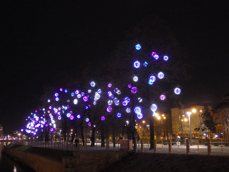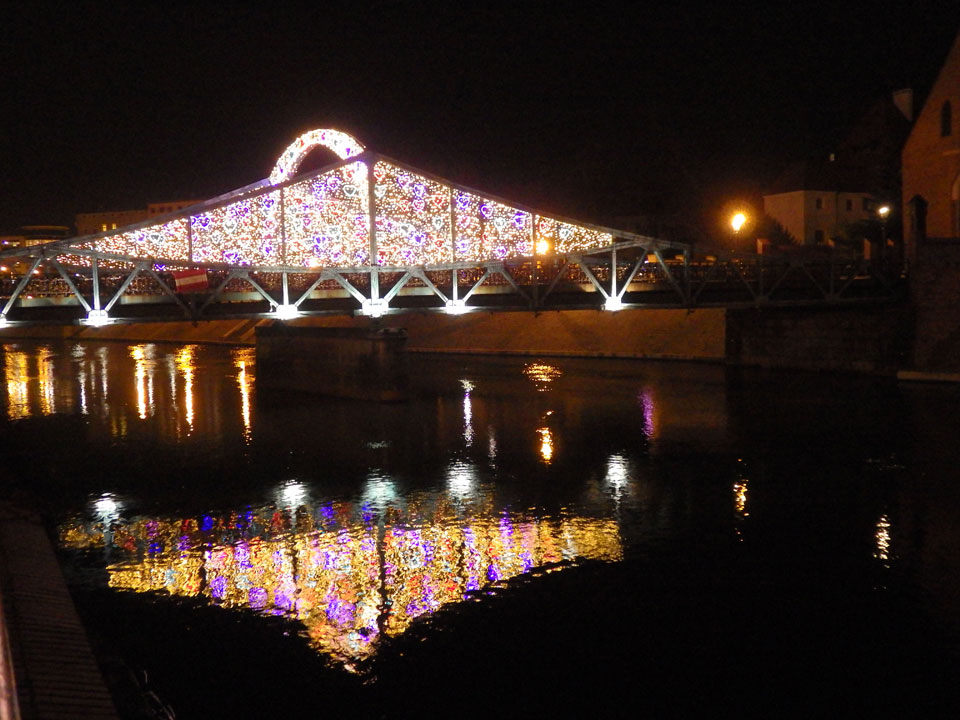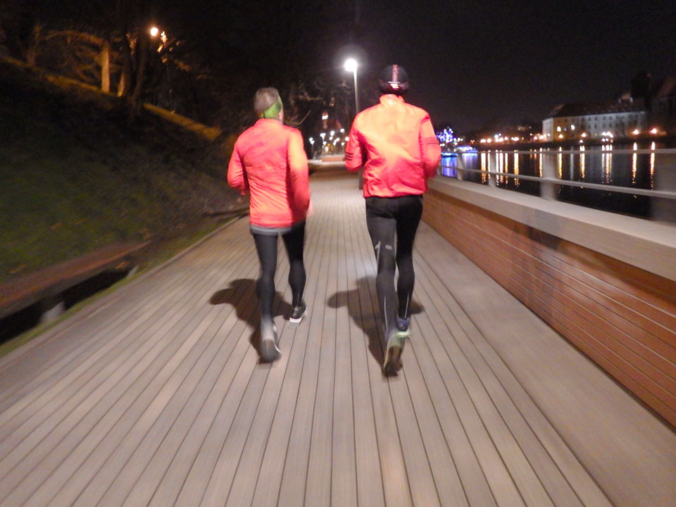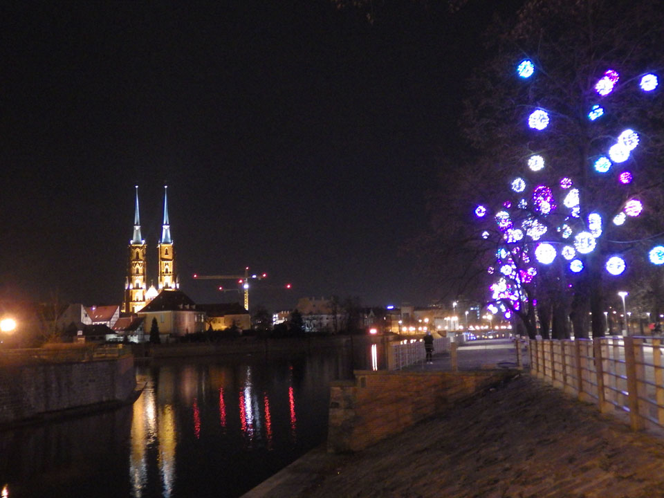 Ich rannte meine normale Runde quasi rückwärts. Wroclaw sieht noch ganz nett aus, mit einigen Weihnachtslichtern in den Bäumen oder an der Brücke. Ich schaffe reichlich 5km mit vielen Photostopps und fühlte mich dann erst mal besser.
