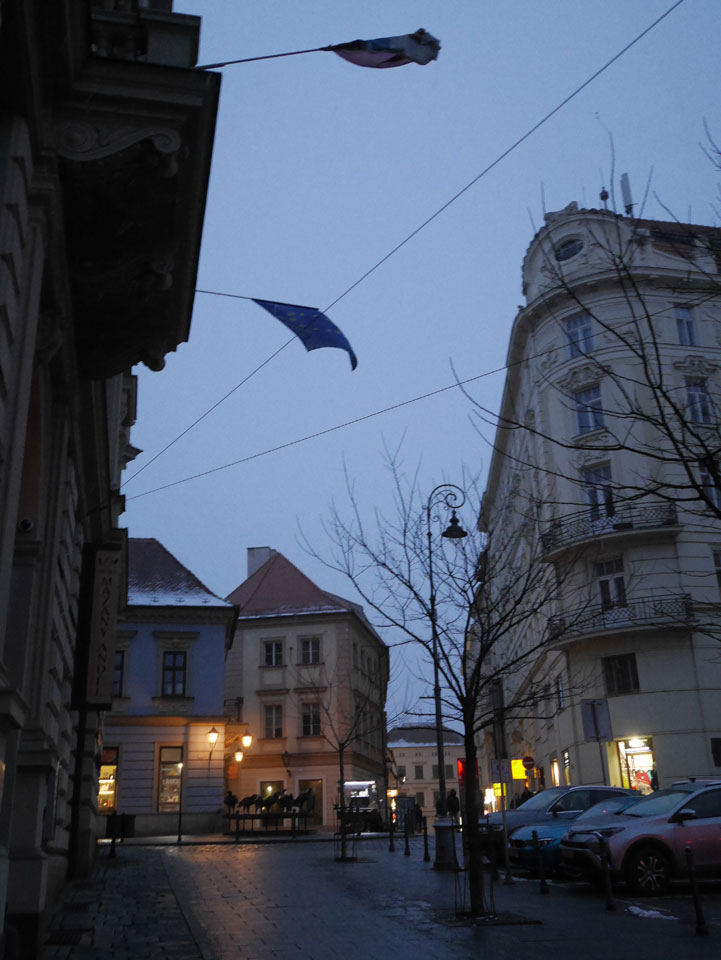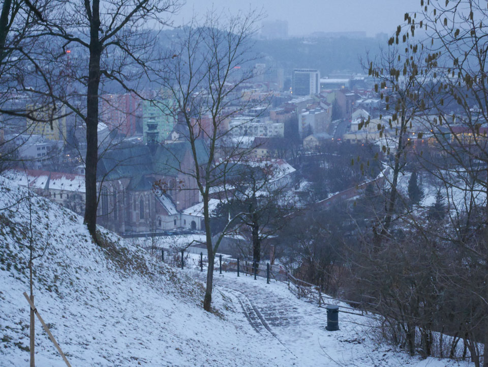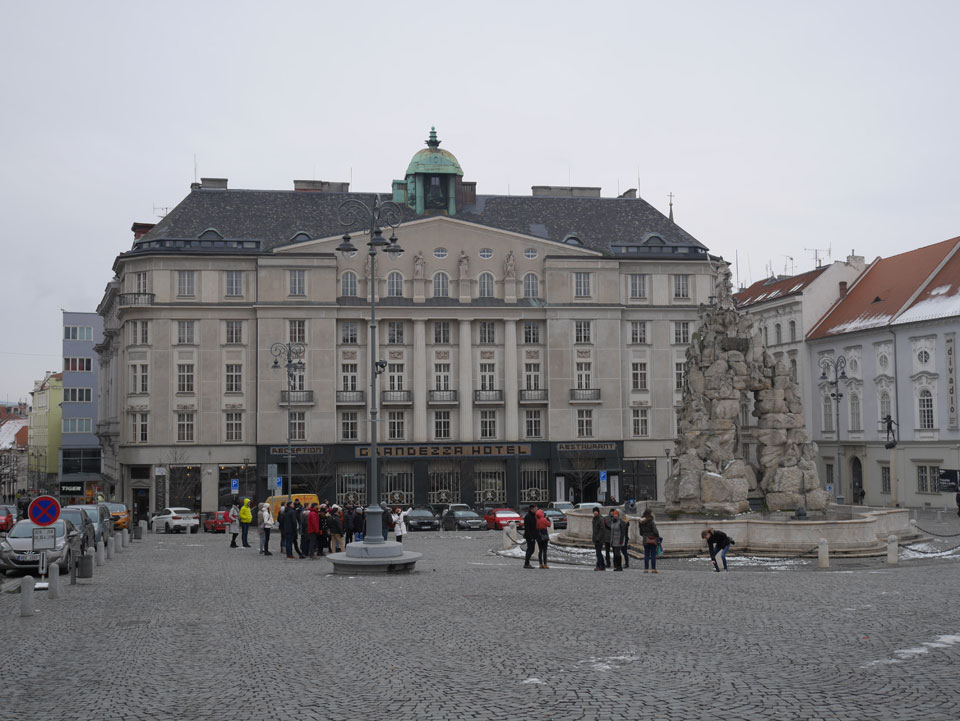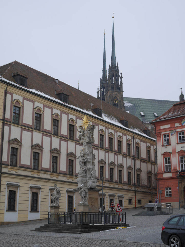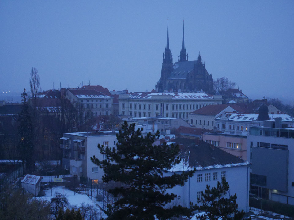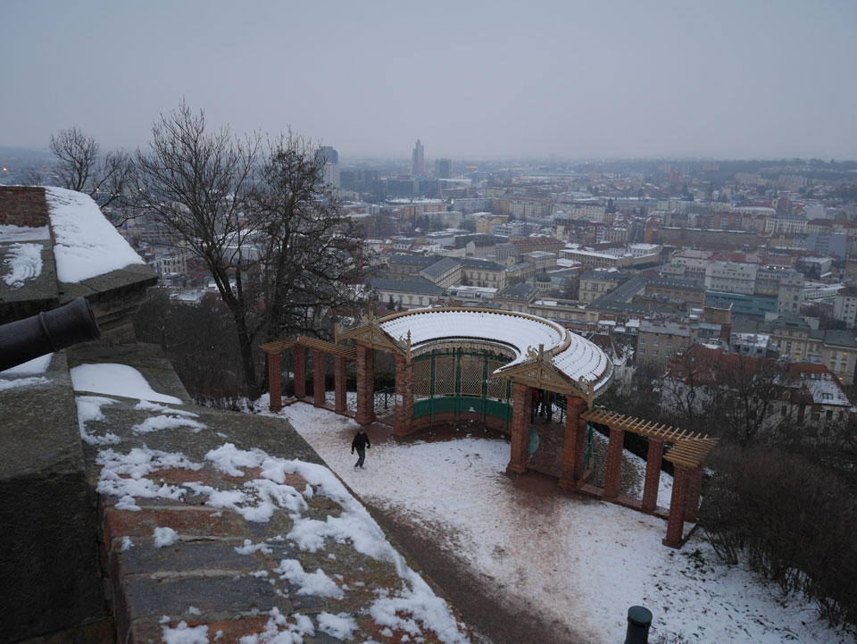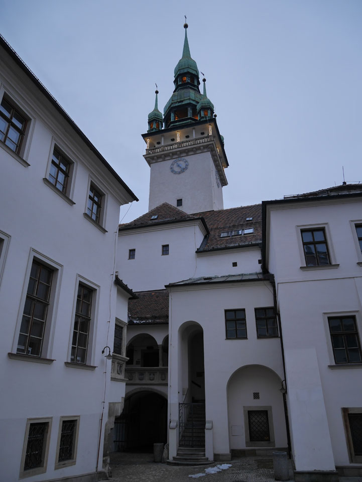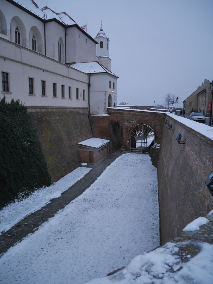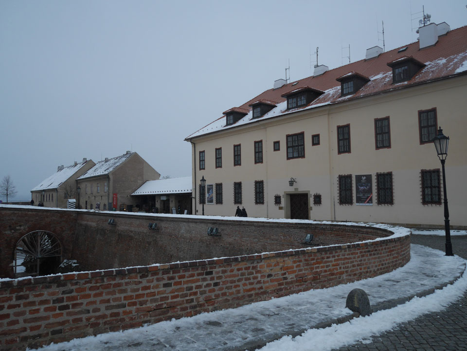 Winterwetter und leere Straßen. Ein paar Touristen wurden durch Brno geführt, ansonsten verbrachten die meisten Leute ihre Zeit besser im Warmen.