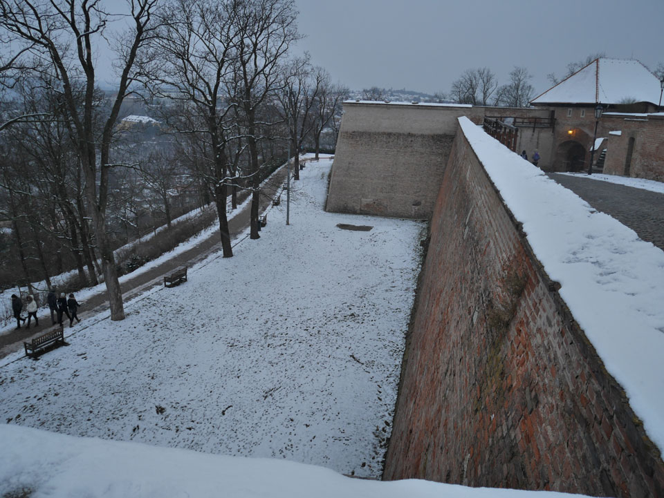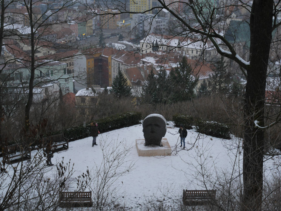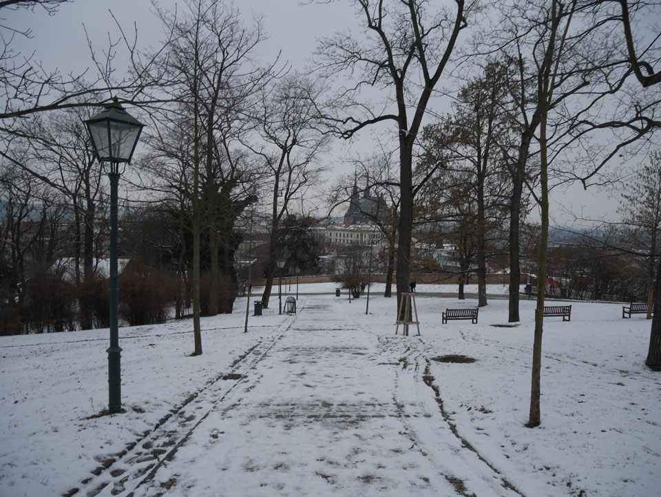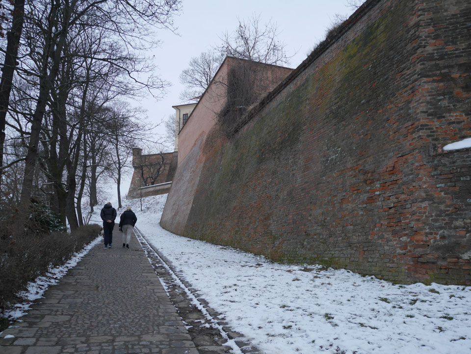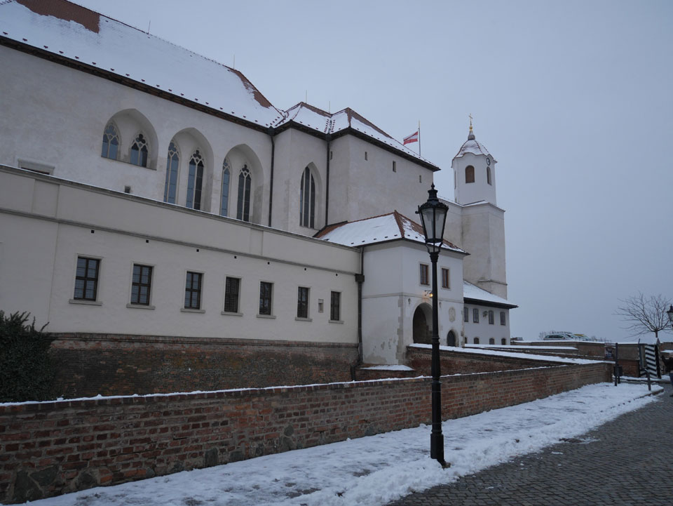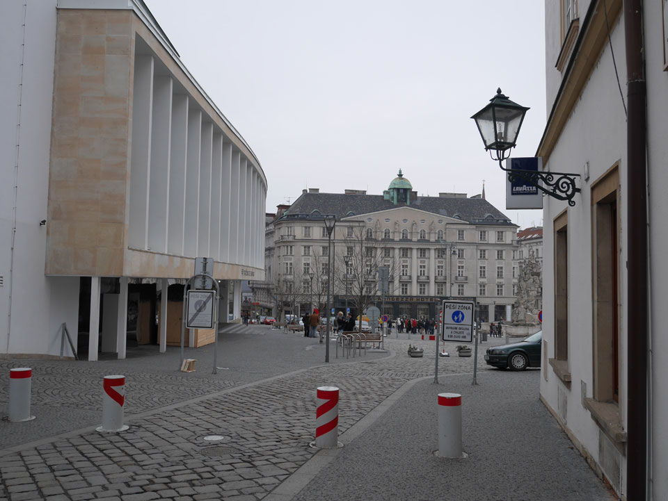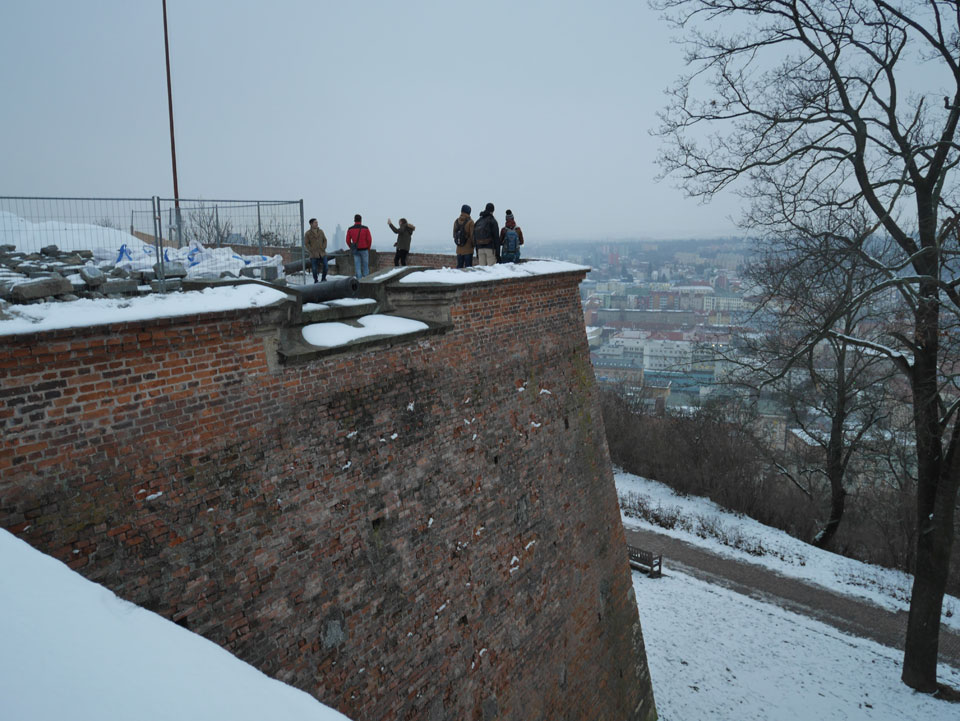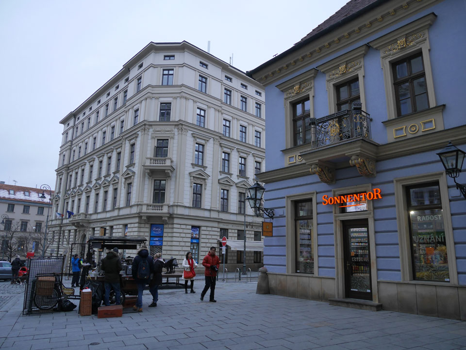 Winterwetter und leere Straßen. Ein paar Touristen wurden durch Brno geführt, ansonsten verbrachten die meisten Leute ihre Zeit besser im Warmen.