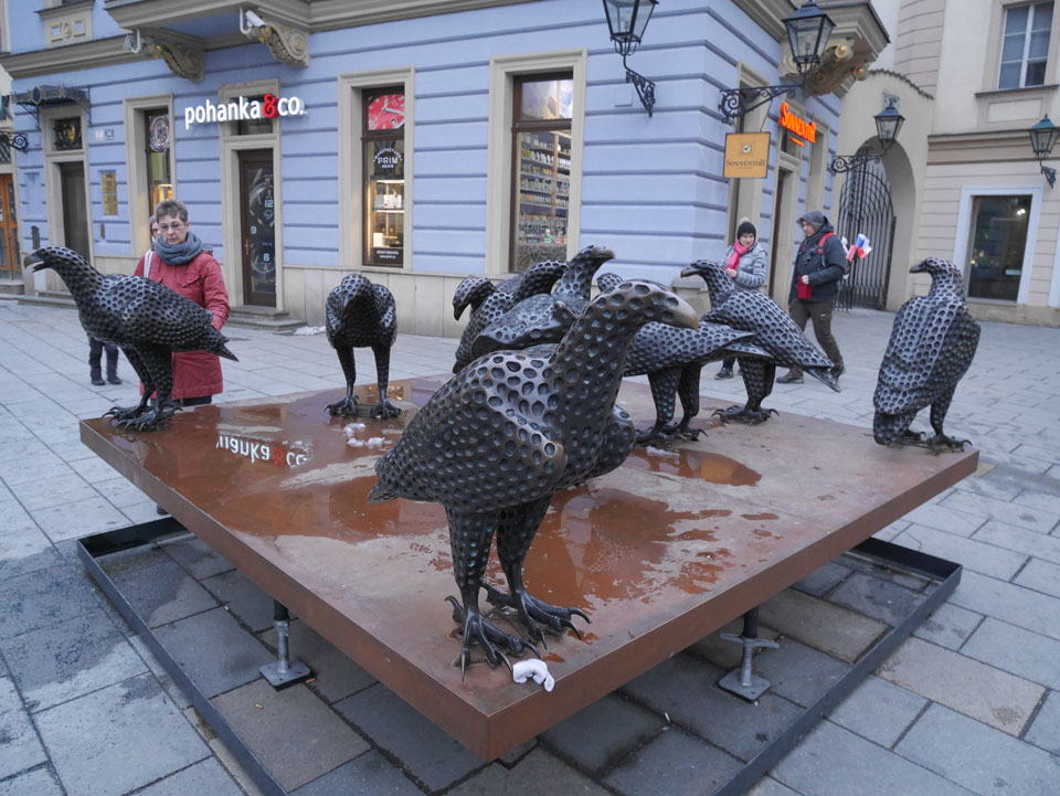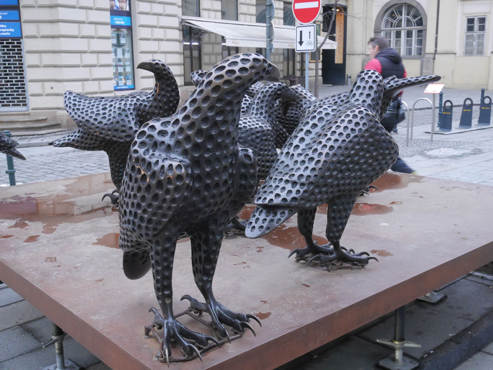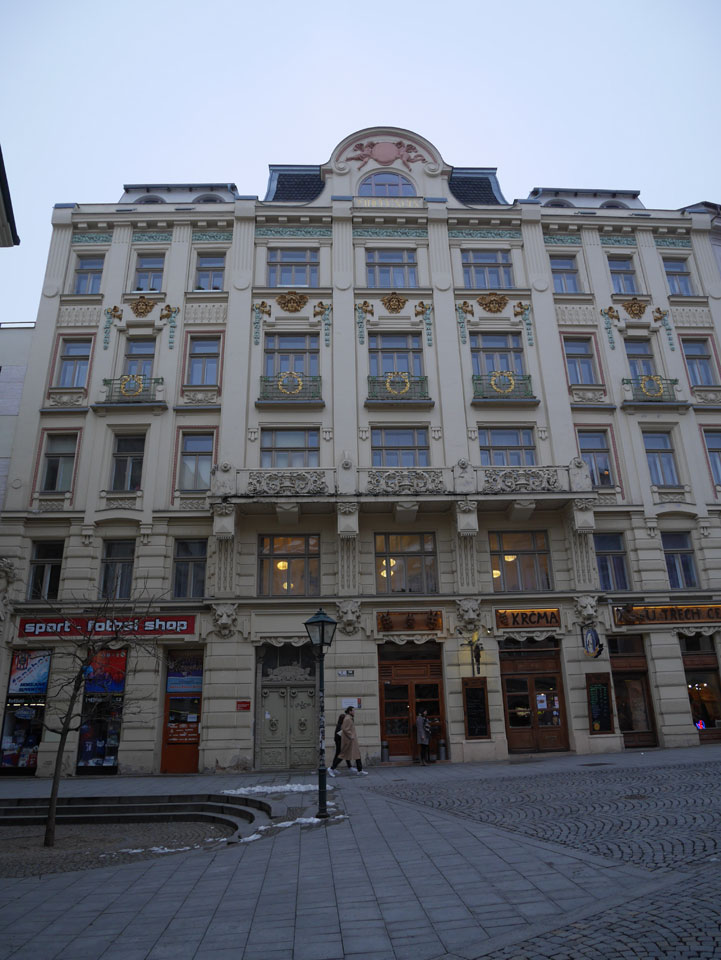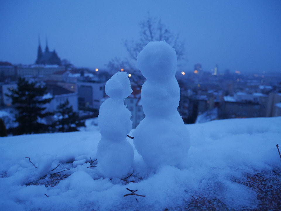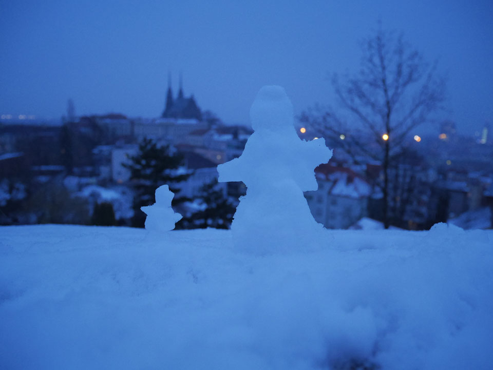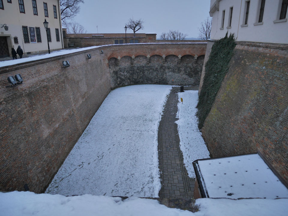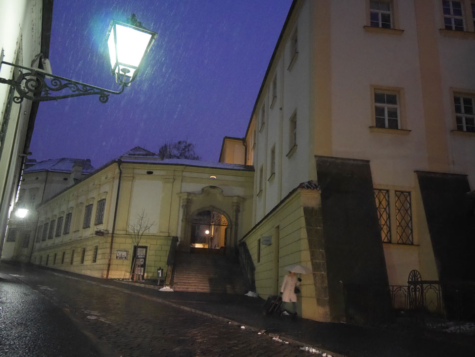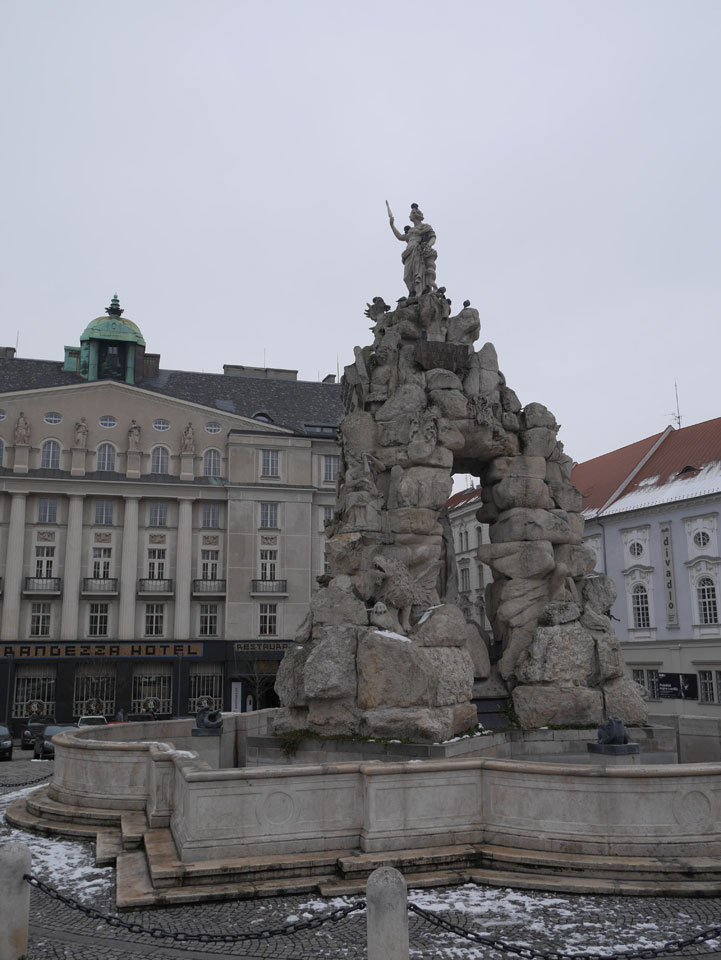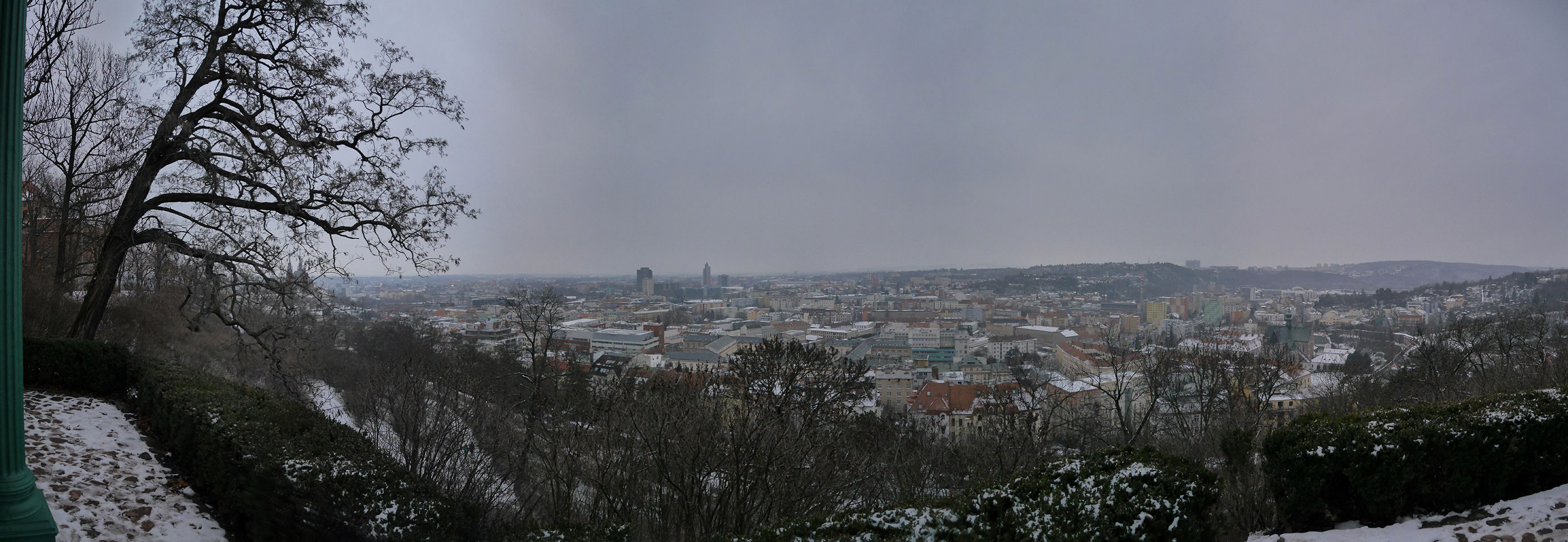 Winterwetter und leere Straßen. Ein paar Touristen wurden durch Brno geführt, ansonsten verbrachten die meisten Leute ihre Zeit besser im Warmen.