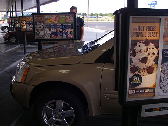 In Junction lieferte die Dairy Queen was zu Essen. Frühstückszeit war wieder mal vorbei. Den Banana Split schaffte ich nicht mehr. Wir fuhren auf der I-10 weiter nach Westen. El Paso liegt rund 350 Meilen weiter.