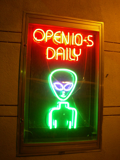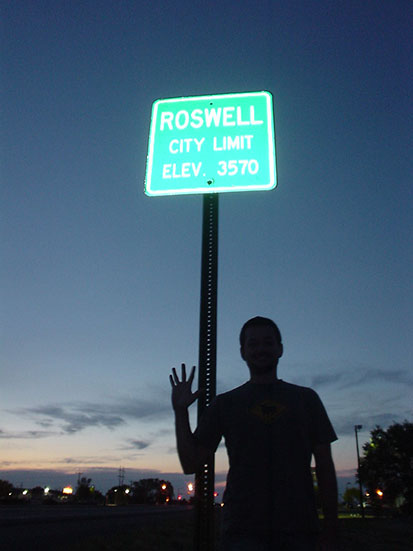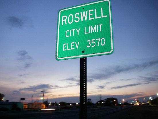 Vorbei an den typisch texanischen Öl oder Wasserpumpen fuhren wir weiter Richtung Roswell. Eine Radiowerbung für ein UFO Musikfest beruhigte, dass wir richtig waren. Am Ortseingangsschild ein paar Bilder. Cool. In der Innenstadt war vieles auf die Aliens gestylt. Die Straßenlaternen hatten Alien-Augen, der McDonalds schaute aus, wie ein UFO.