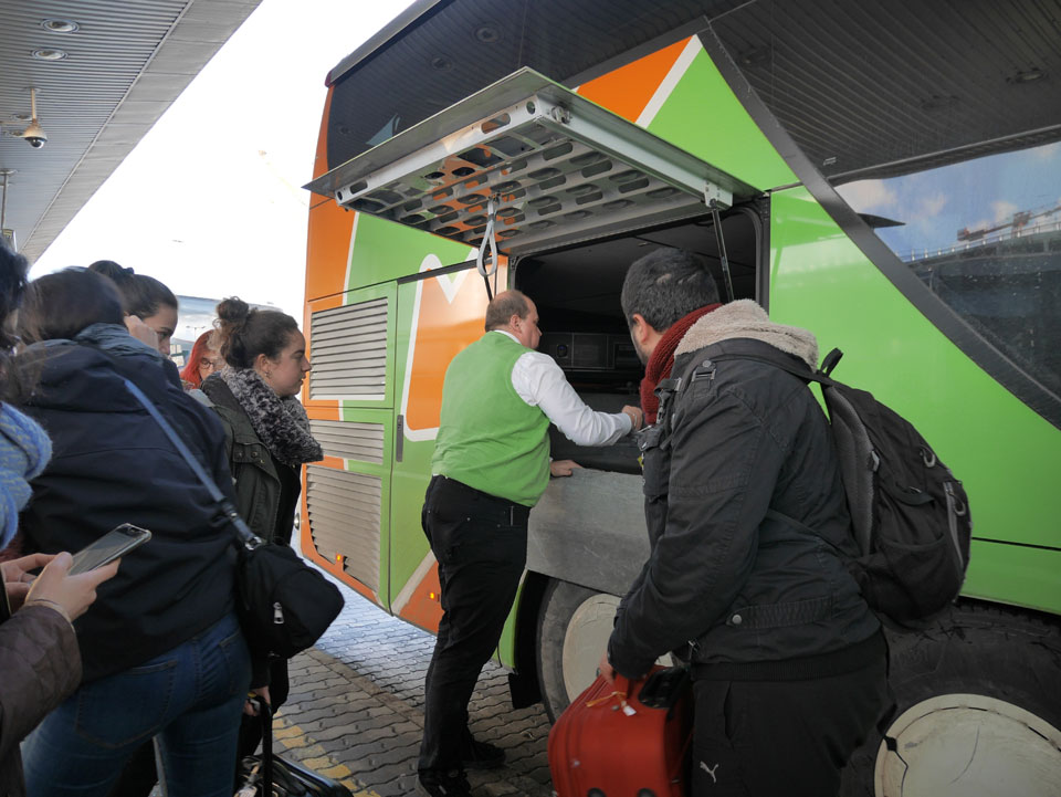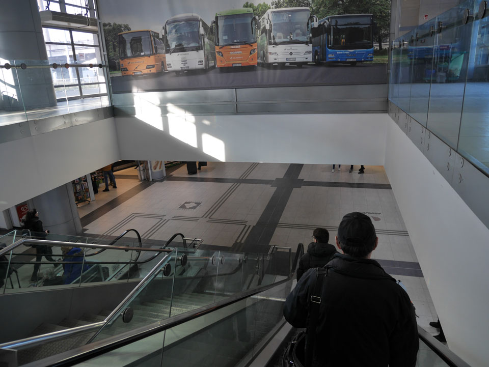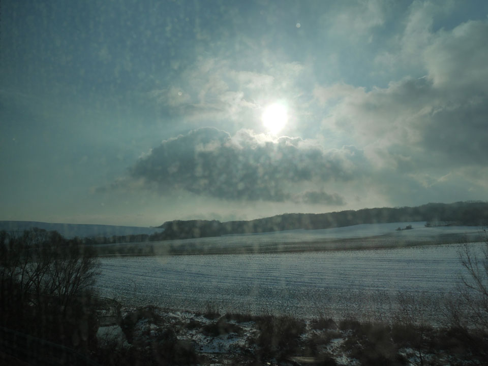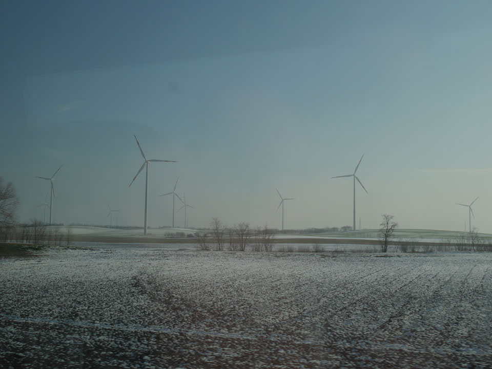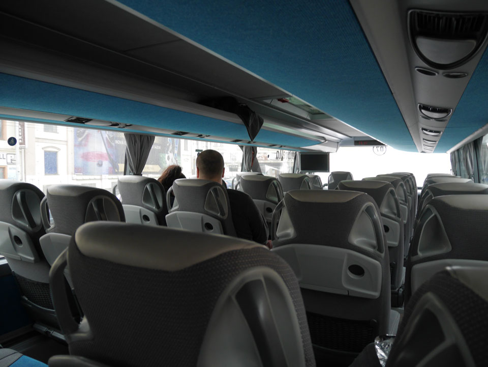 Recht wenige Leute im Bus, was angesichts der günstigen Bahnpreise auch nicht verwundert. Ich nickte ein paar Mal weg, hatte ja in der Nacht nur um die 4h Schlaf abbekommen. Die Landschaft war langweilig – Felder über Felder.