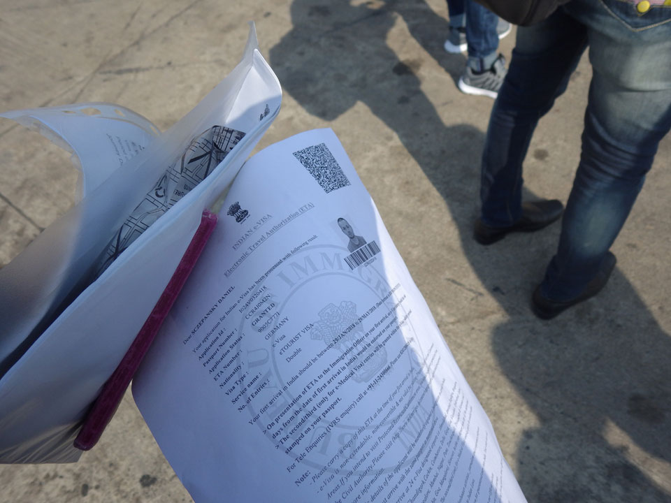 In Kochi wartete gleich an der Gangway ein Mitarbeiter von Spicejet mit meinem Visums- Ausdruck. Den Service fand ich super. Somit klappt der die Einreise reibungslos. Von beiden Händen wurden alle Fingerabdrücke genommen. Das System schien etwas wackelig, man musste das Scanner-Glas und seine Finger mit einem Lappen abwischen. Photos gab’s auch. Ich fragte vorsichtshalber noch einmal nach, ob die zweifache Einreise wirklich möglich sein – ja. Na mal sehen.