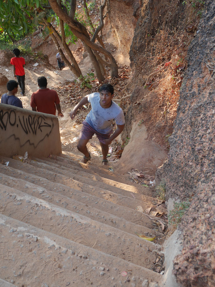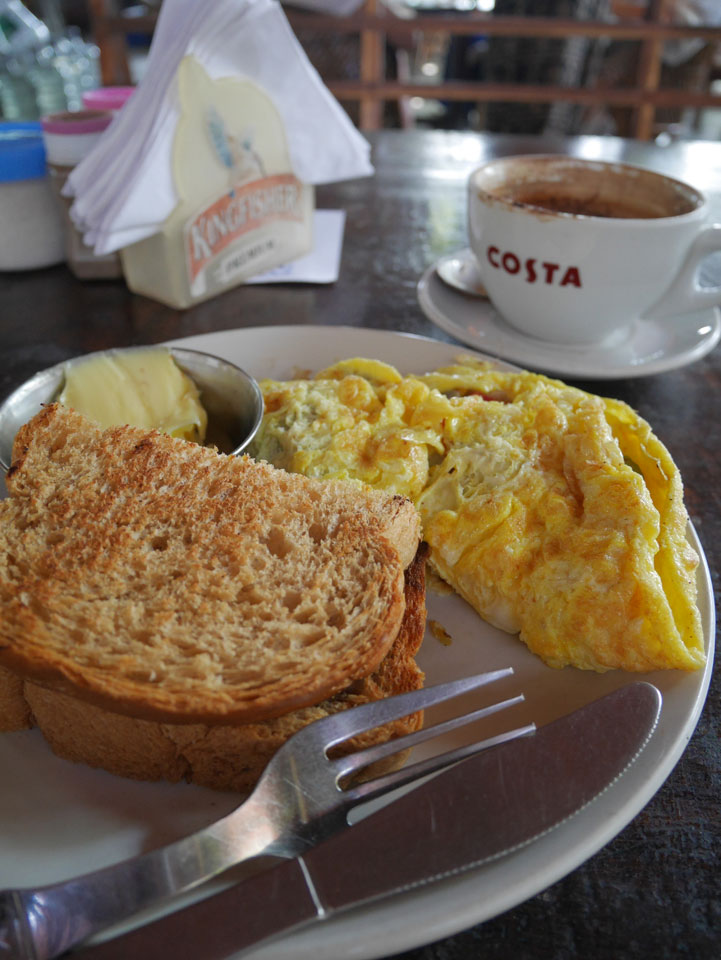 Dann ging ich in’s Coffee Temple zum Frühstücken so spät, hatte mein Portemonnaie vergessen aber mein Hotel liegt ja gleich um die Ecke. Voller Laden und überforderte Bedienung. So bestellte ich einen Cappuccino und dann noch das Masala Omelette. Gleich beim ersten Schluck Cappuccino hatte ich was im Mund. Sah aus wie Haare, war aber einfach eine große rote Ameise. Na sowas. Heute aber recht ausgeschlafen machte das wenig. Das Omelette war OK.