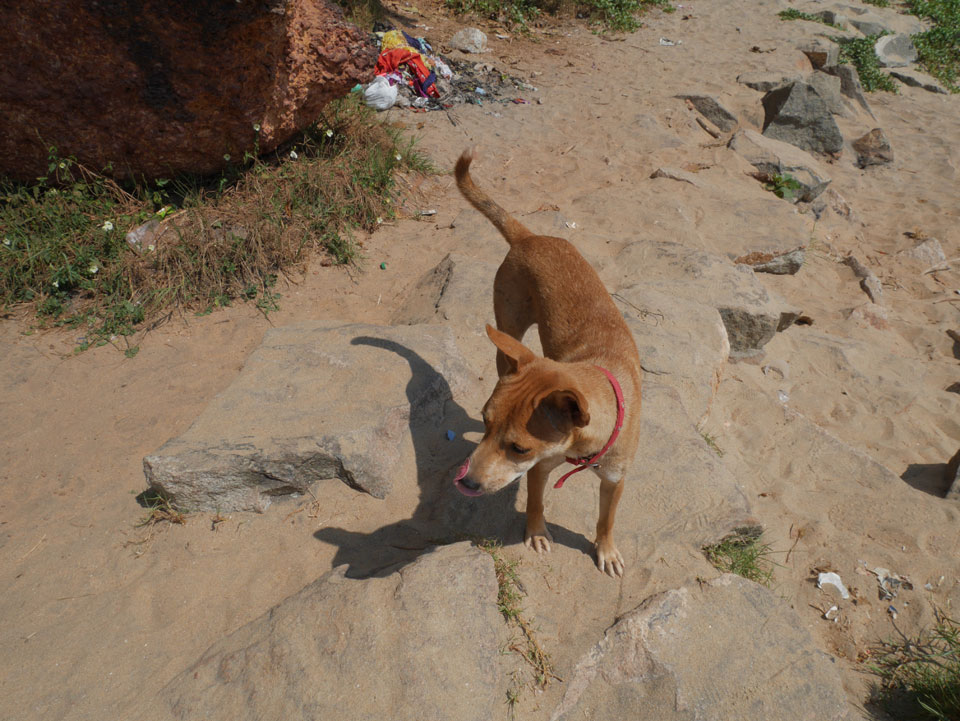 Am Strand unter der Klippe war wenig los. Es ist tagsüber einfach zu heiß. Ich ging somit wieder zurück auf’s Zimmer, chillte ein wenig, mit dem Hund vor der Tür. Erst nach 17:00 wieder los an den Strand.