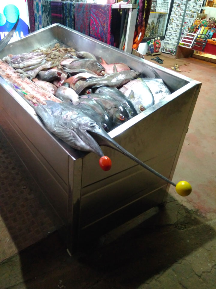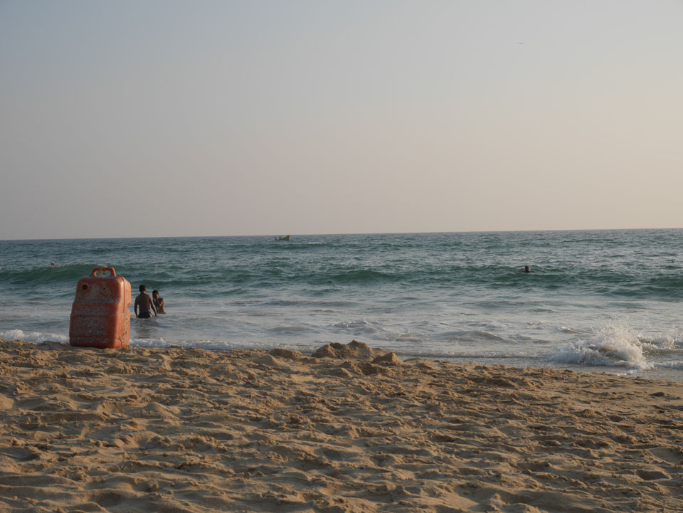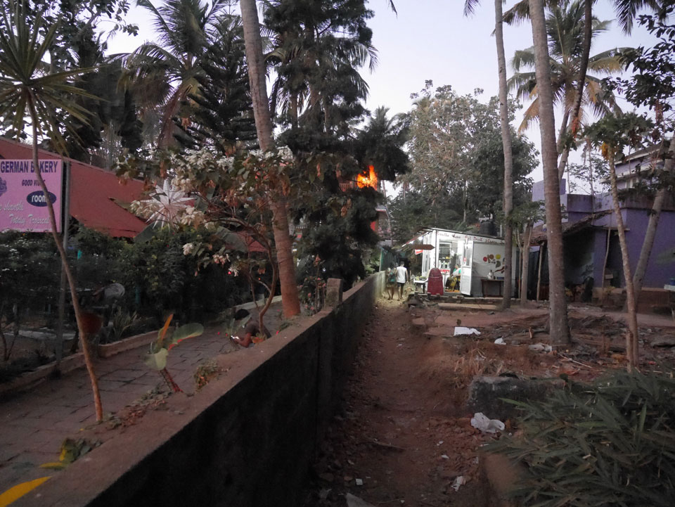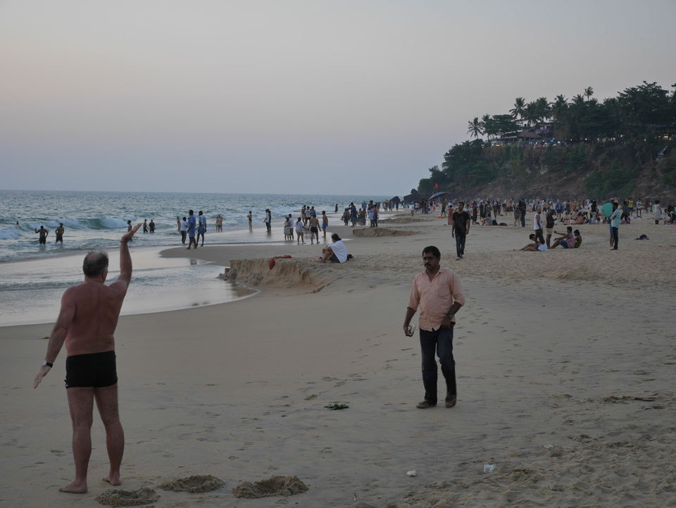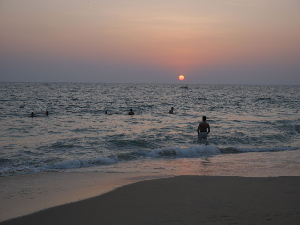 Ein motorisierter Fallschirm flog herum, sicher nett in der Höhe. Nach Sonennuntergang wurden alle aus dem Wasser gepfiffen und ich ging auch wieder auf’s Zimmer. Mehr Internet, was am besten über meinen Handy-AP läuft. Nach 22:00 dann Abendessen. Ich wartete vielleicht ’ne halbe Stunde auf das Paneer Tikka Masala. Das war dann aber gut. Drei Inder rockten zur Musik ab. Wenig los, selbst am Samstag, denn schon kurz nach 23:00 machten die Läden dicht, bis Mitternacht muss alles geschlossen sein.