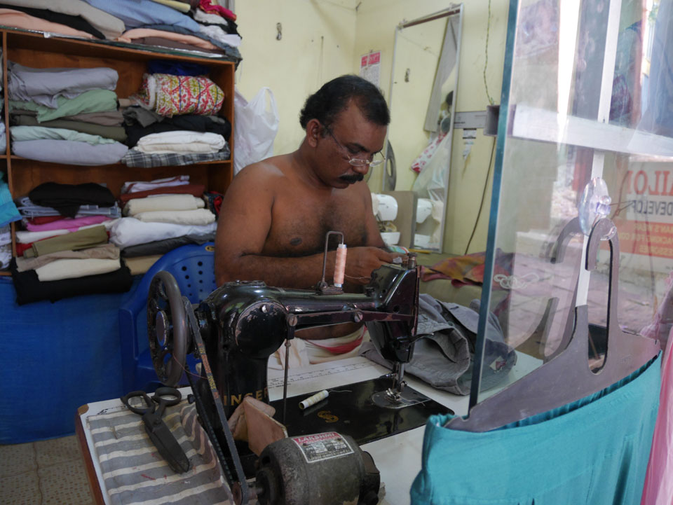 Auf dem Weg brachte ich eine Hose auf Vordermann. Der Knopf wurde neu angenäht – 40 Tip, obwohl der Schneider kein Geld haben wollte.