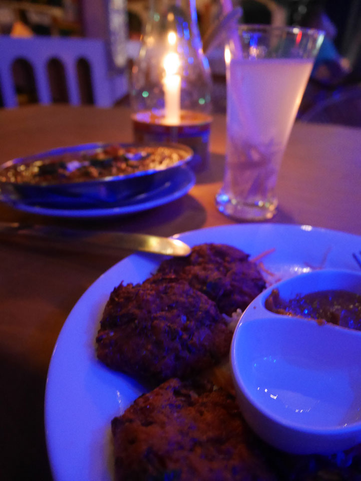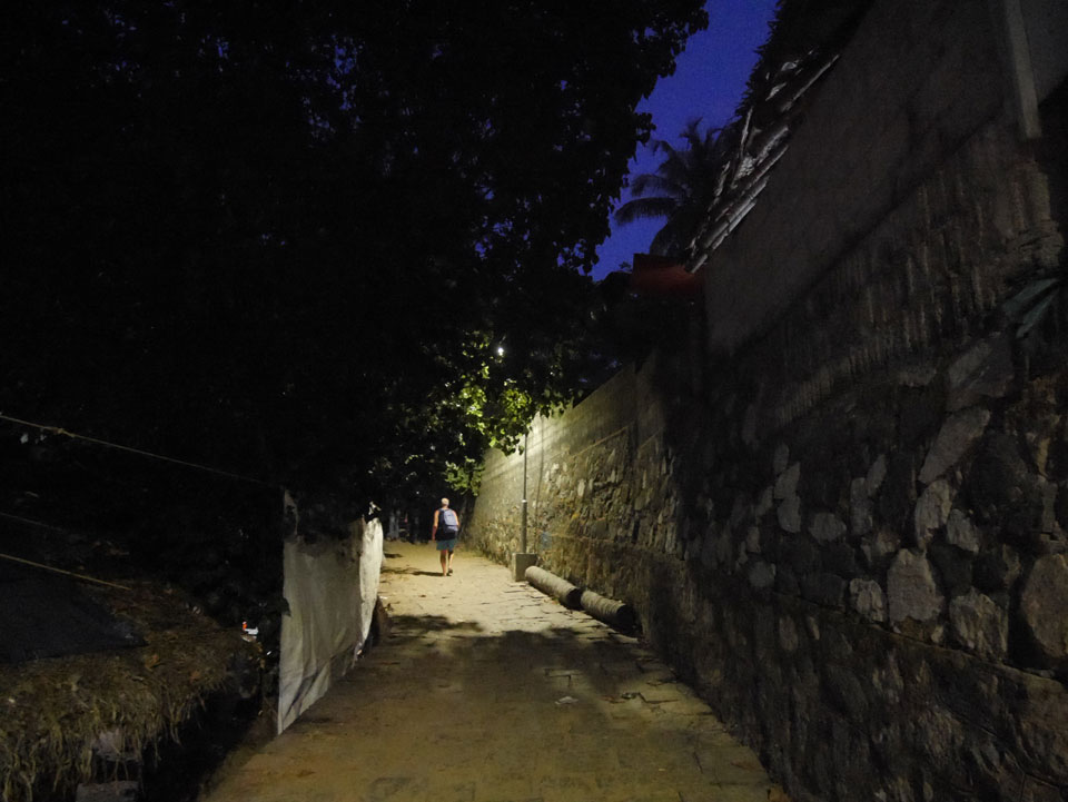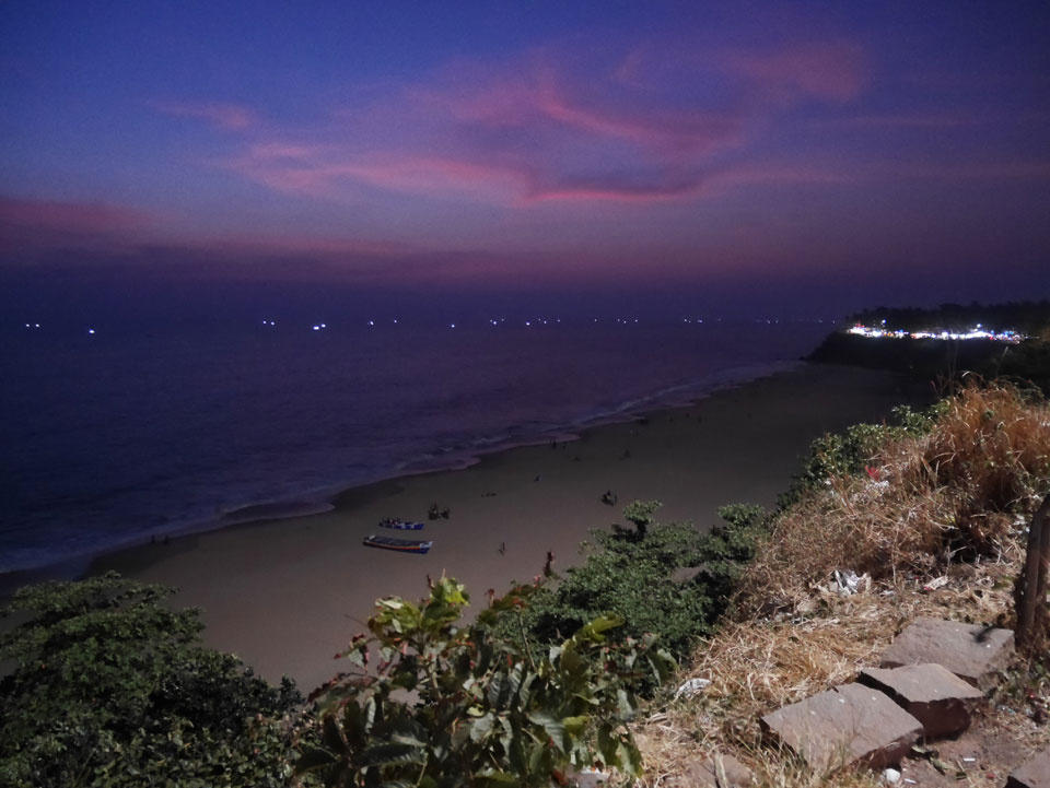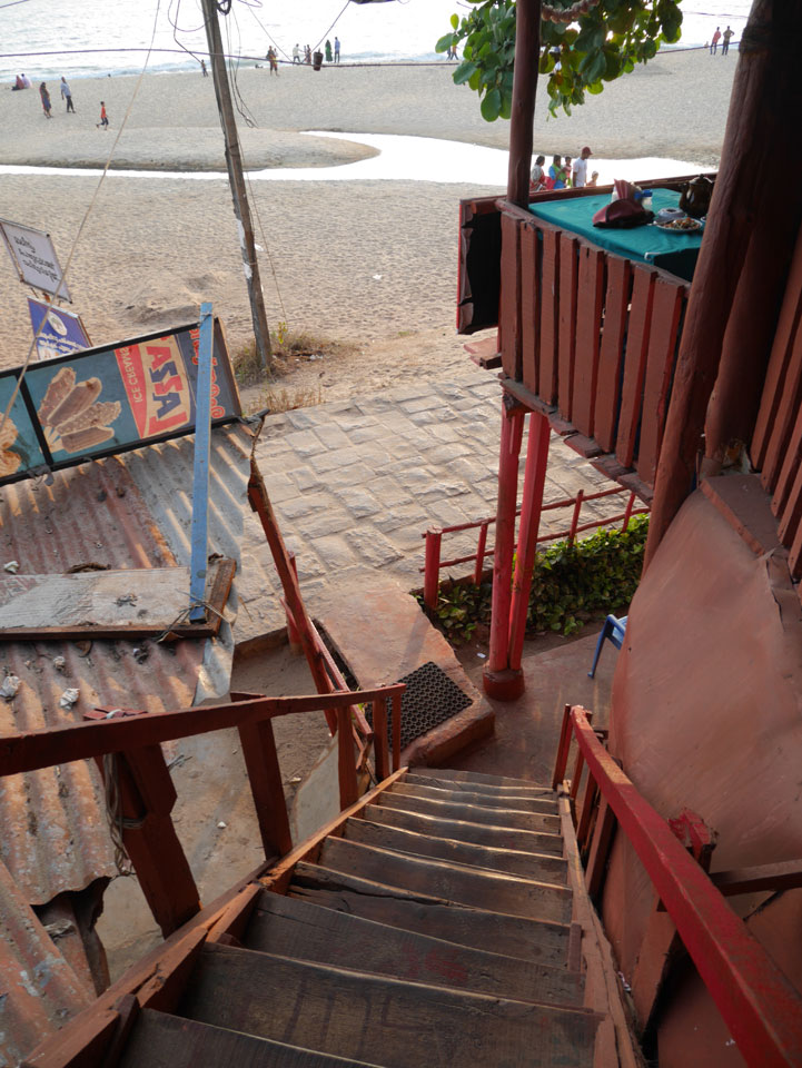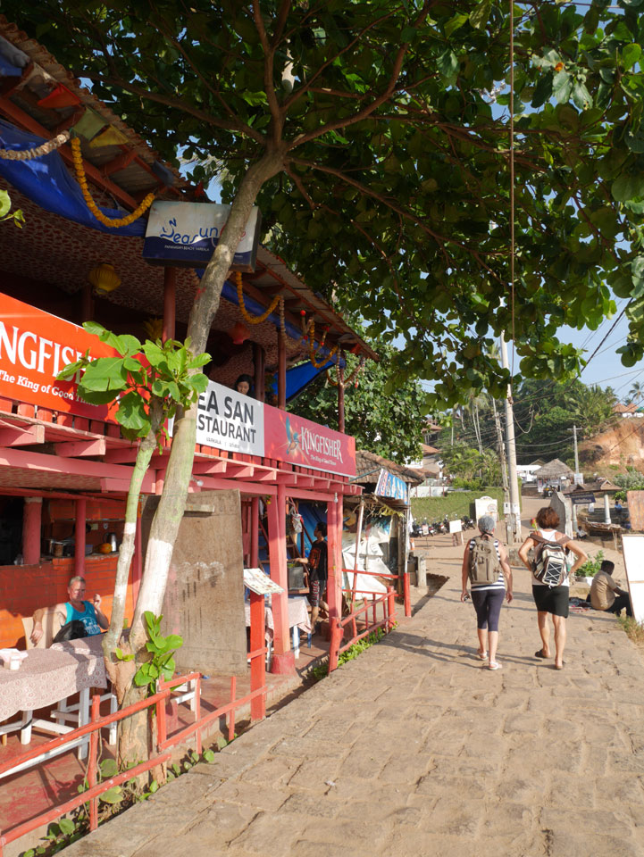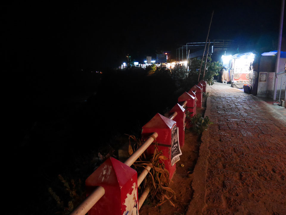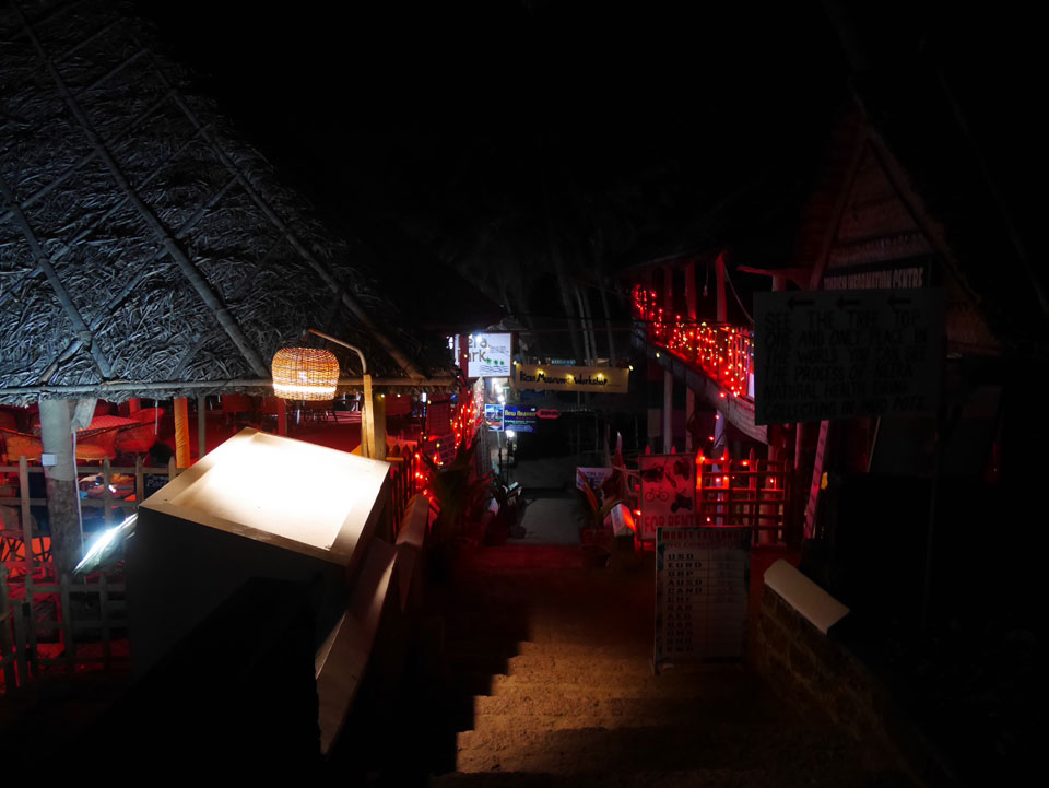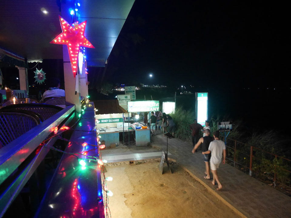 Die meisten Restaurants und Gästehäuser Sind auf der Klippe. Bisher war ich nicht soweit auf der Klippe spaziert. Im „Sun Rise“ Restaurant hatte ich ein großes Abendessen (340 + 60 Tip). Danach spazierte ich weiter hinter und Ich war überrascht wie lang sich die ganze Sache zog. So viele tibetanische Restaurants und Geschäfte. Es hörte gar nicht auf. An der Black Beach ging’s langsam wieder bergab und ich hatte genug, musste er wieder den ganzen Weg zurück.