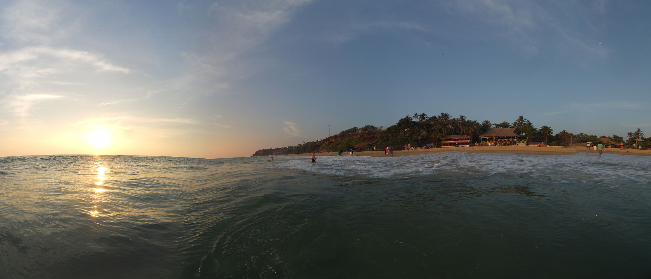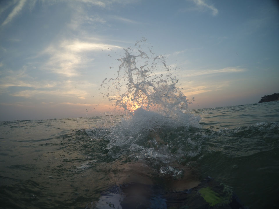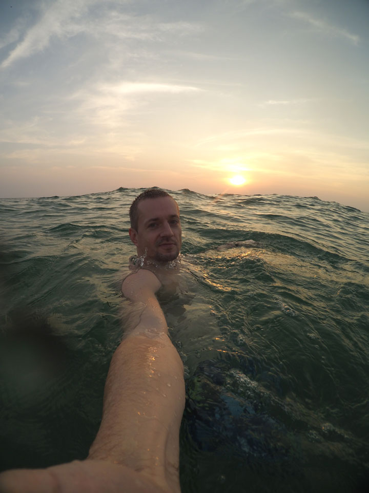 Montags war der Strand fast leer. Ganz anders als noch gestern zum Sonntag. Es hat eben nicht jeder Urlaub. Ich setzte mich auf ’ne Cola in ein Restaurant und ging danach wieder Baden. Heute mit der Yi auch mal Photos im Wasser. Die Wellen waren mickrig, Photos wurden trotzdem ein paar. Am meisten genoss ich aber das perfekte Wasser. So schön warm und scheinbar auch recht sauber.