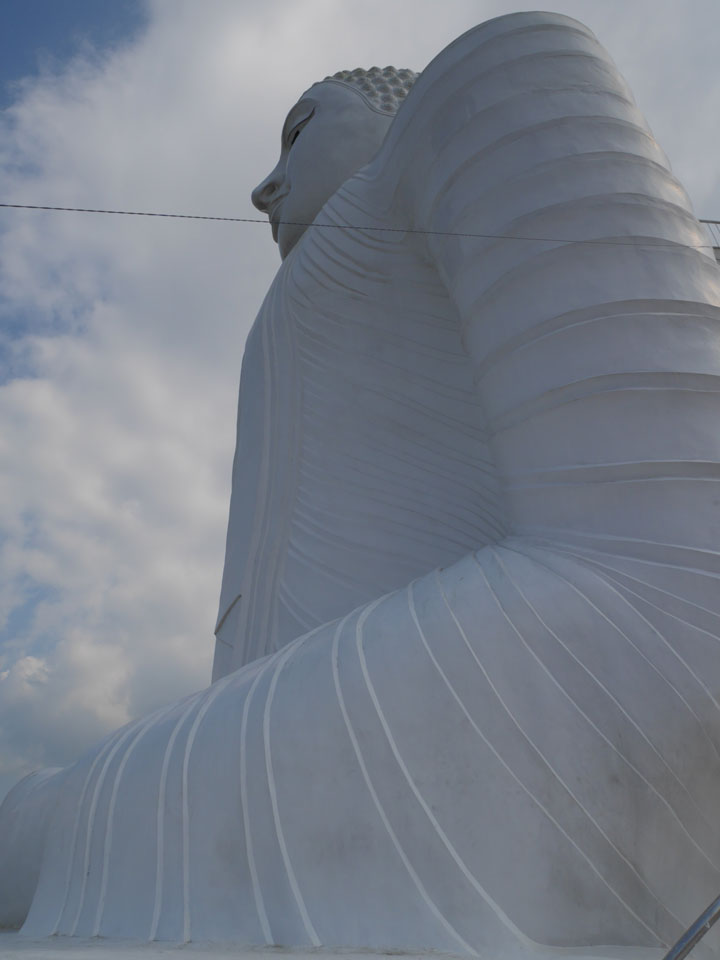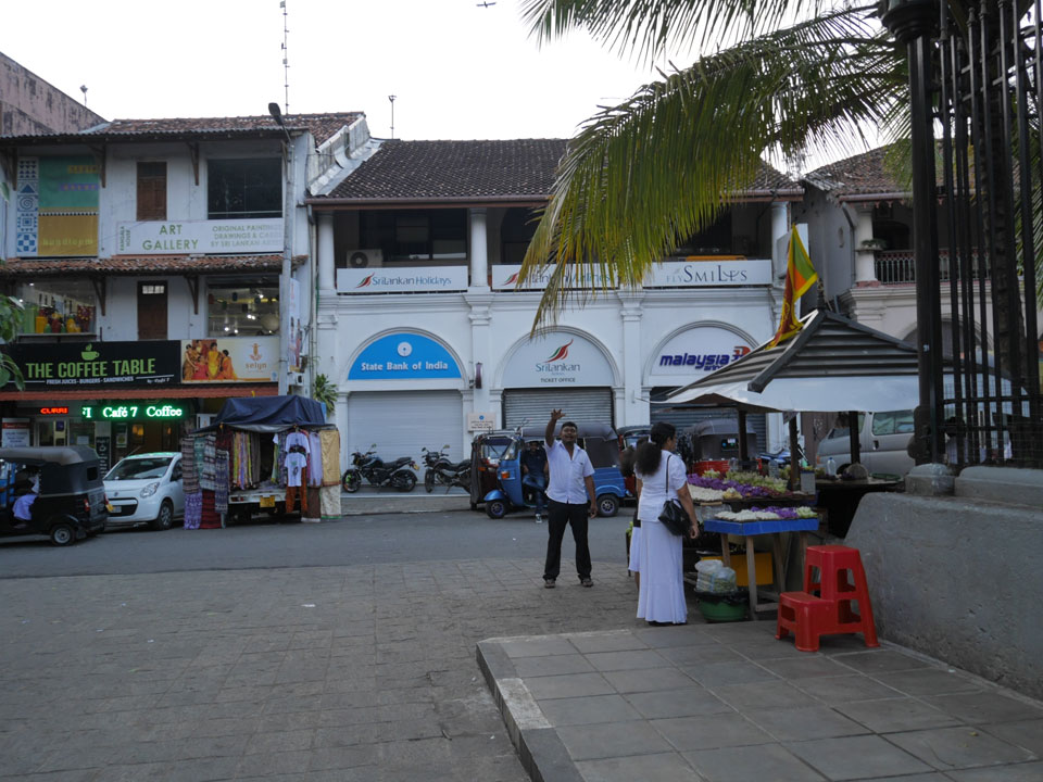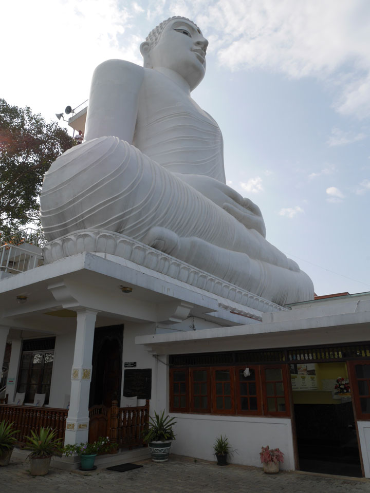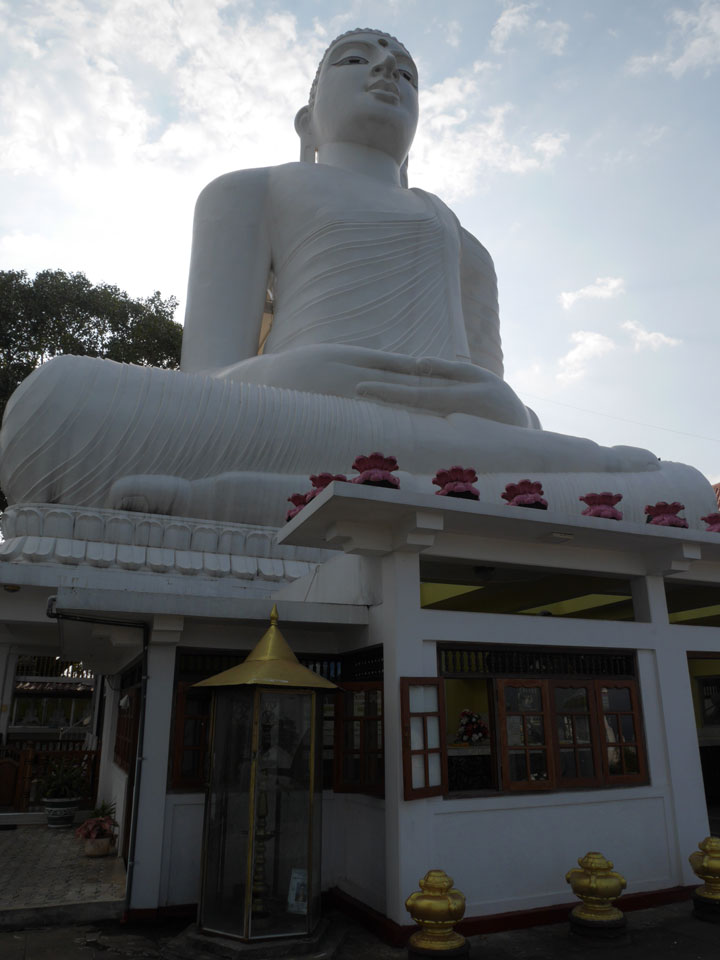 Frühstück im Café Walk, Geschäfte und nichts kaufen, Bahiravokanda Vihara Buddha Statue auf’m Hügel. Keine Tempel wegen Kleidung. EInkauf und KFC und in der Dunkelheit um den See zurück, was eine dumme Idee war