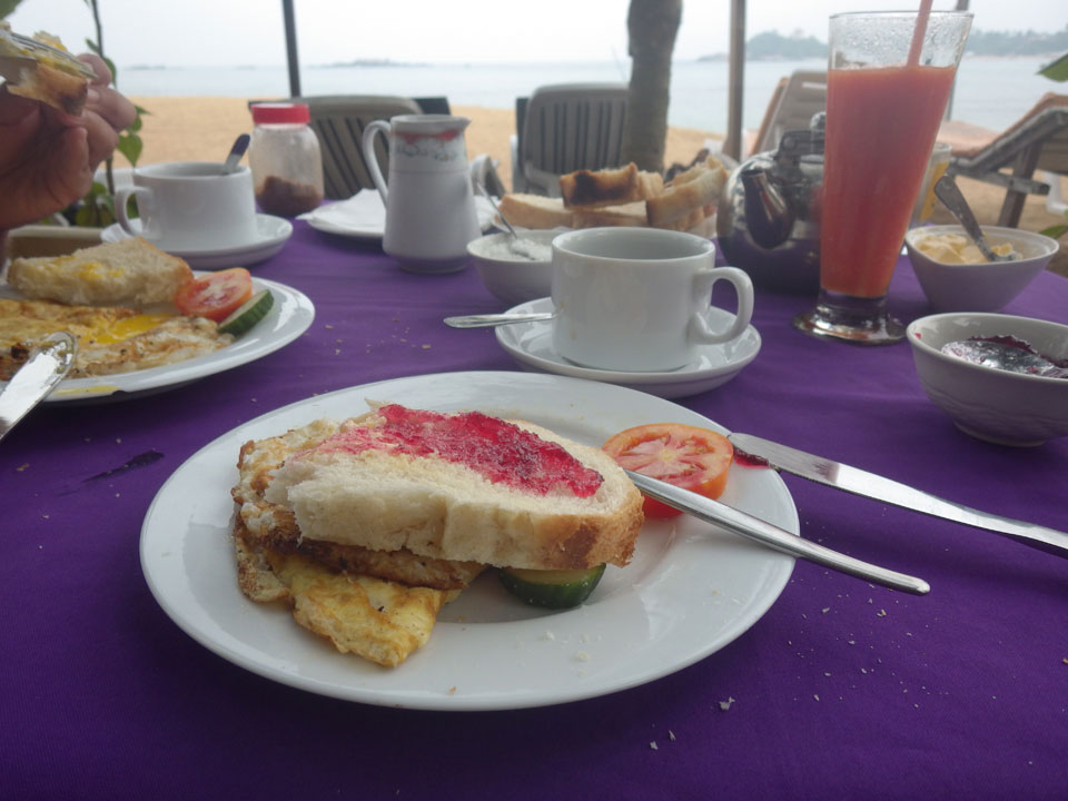 Der letzte Tag in Sri Lanka war riskant, weil wir von Galle zum Flughafen bei Colombo wollten, dann ein Taxi zur Station in Yelahanka nehmen wollten für den Zug nach Hospete / Hampi. Es mussten alle Verbindungen klappen. Erst mal kamen wir spät aus dem Hotel.