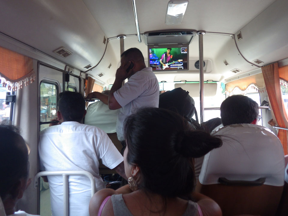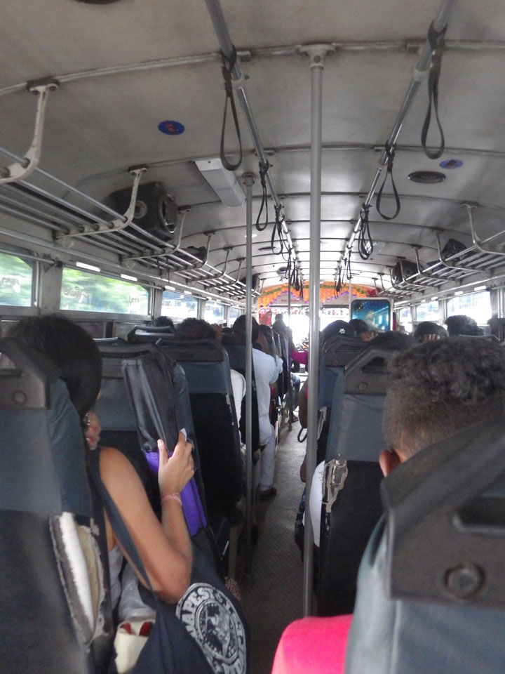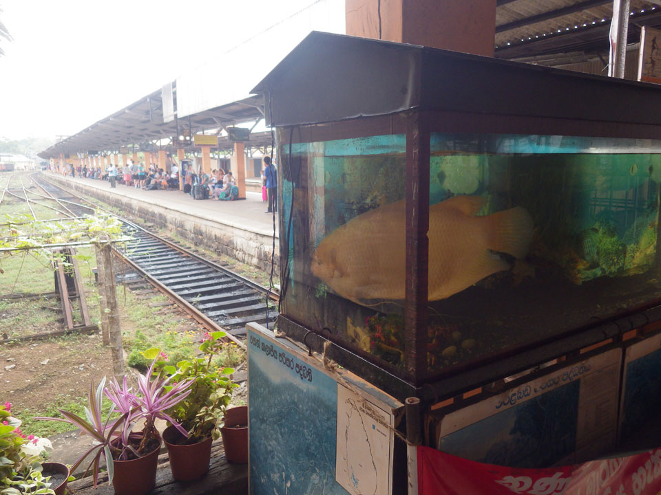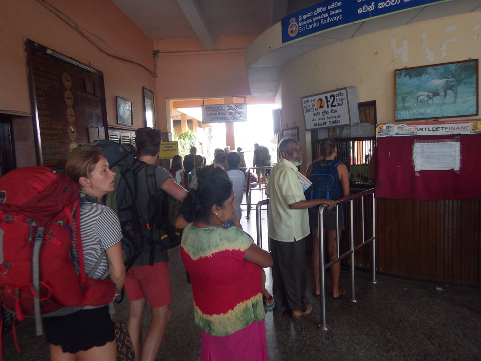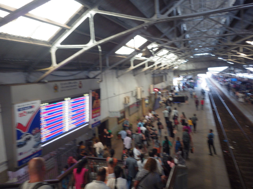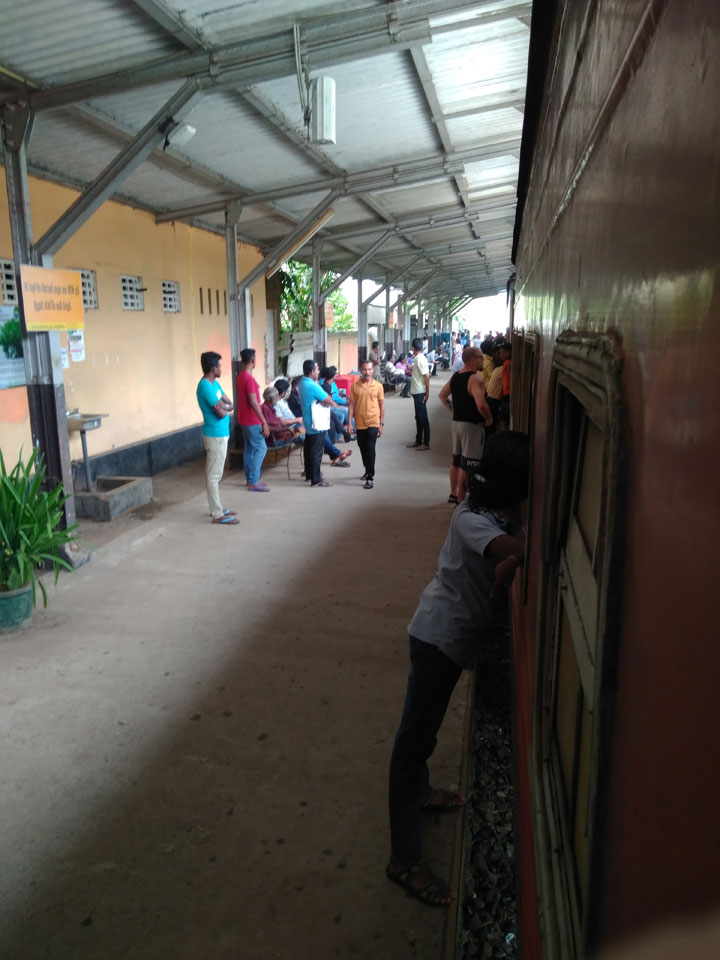 Das Frühstück war wieder OK. Gegen 10:00 erst waren wir draußen, erwischten einen Bus zum Bahnhof. Tickets 3. Klasse (2 x 100) und dann warten. Der Zug kam schon mit etwas Verspätung und danach nicht so richtig aus dem Knick. Bei Ambalangoda kam eine Durchsage und wir warteten. Einige Touristen wurden nach einer halben Stunde ungeduldig, hatten wohl auch Flüge und legten los. Man könnte auch mit dem Bus fahren. Ich bekam nun langsam auch Stress, denn obwohl der Flug erst 18:40 starten sollte, brauchten wir mind. 2h noch nach Colombo und bis zu 1½ h zum Flughafen. Ein junger Deutscher sagte, dass der Triebwagen kaputt sei und man auf den Ersatz wartet. Noch eine halbe Stunde solle es dauert. Es dauerte und dauerte und ich dachte schon, hätte ich nur den Bus genommen doch dann endlich wurde die Bahn abgeschoben und es dauerte nicht lange, bis der neue Triebwagen loslegte.