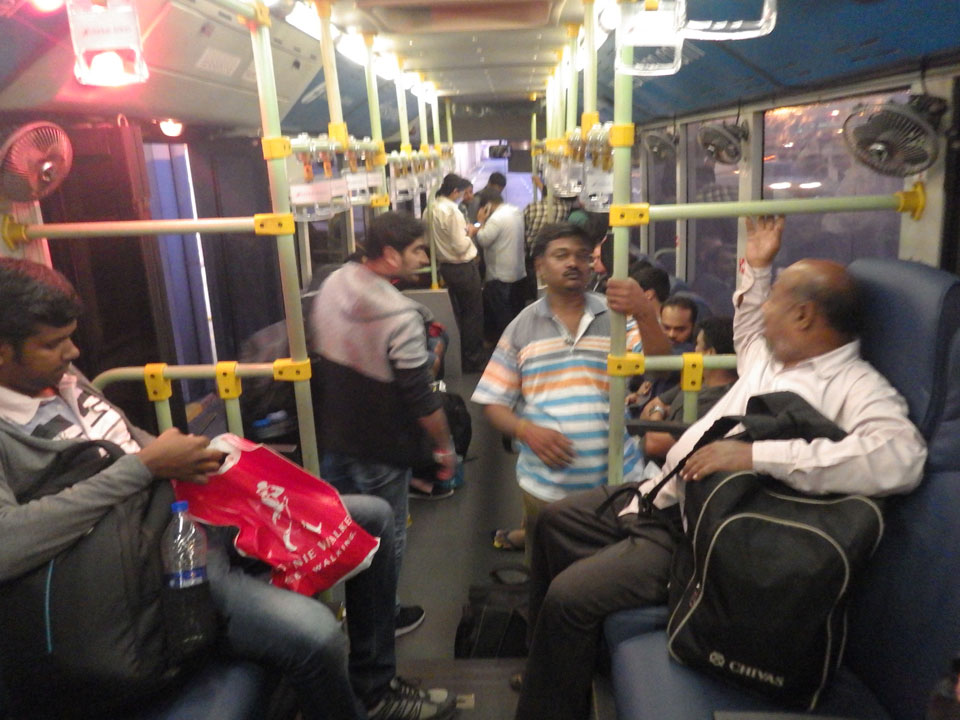 In Bangalore dann ca. 2h Zeit bis zur Abfahrt und etwas spät dran bei dem Immigration. Die ganzen Grenzer machten einfach Schluss und niemand saß mehr zum Abstempeln bereit. Man hätte da einfach durchlaufen können. Das hätte am Ende nur ein Problem mit der Ausreise gegeben. Der erste Beamte der neuen Schicht schließlich fragte mich alles aus. Die Einreise nach Indien ist immer ein Akt Ein kleiner Snack war drin, dann der UBER zu Yelahanka Junction mit ca. 20′ Fahrt. Das war nur eine Straßenkreuzung. Ich hatte schon 100 INR Tip draußen, weil die Uber Fahrer arm dran sind. Der Bahnhof war noch viel weiter weg – gut, dass wir da nicht auf den Rat des Fahrers zum Laufen gehört hatten. Mit dem schweren Gepäck war das Herumwuchten des Koffers auch für mich nochmal 50 INR wert.