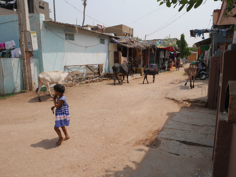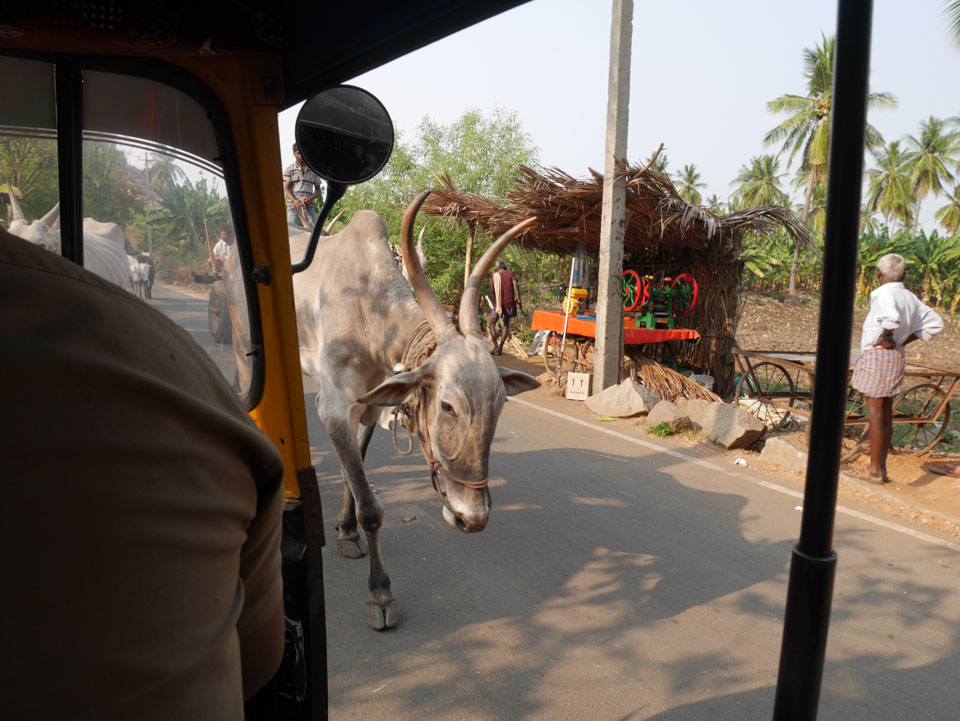 An den Elefanten-Ställen waren die Touristentickets fällig – 500 INR pro Nase. Die Leute da machten gerade Mittagspause. Ich wollte die Tickets kaufen aber es gab irgendein Problem. Sie hatten keine Tickets aber ohne durfte man nicht rein. Bei gerade mal einer Handvoll Touristen wartete ich ein paar Minuten aber es regte sich nichts. Man wollte das Geld nehmen und uns später das Ticket geben. Klar, doch ich hatte meine Zweifel. Ich ging zum Büro ca. 100m weiter. Da saßen auch Inder herum. Man war nur das Office, hatte keine Tickets aber wasauchimmer. Ein mir komplett unsympatischer junger Inder grinste, dass sie eben das Office seien und konnte aber auch nicht erklären, was man nun machen solle. Nach Hause gehen? Ich wurde wütend, denn was ist das denn für ein Mist, wenn man Touristengelder haben will aber nicht mal Papiertickets bereit hält? Kann auch an einem Stromausfall liegen aber da muss es doch auch einen Backup Plan geben? Nicht so hier, anscheinend. Es kam ein Motorrad mit ‘nem offiziellen Typen, der uns das Geld abnahm und dann wirklich das Ticket bringen sollte. Na gut, die ganze Geschichte dauerte eine halbe Stunde, ich ließ ein Photo machen und wir schauten uns als fast einzige Touristen die Sache an. Langsam reagierte ich mich ab.