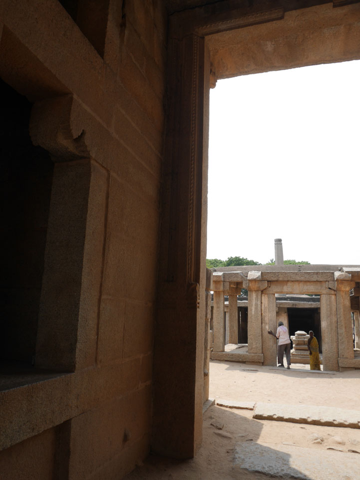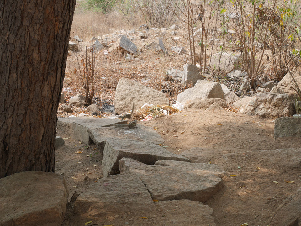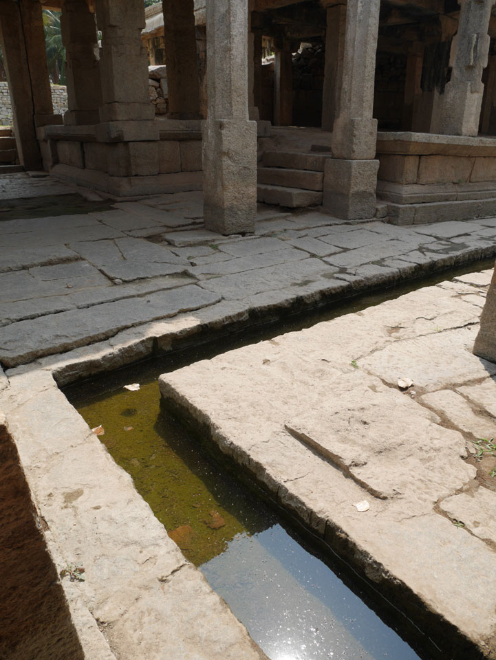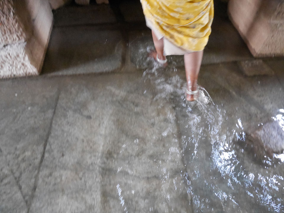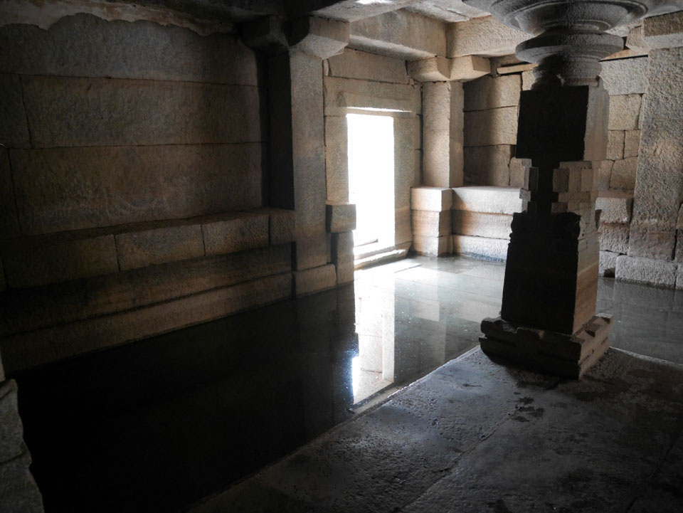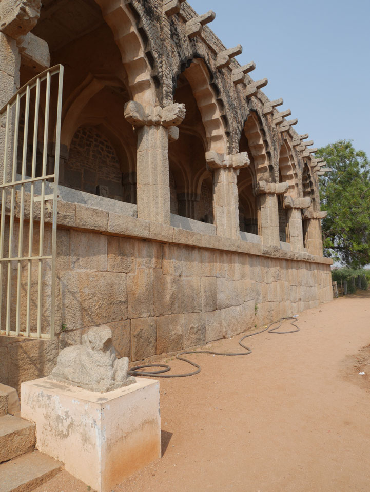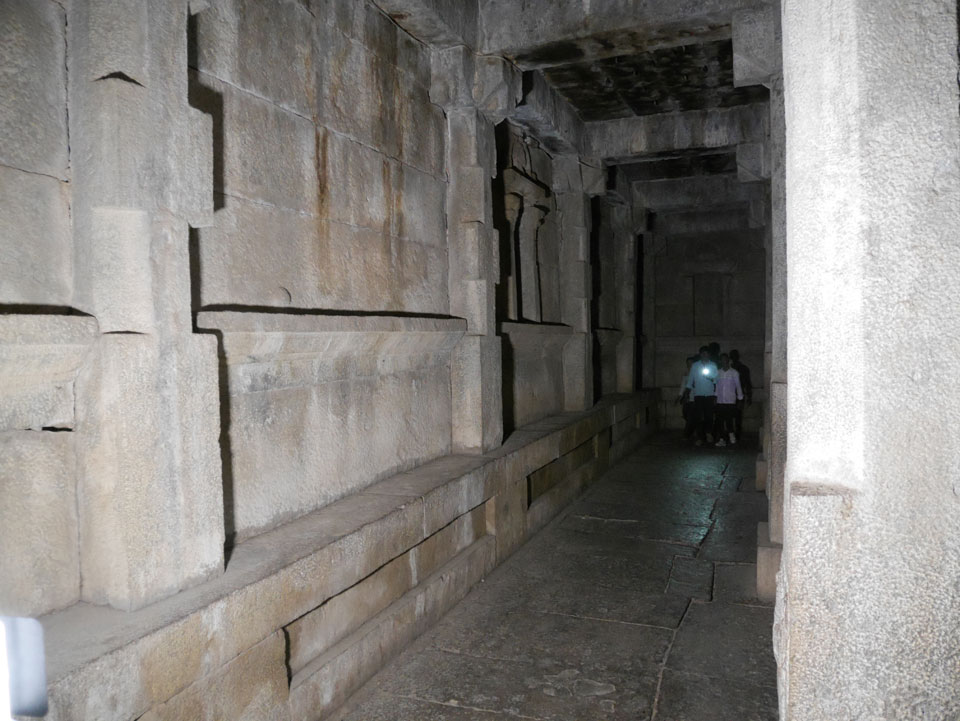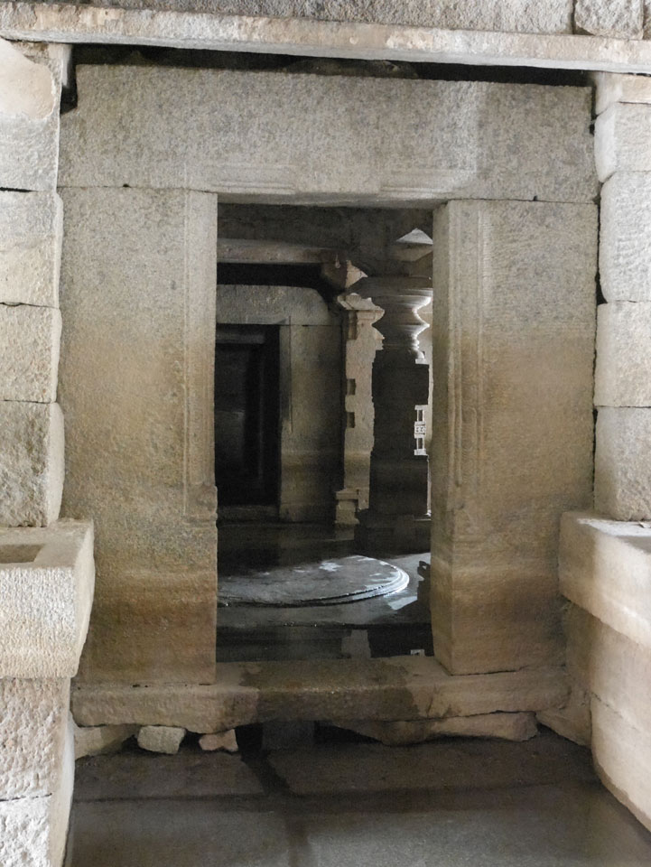 Ich sagte nur 600 zu + 100 Trinkgeld, wenn alles gut ist. Damit war der Fahrer zufrieden und wir fuhren los. Gleich am Ortsausgang Hampis war schon der erste Tempel, den ich nicht kannte. Gleich weiter ging’s zu einem mit Wasser zur Kühlung der Räume. Eine alte Frau führte durch und zeigte auf Fledermäuse an der Decke. Die 20 INR Trinkgeld waren OK für die Hobby-Führung in paar Minuten.