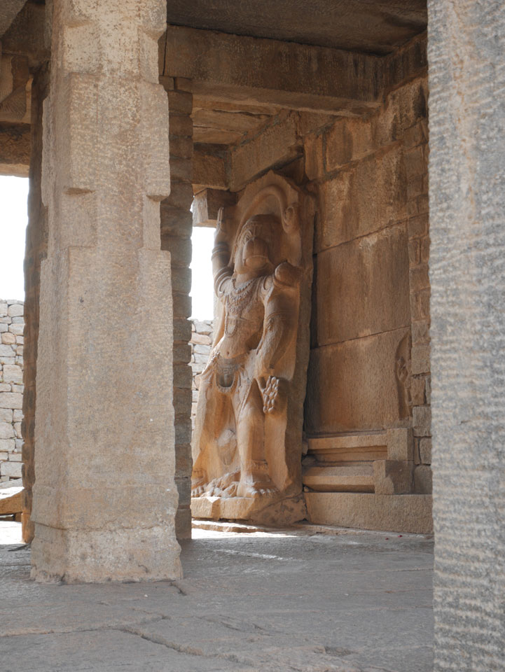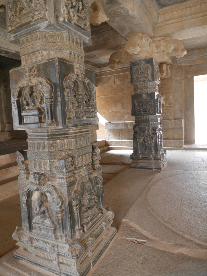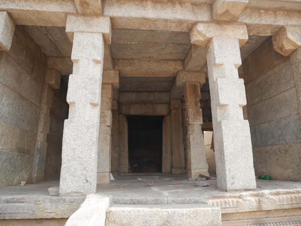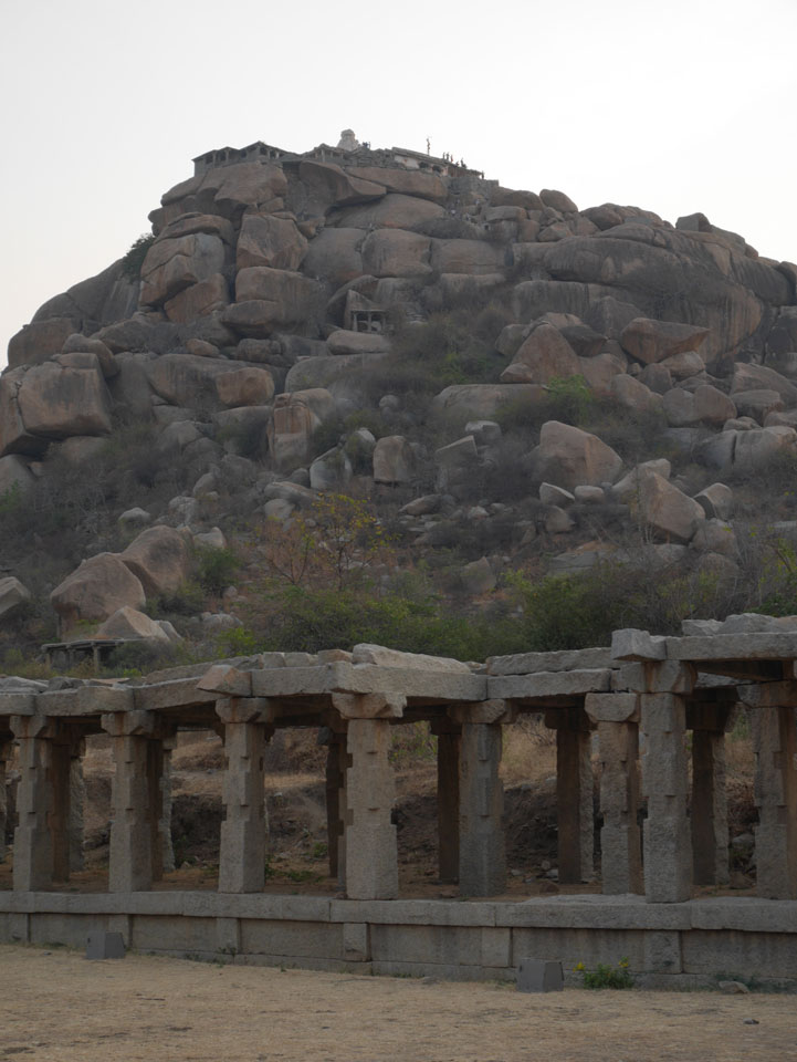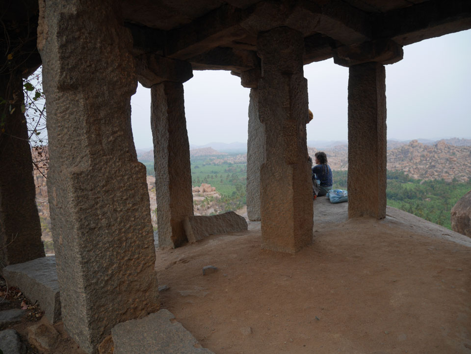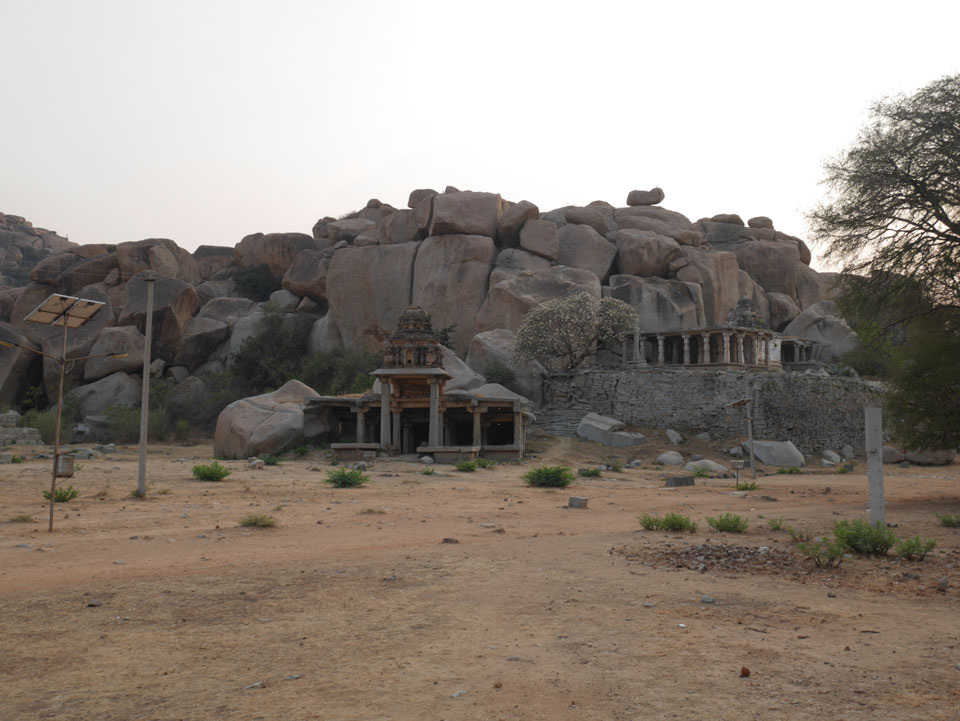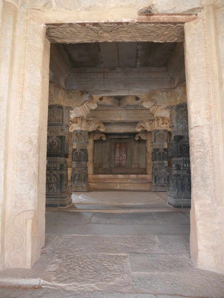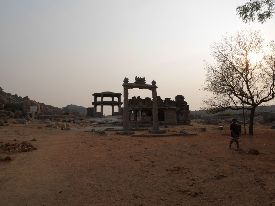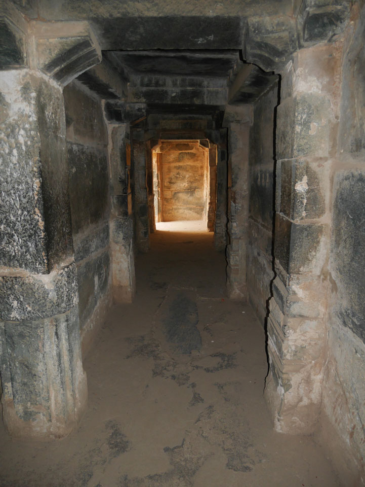 Ich sagte nur 600 zu + 100 Trinkgeld, wenn alles gut ist. Damit war der Fahrer zufrieden und wir fuhren los. Gleich am Ortsausgang Hampis war schon der erste Tempel, den ich nicht kannte. Gleich weiter ging’s zu einem mit Wasser zur Kühlung der Räume. Eine alte Frau führte durch und zeigte auf Fledermäuse an der Decke. Die 20 INR Trinkgeld waren OK für die Hobby-Führung in paar Minuten.