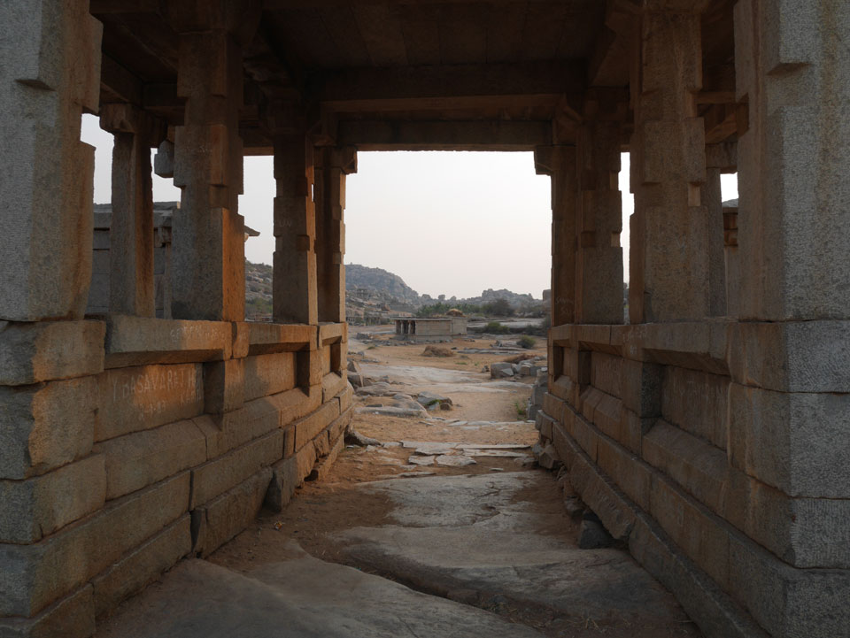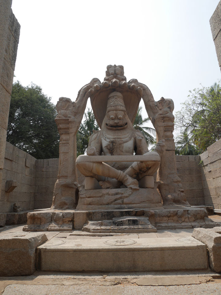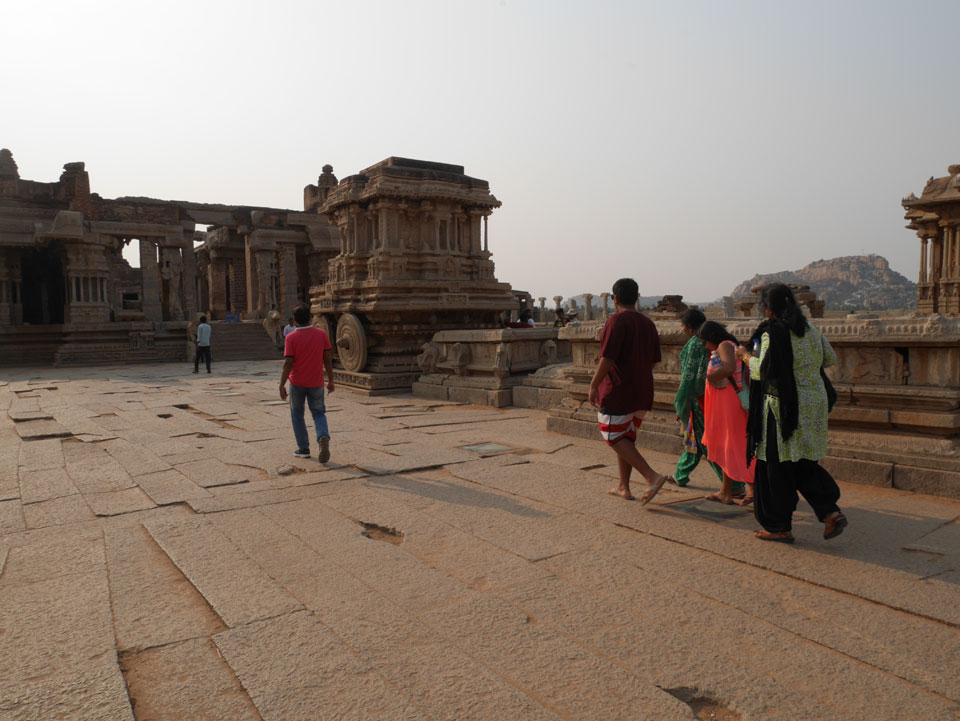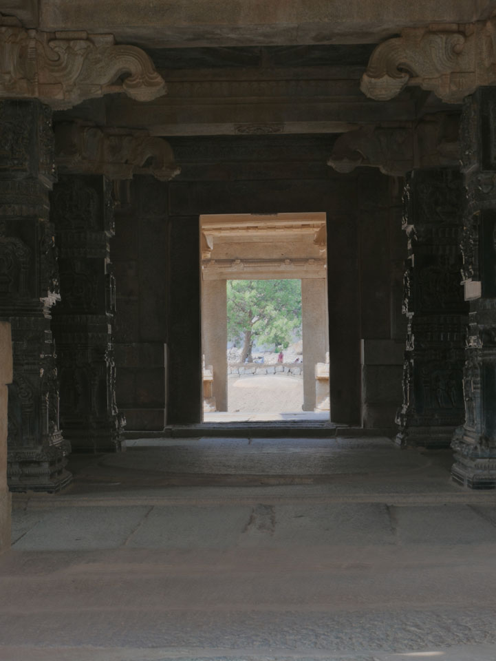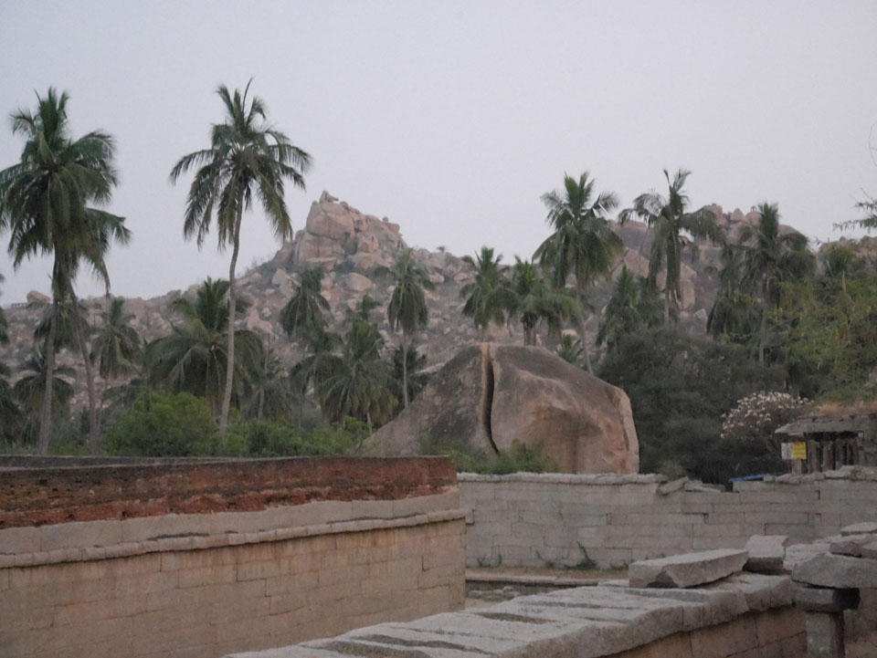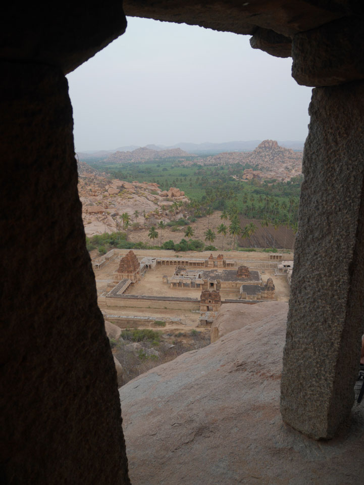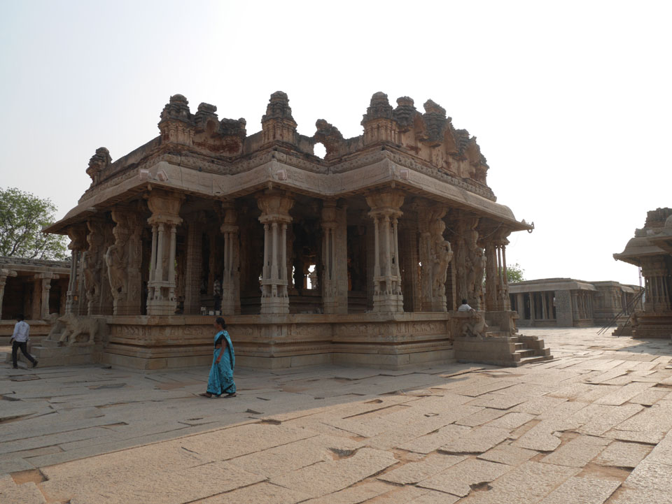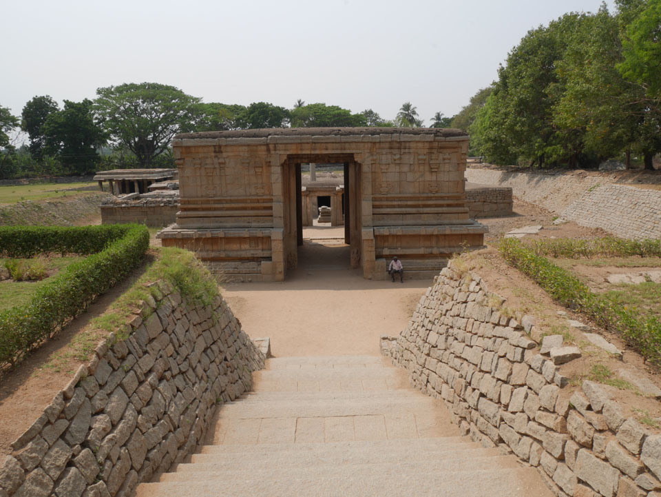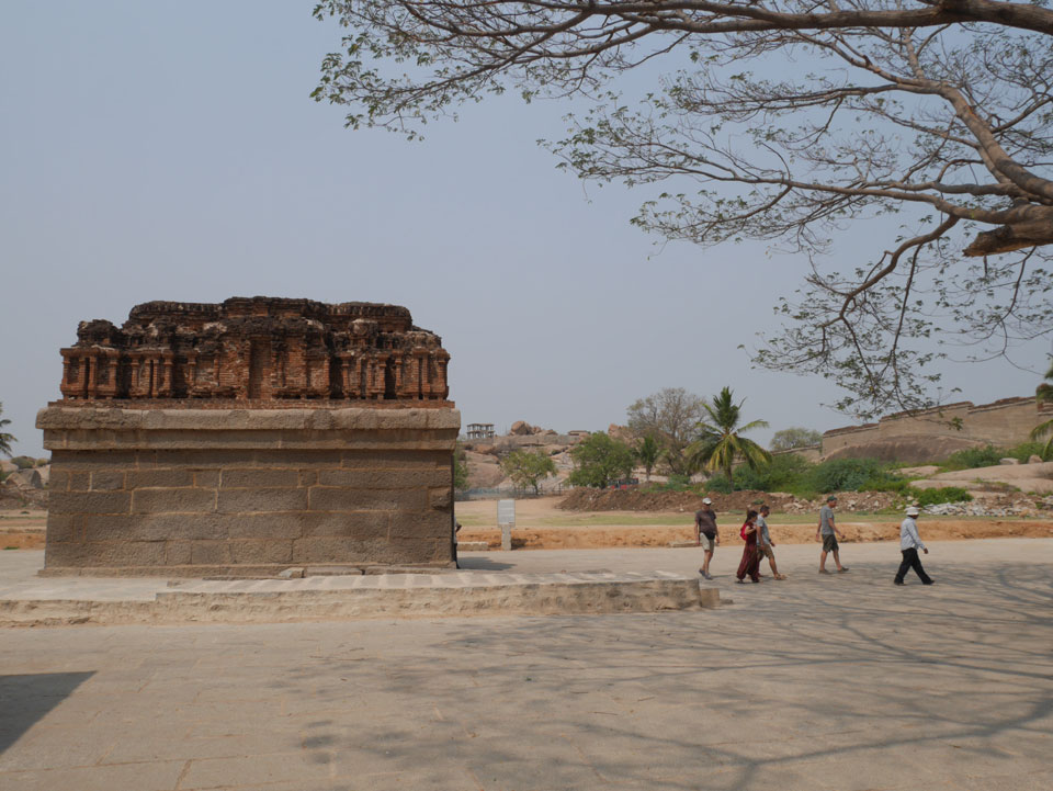 Ich sagte nur 600 zu + 100 Trinkgeld, wenn alles gut ist. Damit war der Fahrer zufrieden und wir fuhren los. Gleich am Ortsausgang Hampis war schon der erste Tempel, den ich nicht kannte. Gleich weiter ging’s zu einem mit Wasser zur Kühlung der Räume. Eine alte Frau führte durch und zeigte auf Fledermäuse an der Decke. Die 20 INR Trinkgeld waren OK für die Hobby-Führung in paar Minuten.