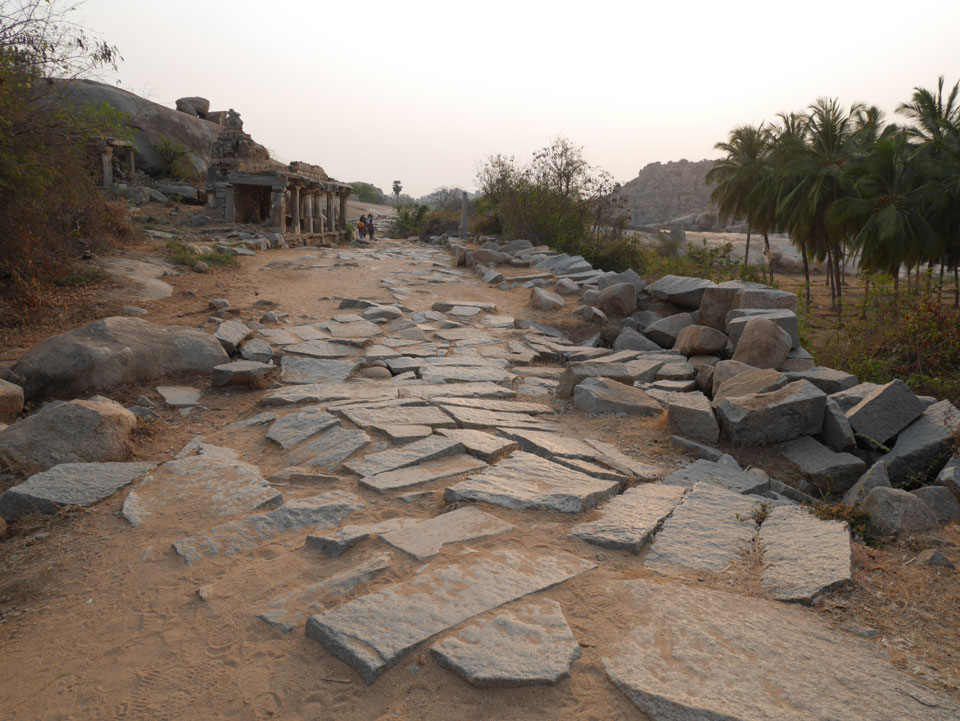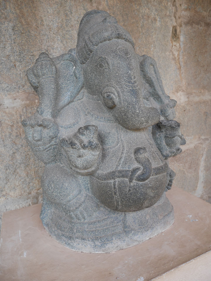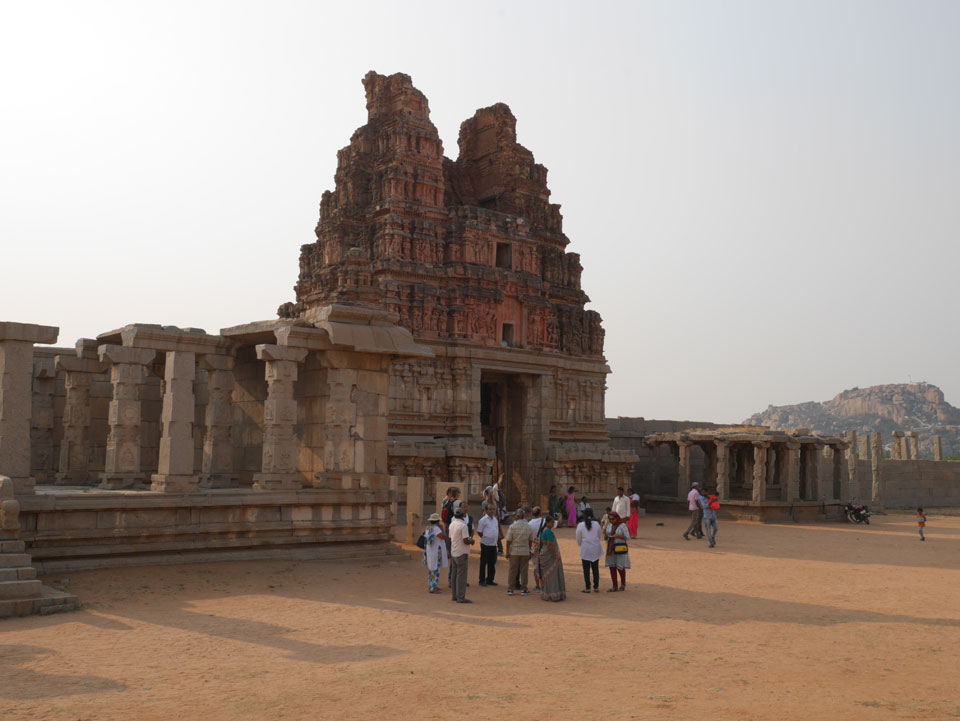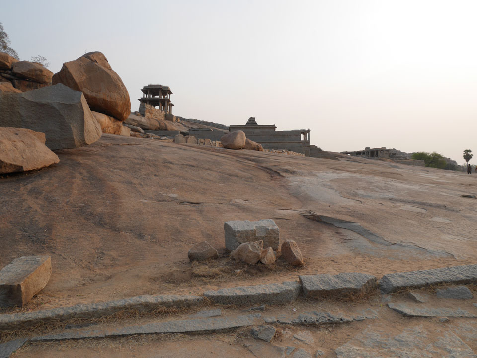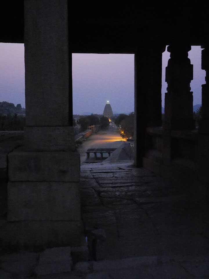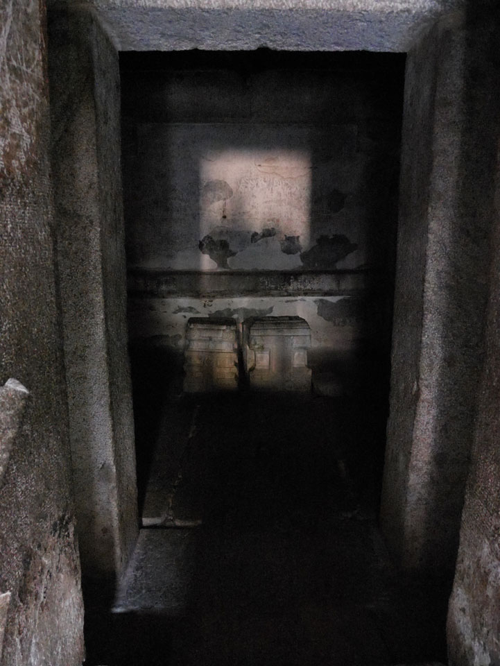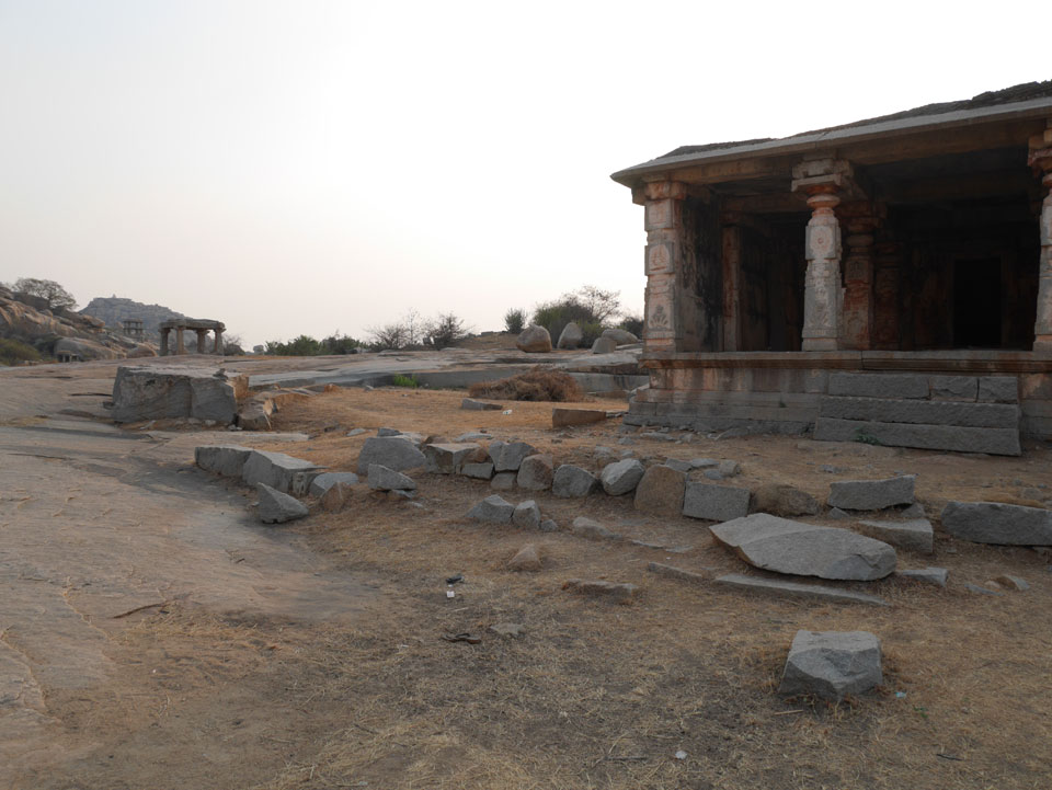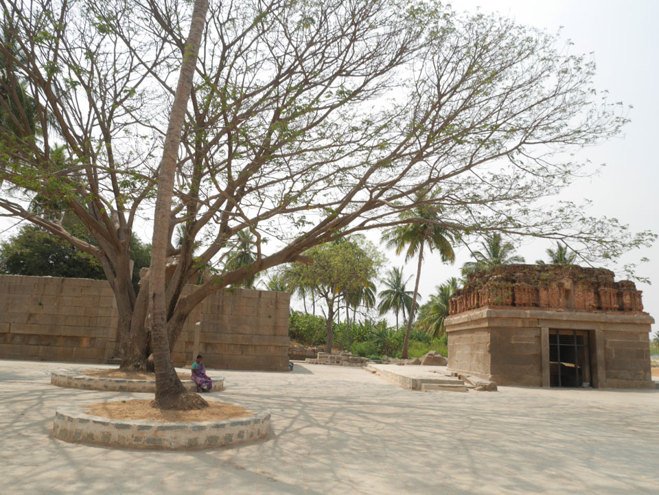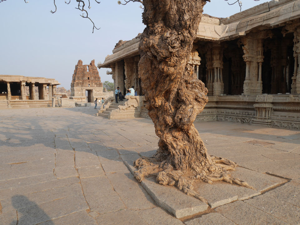 Ich sagte nur 600 zu + 100 Trinkgeld, wenn alles gut ist. Damit war der Fahrer zufrieden und wir fuhren los. Gleich am Ortsausgang Hampis war schon der erste Tempel, den ich nicht kannte. Gleich weiter ging’s zu einem mit Wasser zur Kühlung der Räume. Eine alte Frau führte durch und zeigte auf Fledermäuse an der Decke. Die 20 INR Trinkgeld waren OK für die Hobby-Führung in paar Minuten.