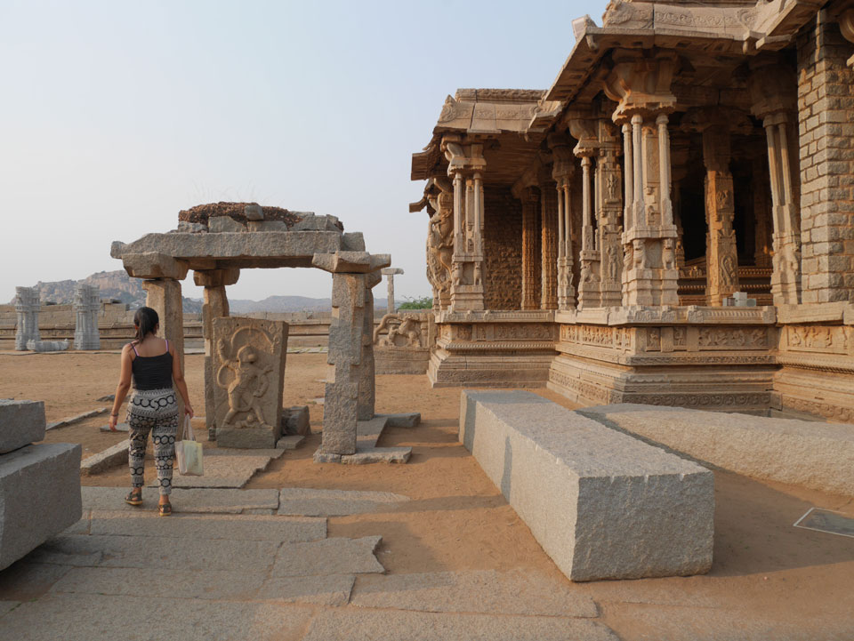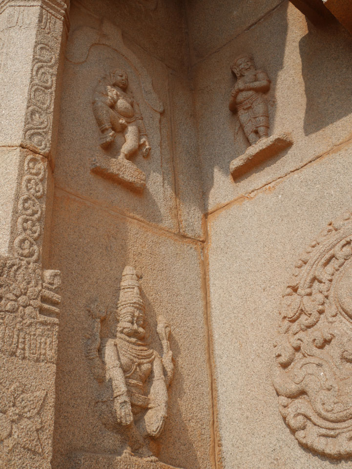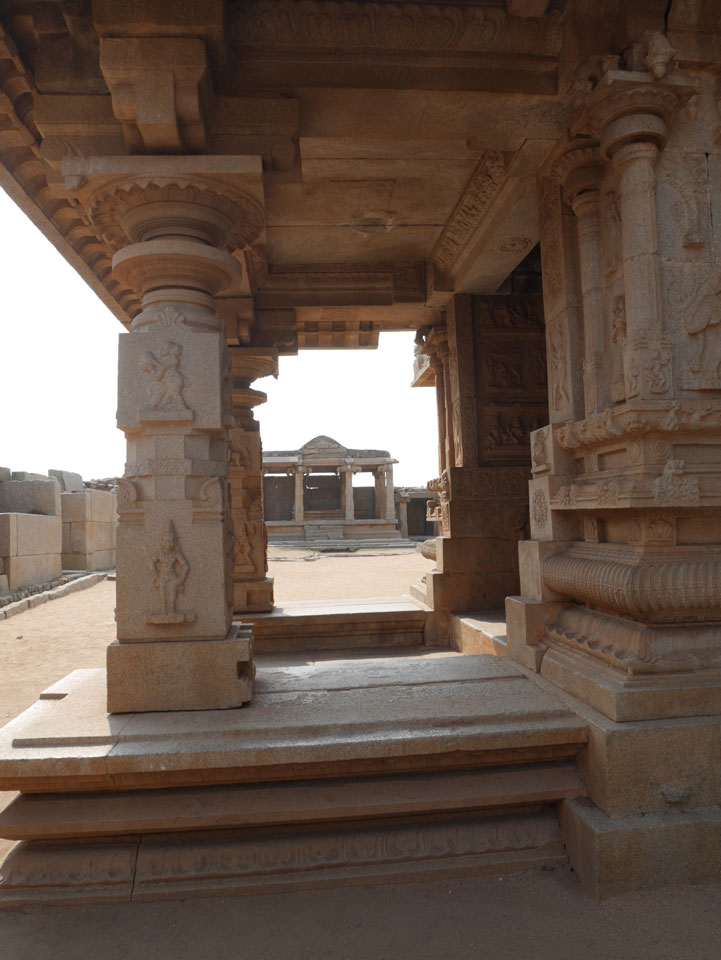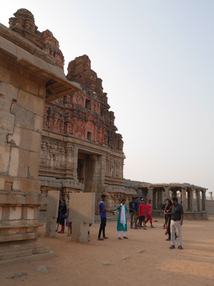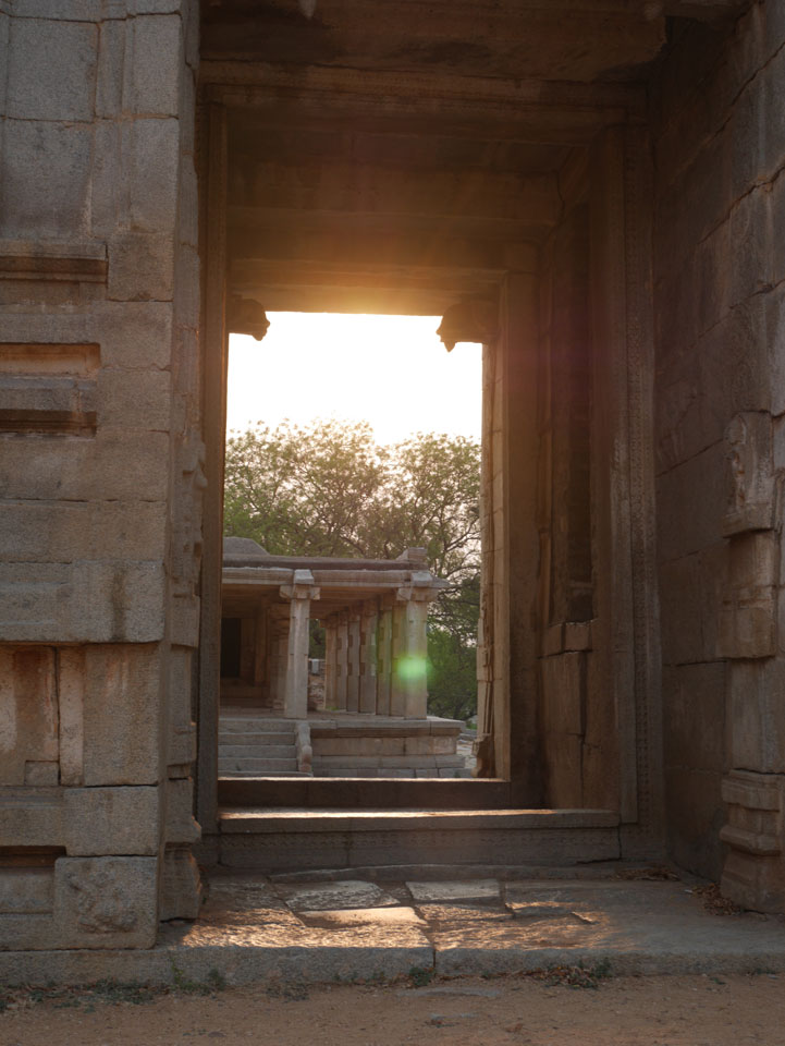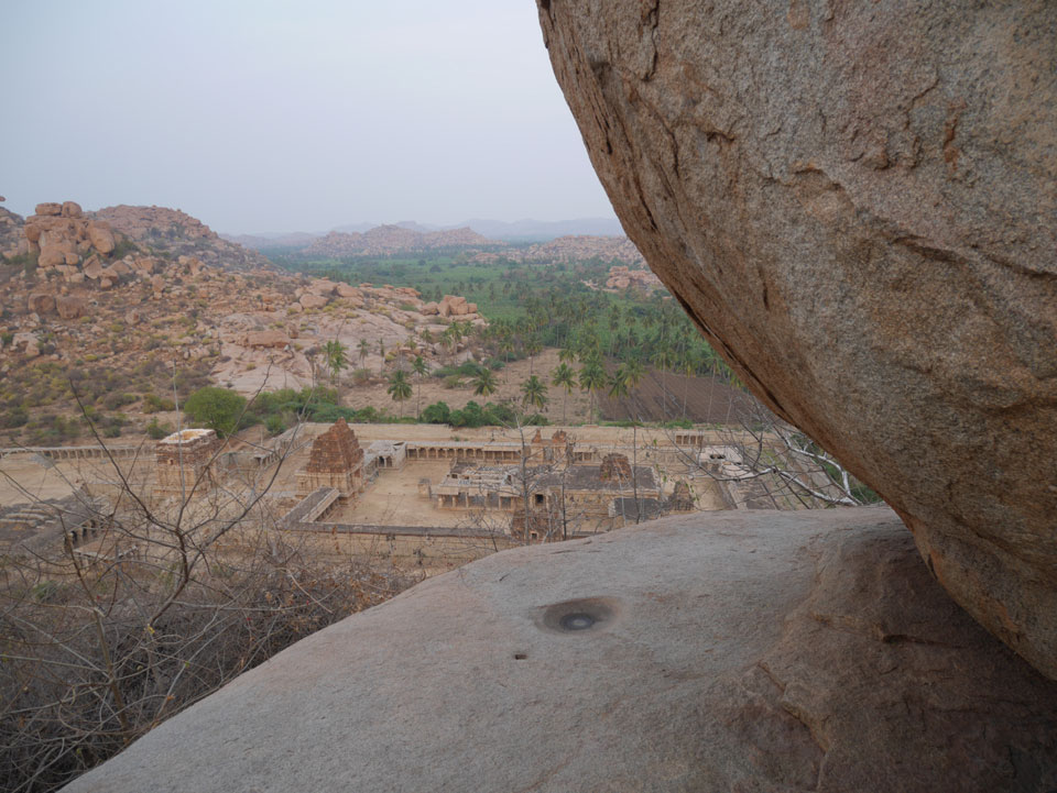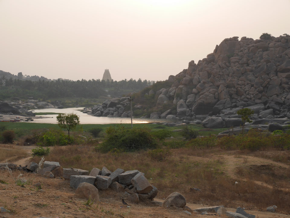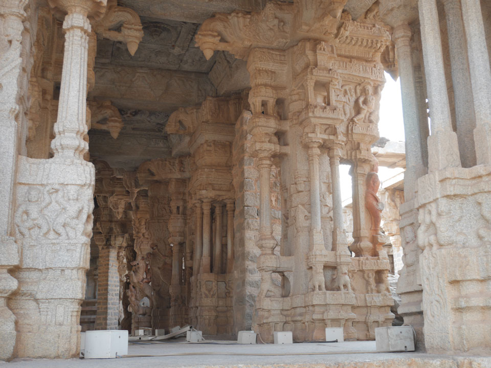Ich sagte nur 600 zu + 100 Trinkgeld, wenn alles gut ist. Damit war der Fahrer zufrieden und wir fuhren los. Gleich am Ortsausgang Hampis war schon der erste Tempel, den ich nicht kannte. Gleich weiter ging’s zu einem mit Wasser zur Kühlung der Räume. Eine alte Frau führte durch und zeigte auf Fledermäuse an der Decke. Die 20 INR Trinkgeld waren OK für die Hobby-Führung in paar Minuten.