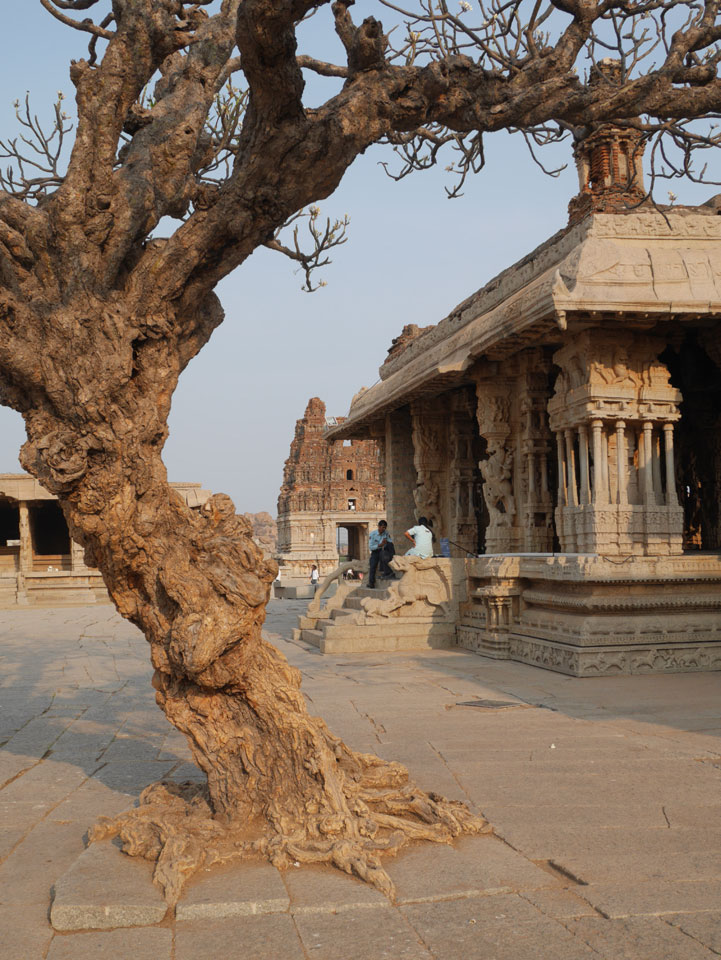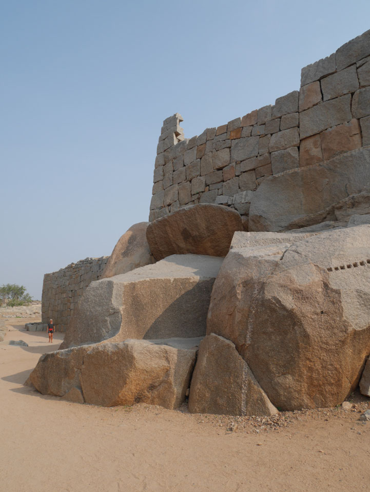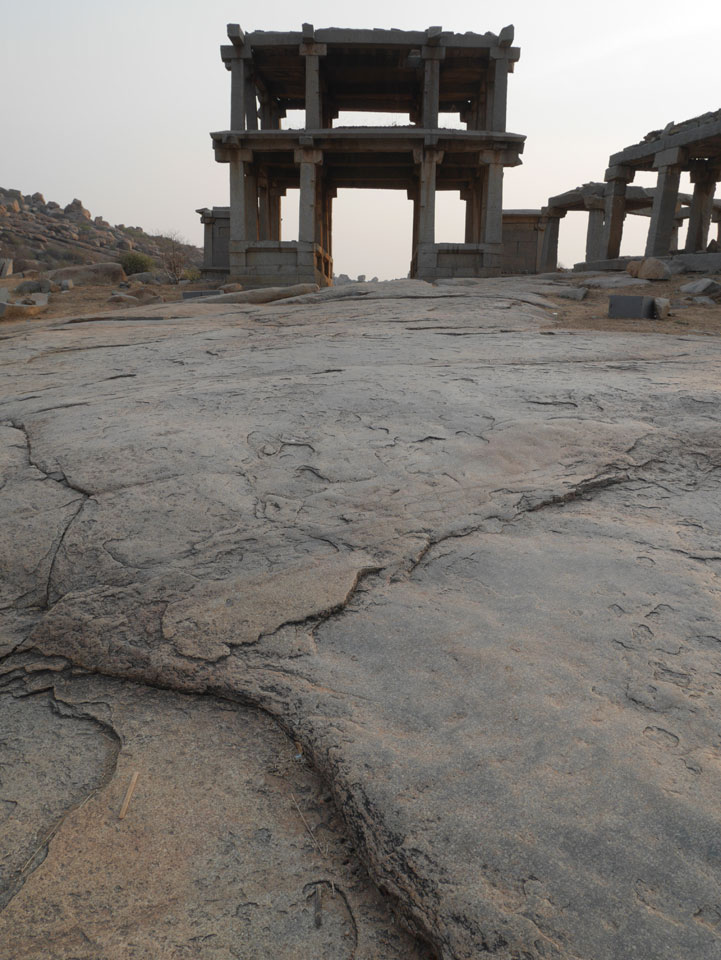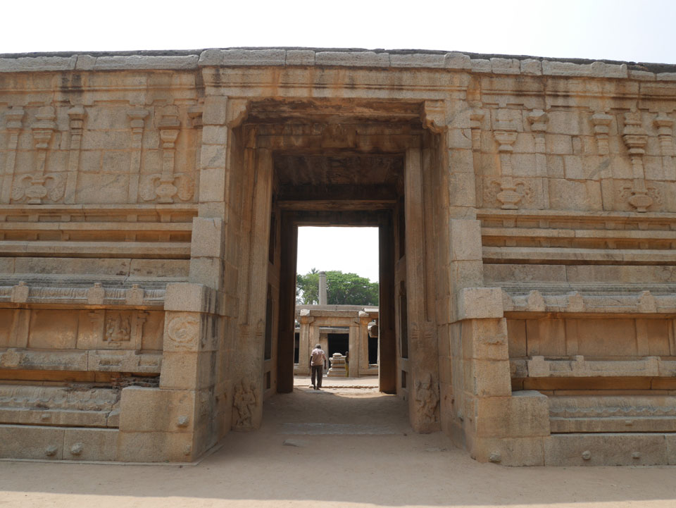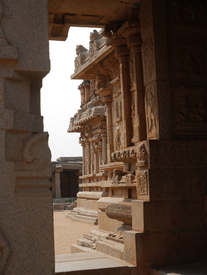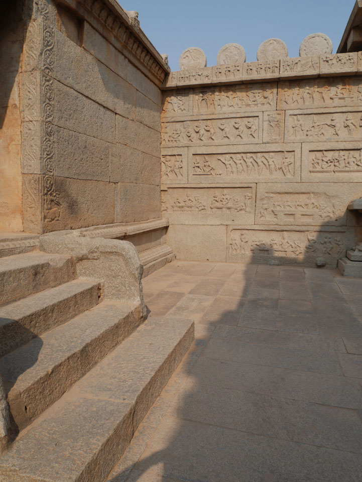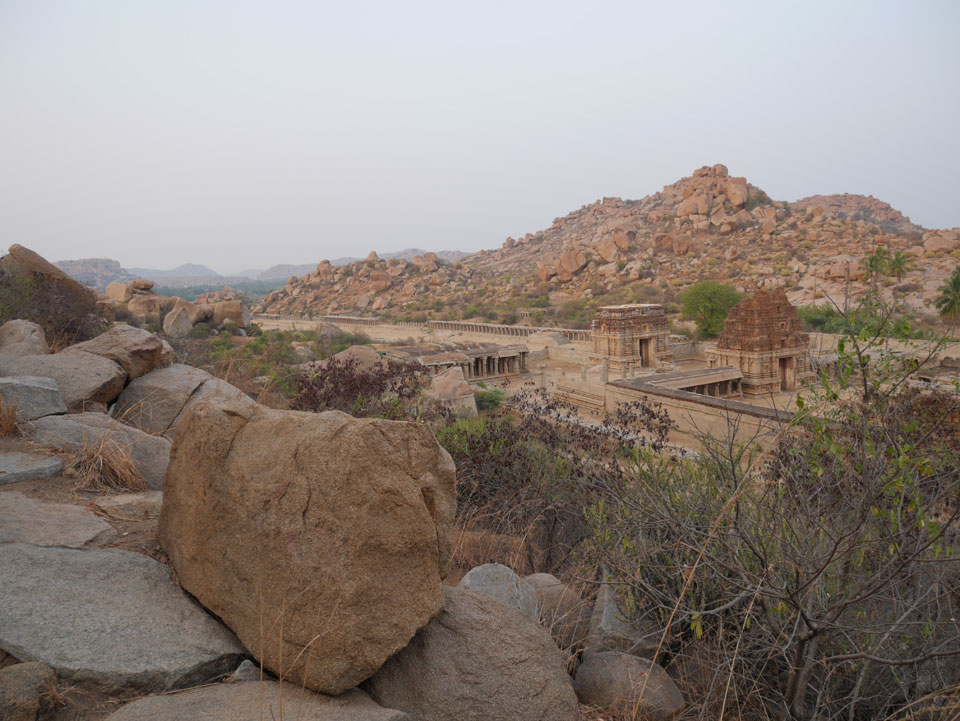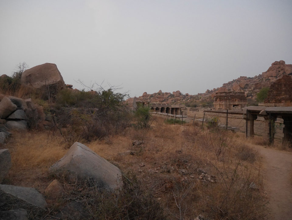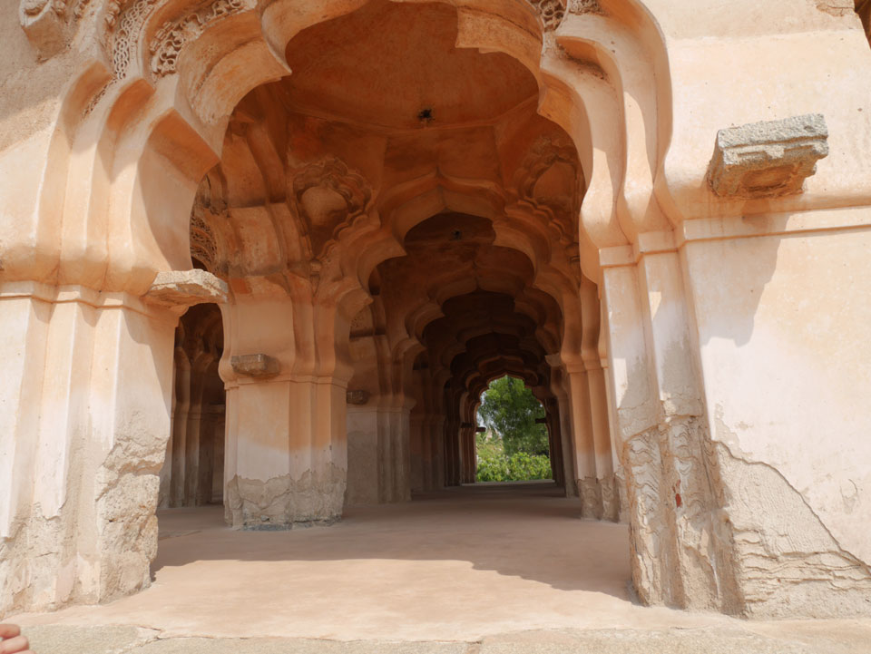 Ich sagte nur 600 zu + 100 Trinkgeld, wenn alles gut ist. Damit war der Fahrer zufrieden und wir fuhren los. Gleich am Ortsausgang Hampis war schon der erste Tempel, den ich nicht kannte. Gleich weiter ging’s zu einem mit Wasser zur Kühlung der Räume. Eine alte Frau führte durch und zeigte auf Fledermäuse an der Decke. Die 20 INR Trinkgeld waren OK für die Hobby-Führung in paar Minuten.