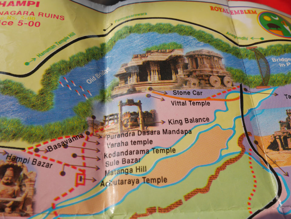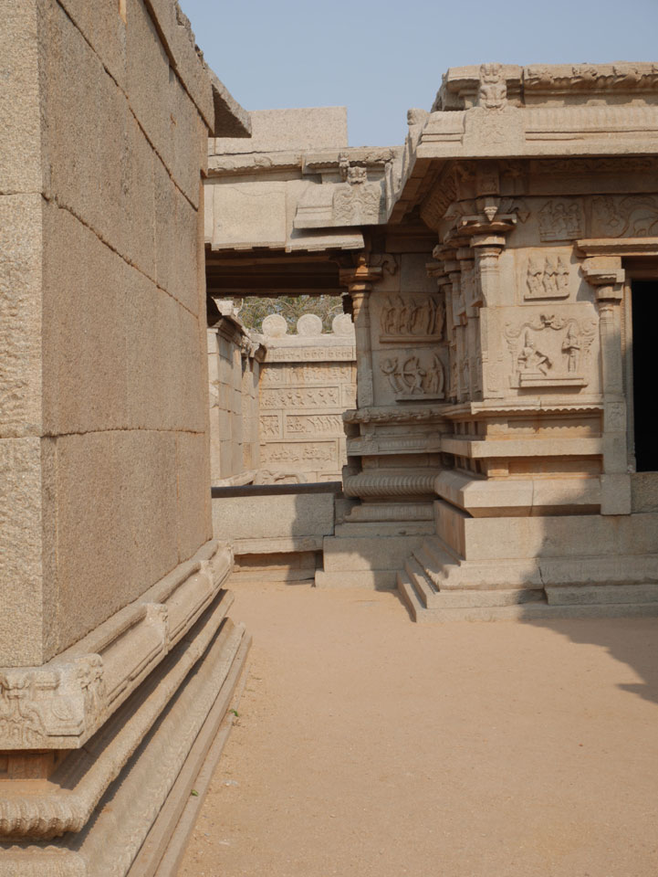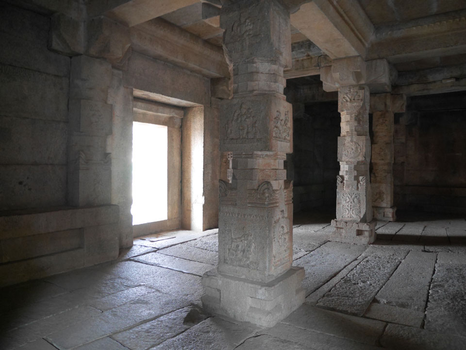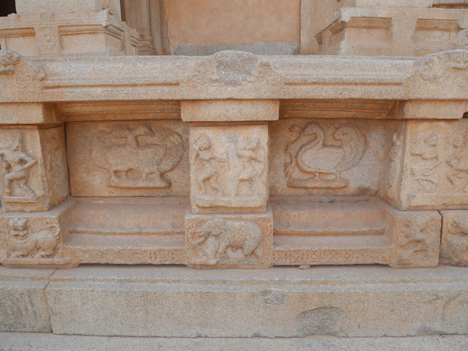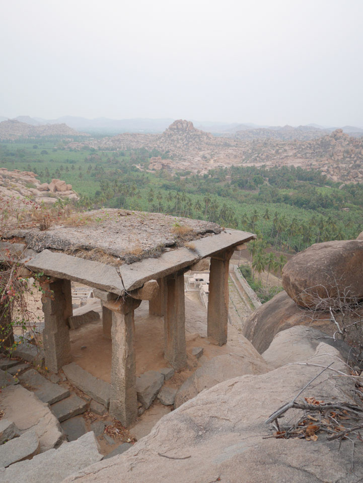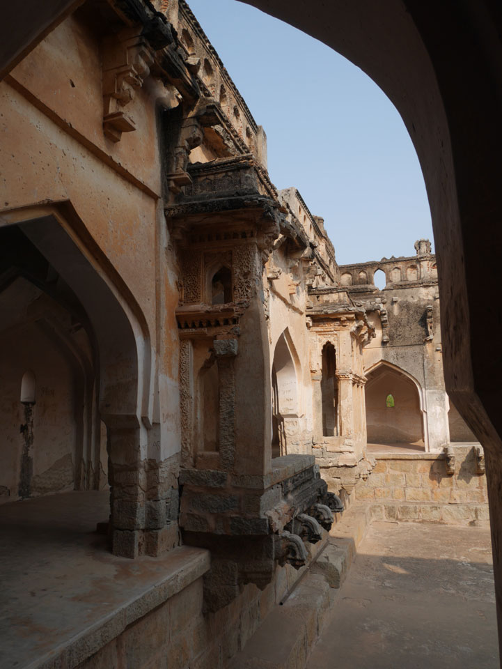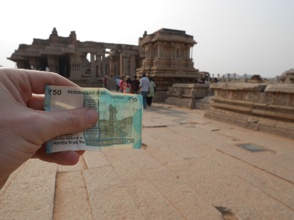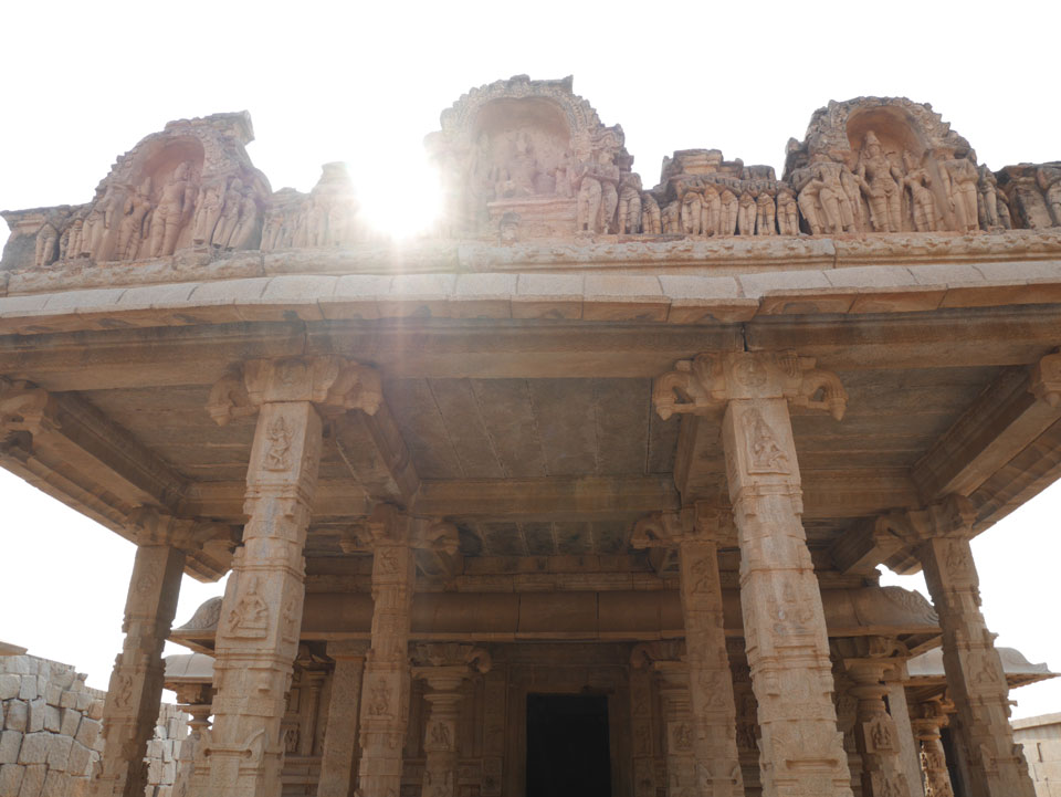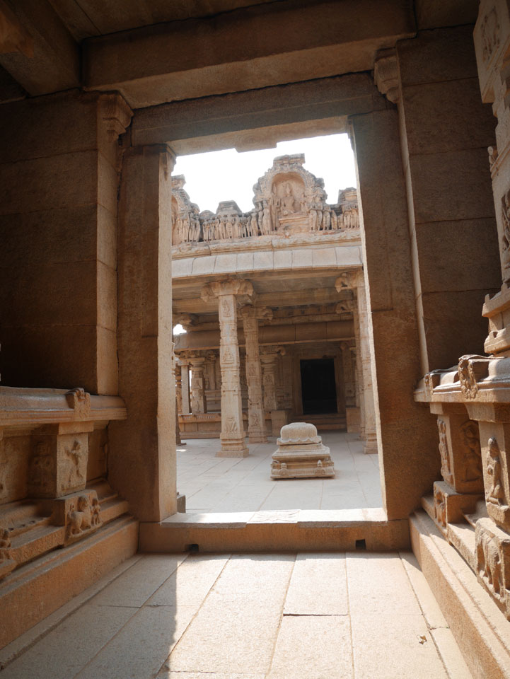 Ich sagte nur 600 zu + 100 Trinkgeld, wenn alles gut ist. Damit war der Fahrer zufrieden und wir fuhren los. Gleich am Ortsausgang Hampis war schon der erste Tempel, den ich nicht kannte. Gleich weiter ging’s zu einem mit Wasser zur Kühlung der Räume. Eine alte Frau führte durch und zeigte auf Fledermäuse an der Decke. Die 20 INR Trinkgeld waren OK für die Hobby-Führung in paar Minuten.