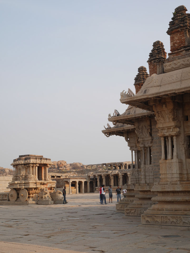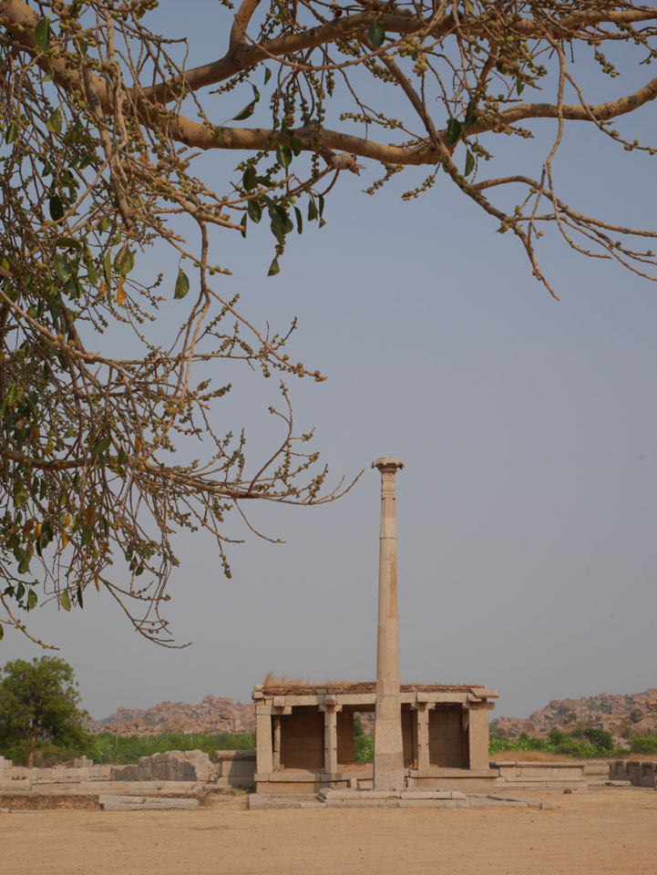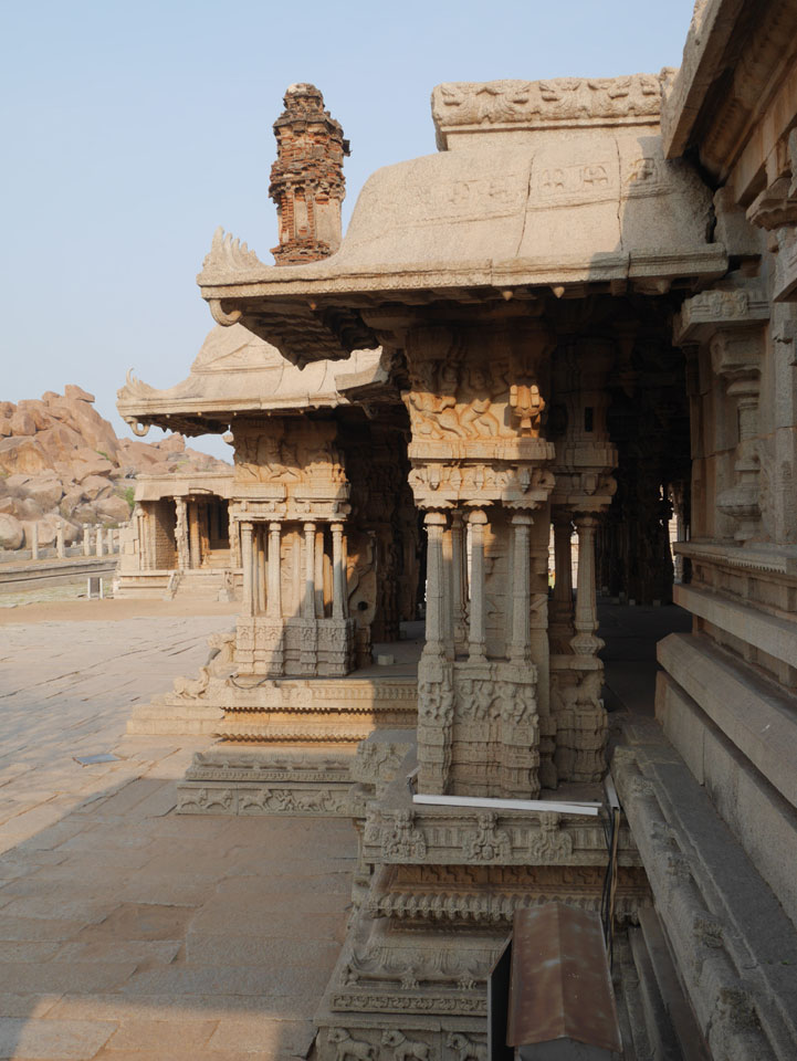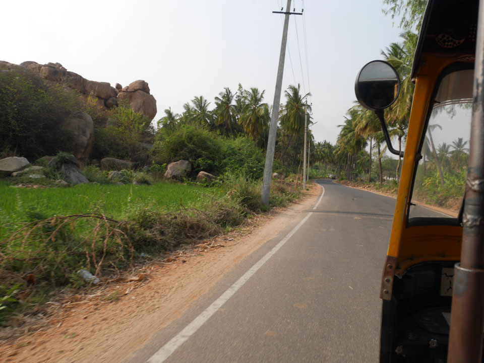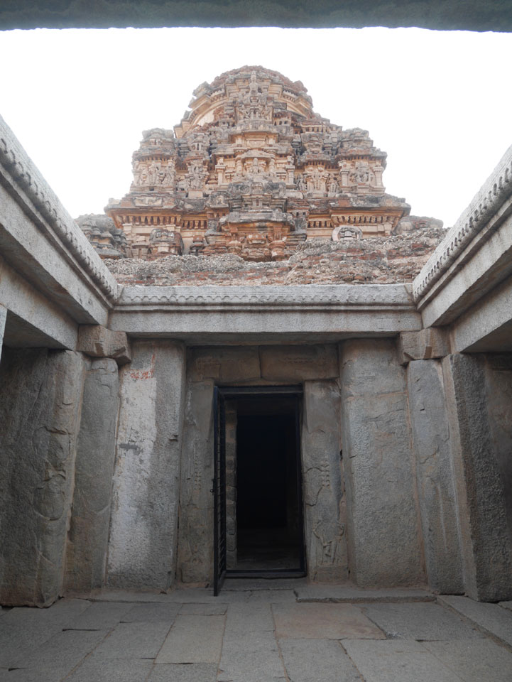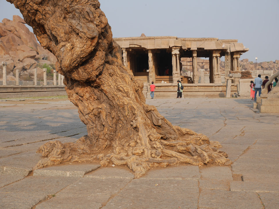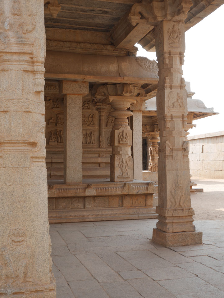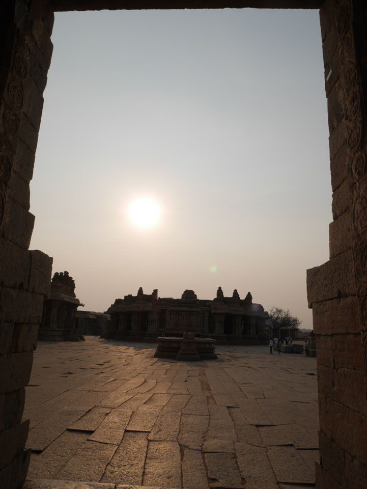 Ich sagte nur 600 zu + 100 Trinkgeld, wenn alles gut ist. Damit war der Fahrer zufrieden und wir fuhren los. Gleich am Ortsausgang Hampis war schon der erste Tempel, den ich nicht kannte. Gleich weiter ging’s zu einem mit Wasser zur Kühlung der Räume. Eine alte Frau führte durch und zeigte auf Fledermäuse an der Decke. Die 20 INR Trinkgeld waren OK für die Hobby-Führung in paar Minuten.