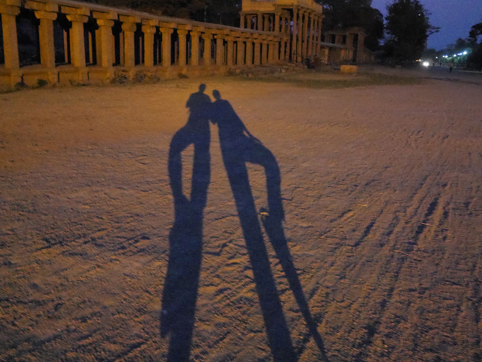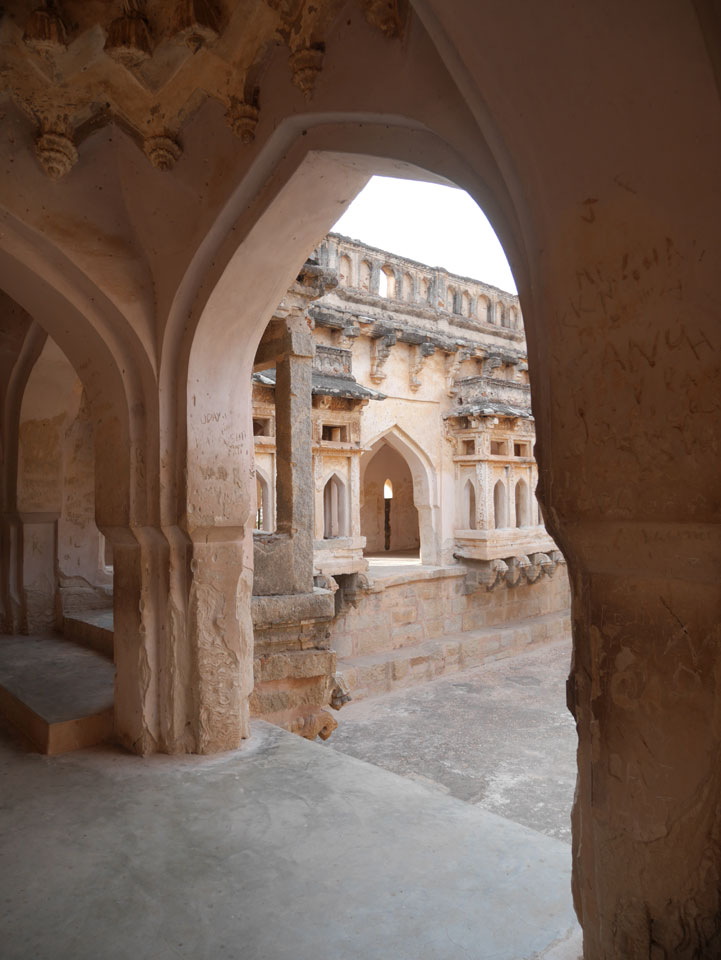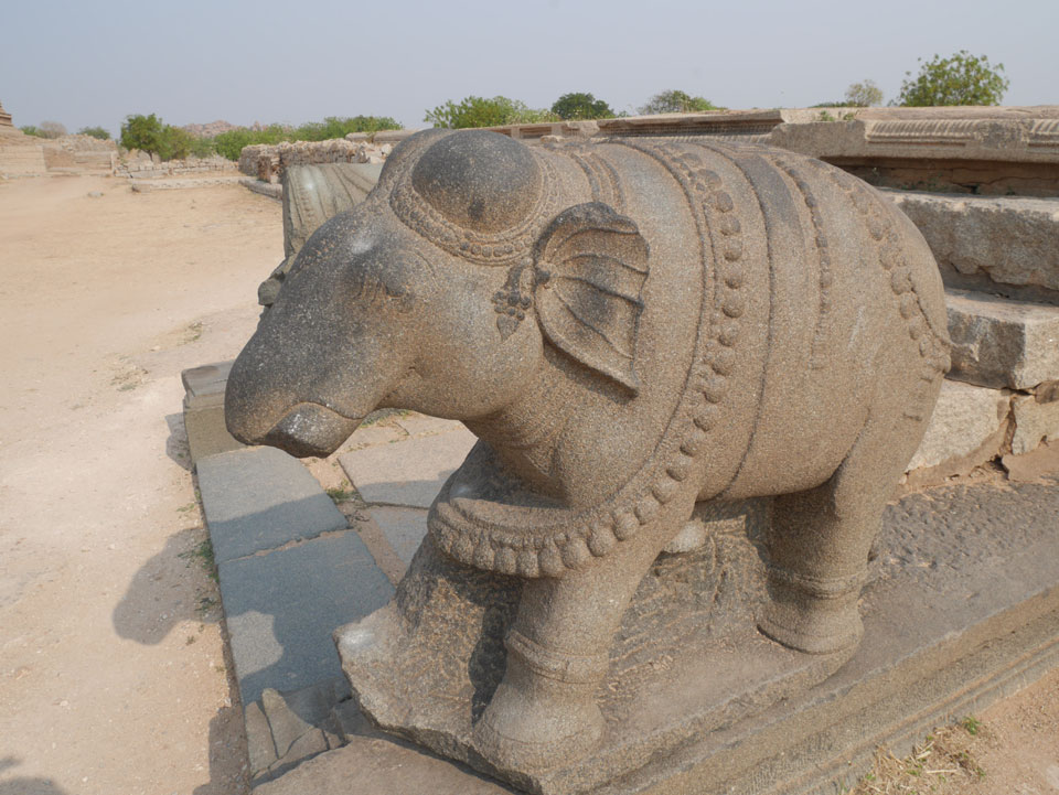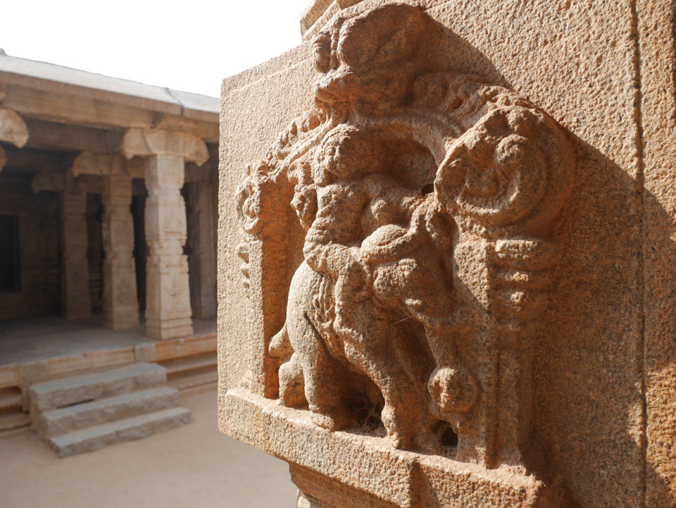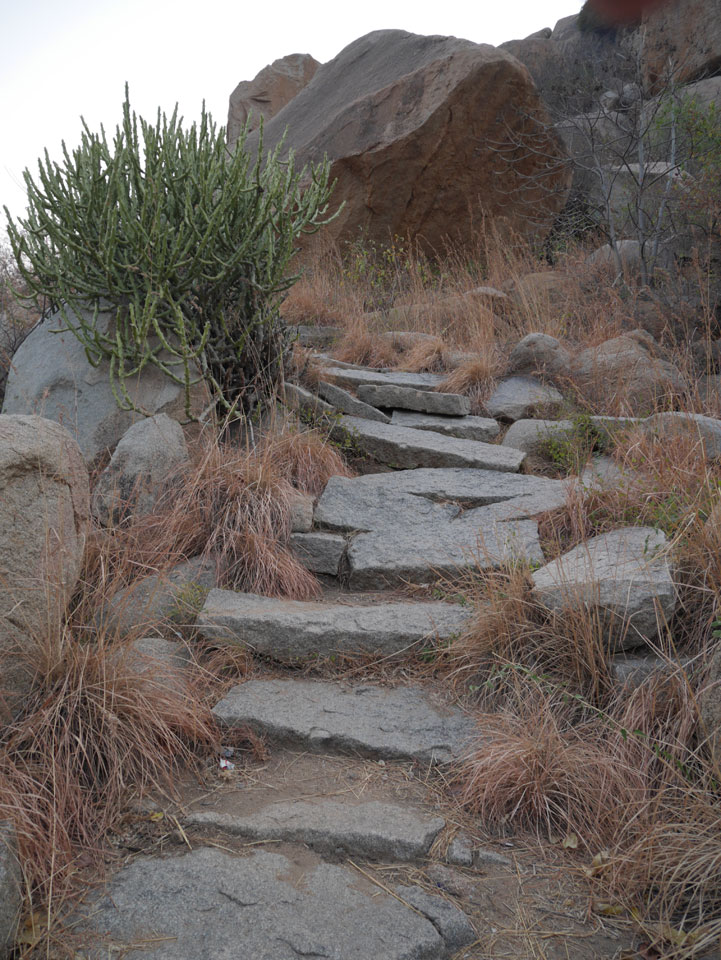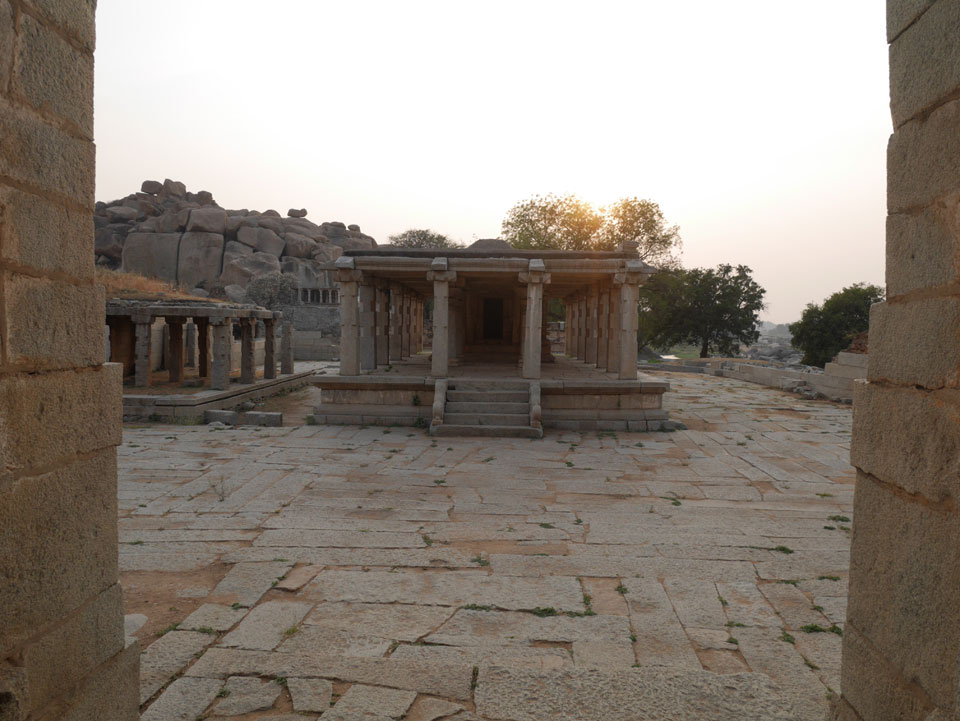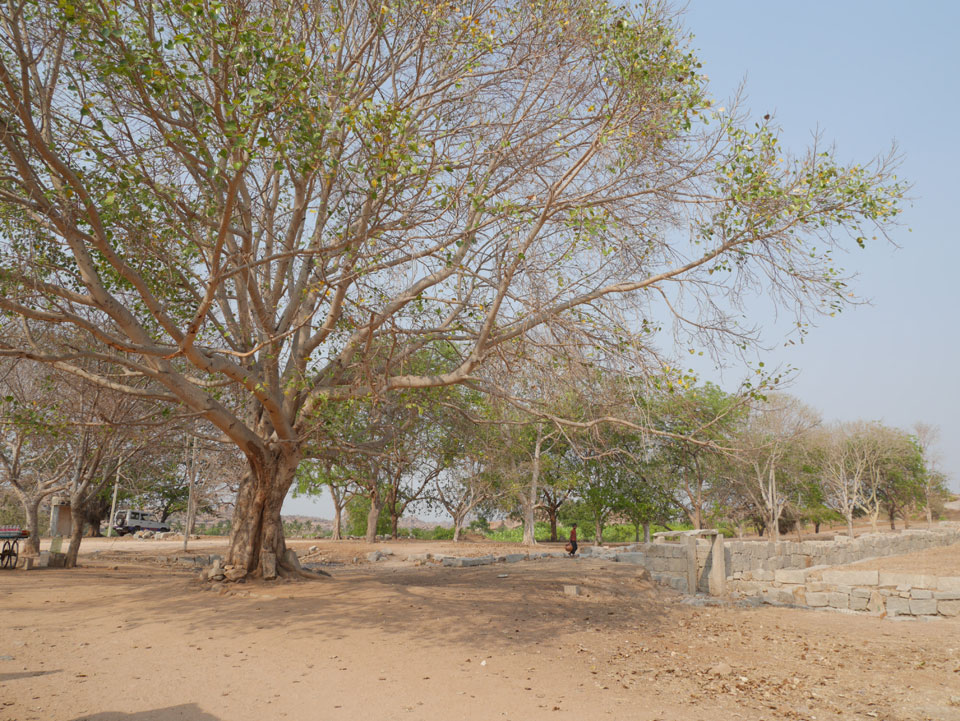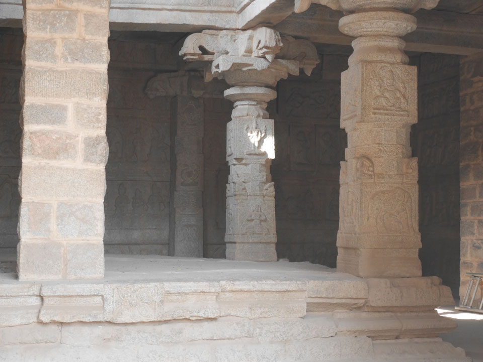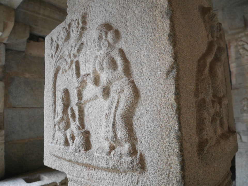 Ich sagte nur 600 zu + 100 Trinkgeld, wenn alles gut ist. Damit war der Fahrer zufrieden und wir fuhren los. Gleich am Ortsausgang Hampis war schon der erste Tempel, den ich nicht kannte. Gleich weiter ging’s zu einem mit Wasser zur Kühlung der Räume. Eine alte Frau führte durch und zeigte auf Fledermäuse an der Decke. Die 20 INR Trinkgeld waren OK für die Hobby-Führung in paar Minuten.