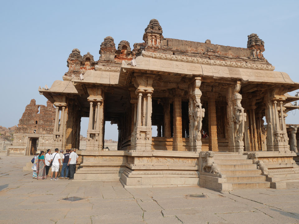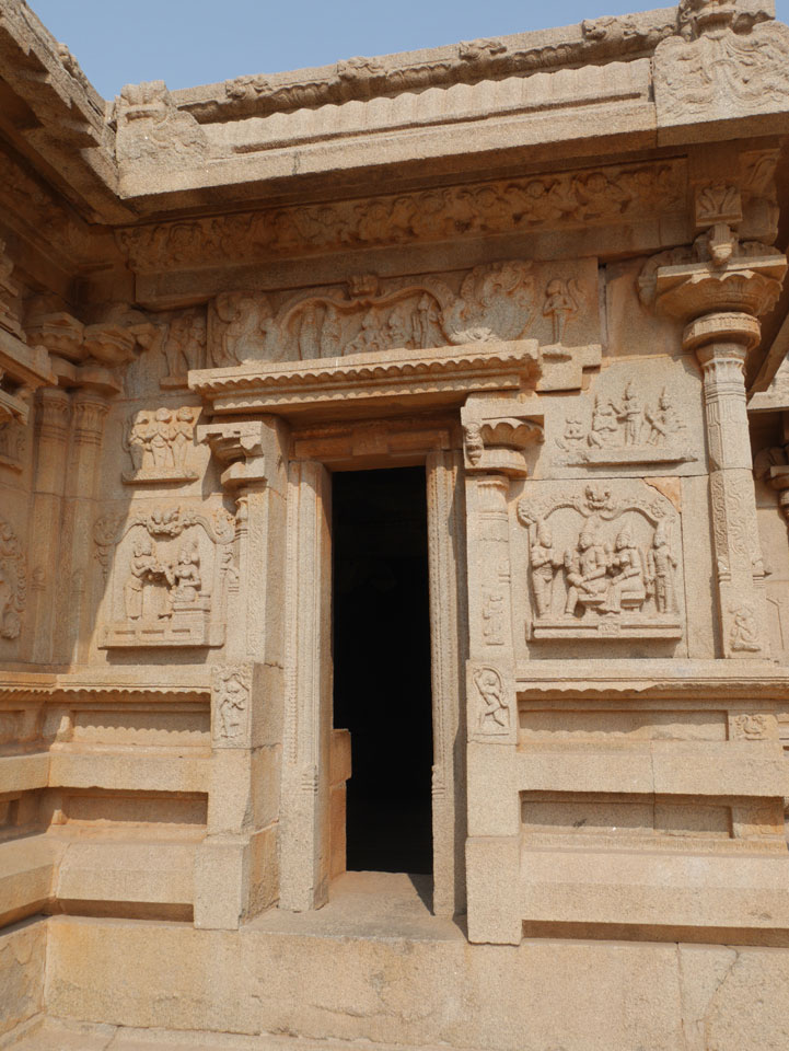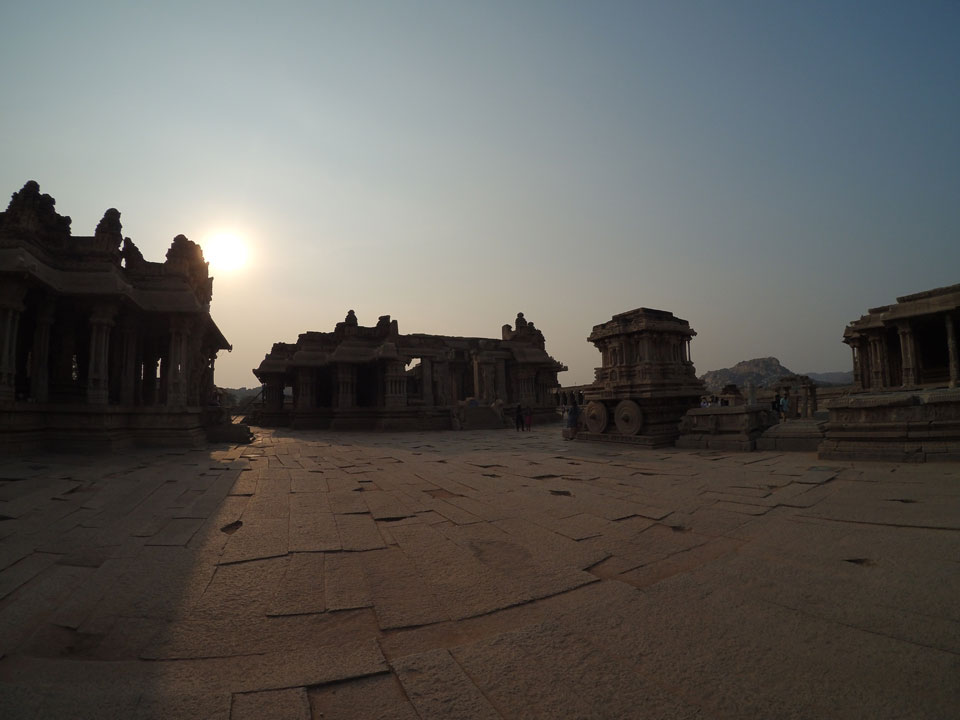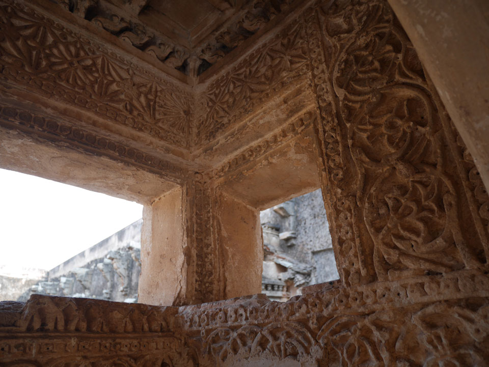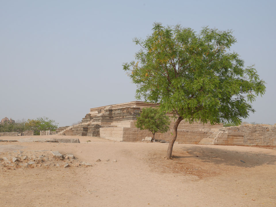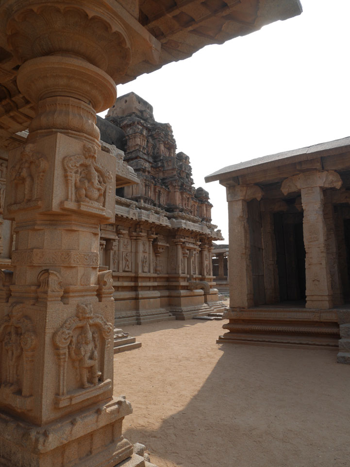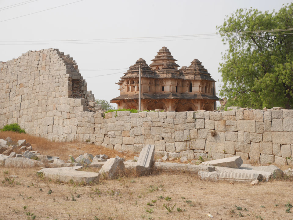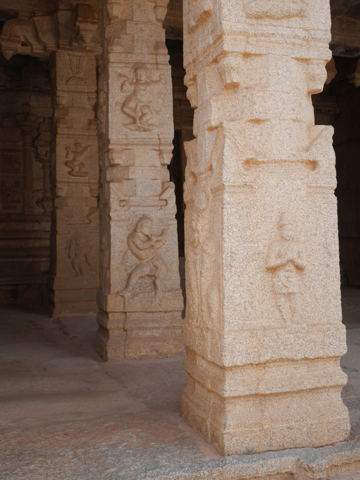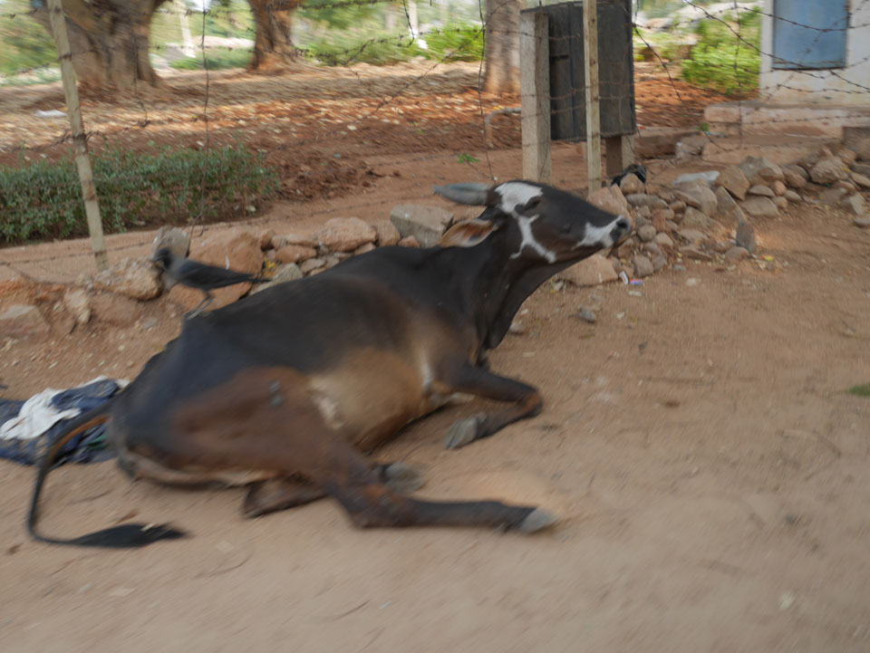 Ich sagte nur 600 zu + 100 Trinkgeld, wenn alles gut ist. Damit war der Fahrer zufrieden und wir fuhren los. Gleich am Ortsausgang Hampis war schon der erste Tempel, den ich nicht kannte. Gleich weiter ging’s zu einem mit Wasser zur Kühlung der Räume. Eine alte Frau führte durch und zeigte auf Fledermäuse an der Decke. Die 20 INR Trinkgeld waren OK für die Hobby-Führung in paar Minuten.