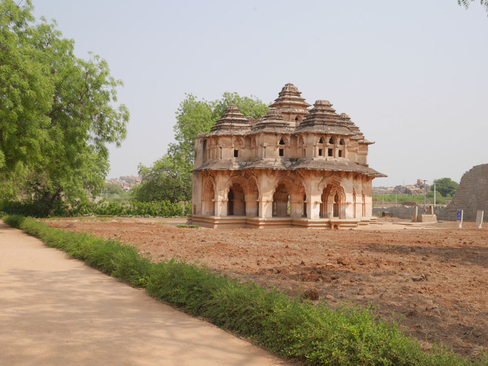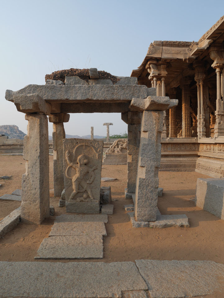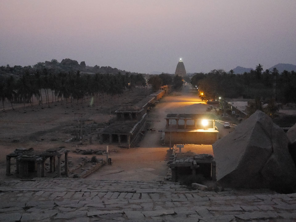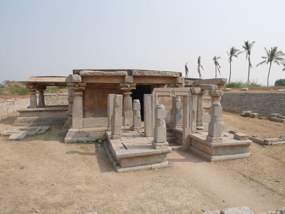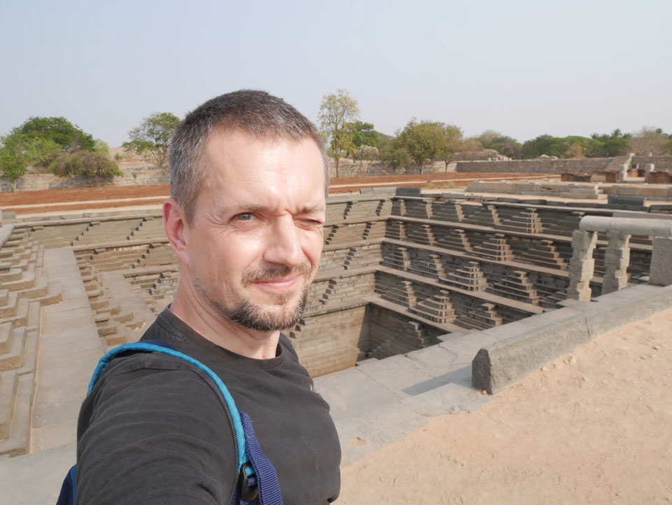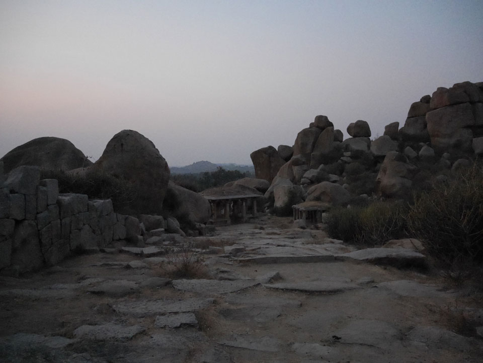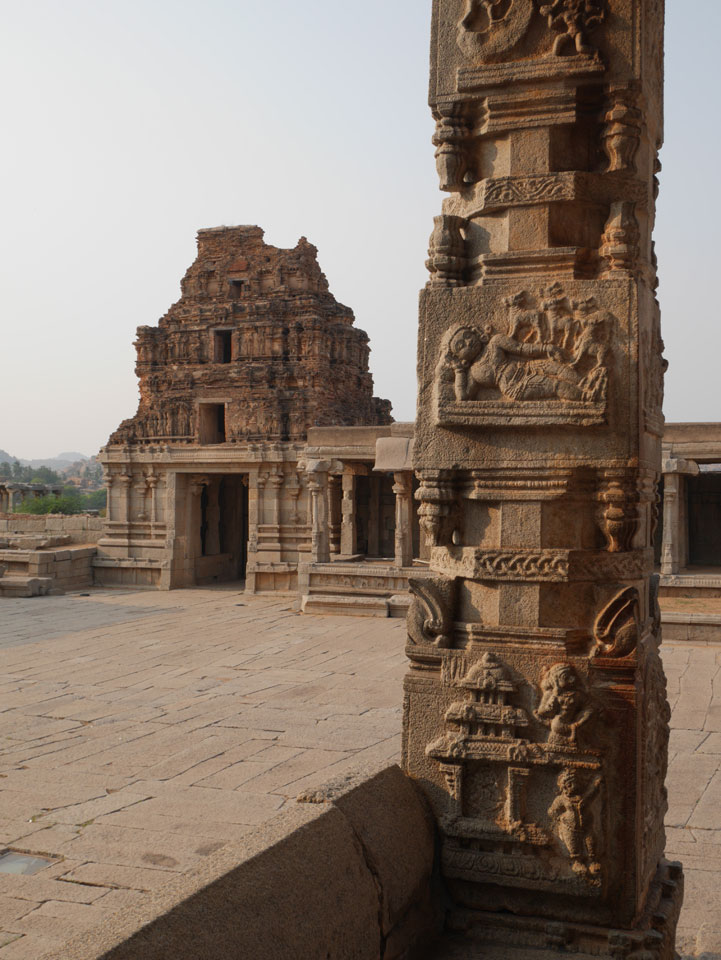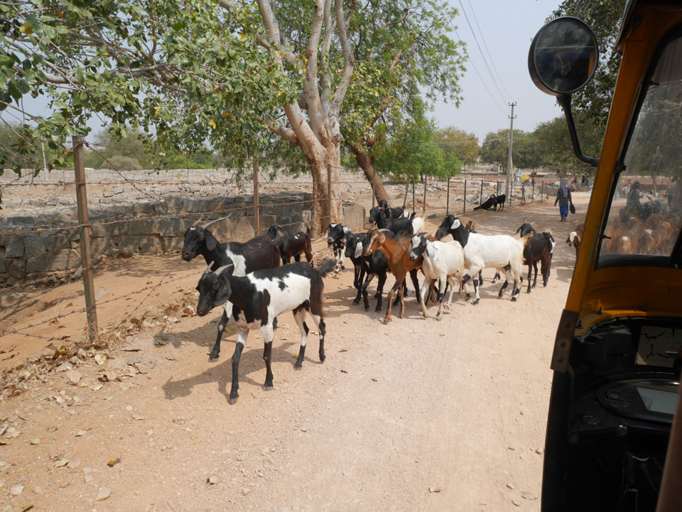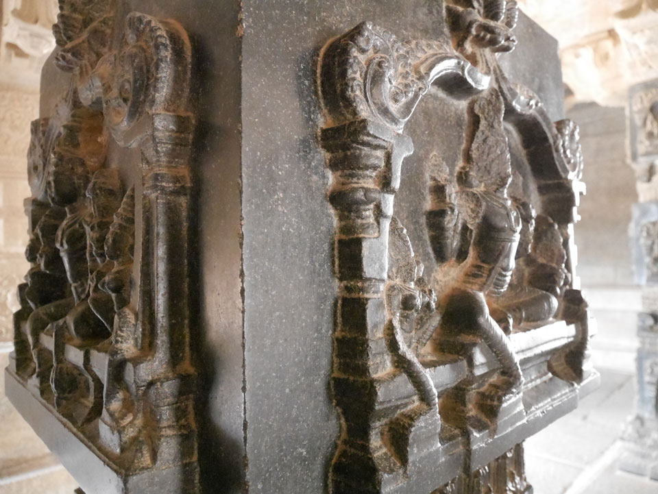 Ich sagte nur 600 zu + 100 Trinkgeld, wenn alles gut ist. Damit war der Fahrer zufrieden und wir fuhren los. Gleich am Ortsausgang Hampis war schon der erste Tempel, den ich nicht kannte. Gleich weiter ging’s zu einem mit Wasser zur Kühlung der Räume. Eine alte Frau führte durch und zeigte auf Fledermäuse an der Decke. Die 20 INR Trinkgeld waren OK für die Hobby-Führung in paar Minuten.