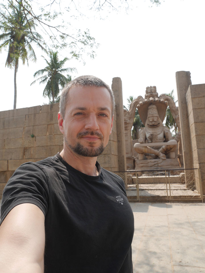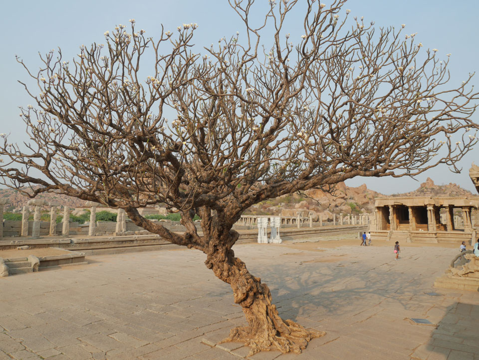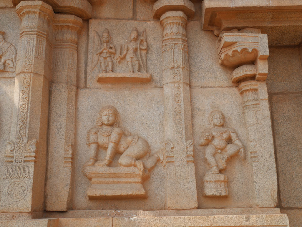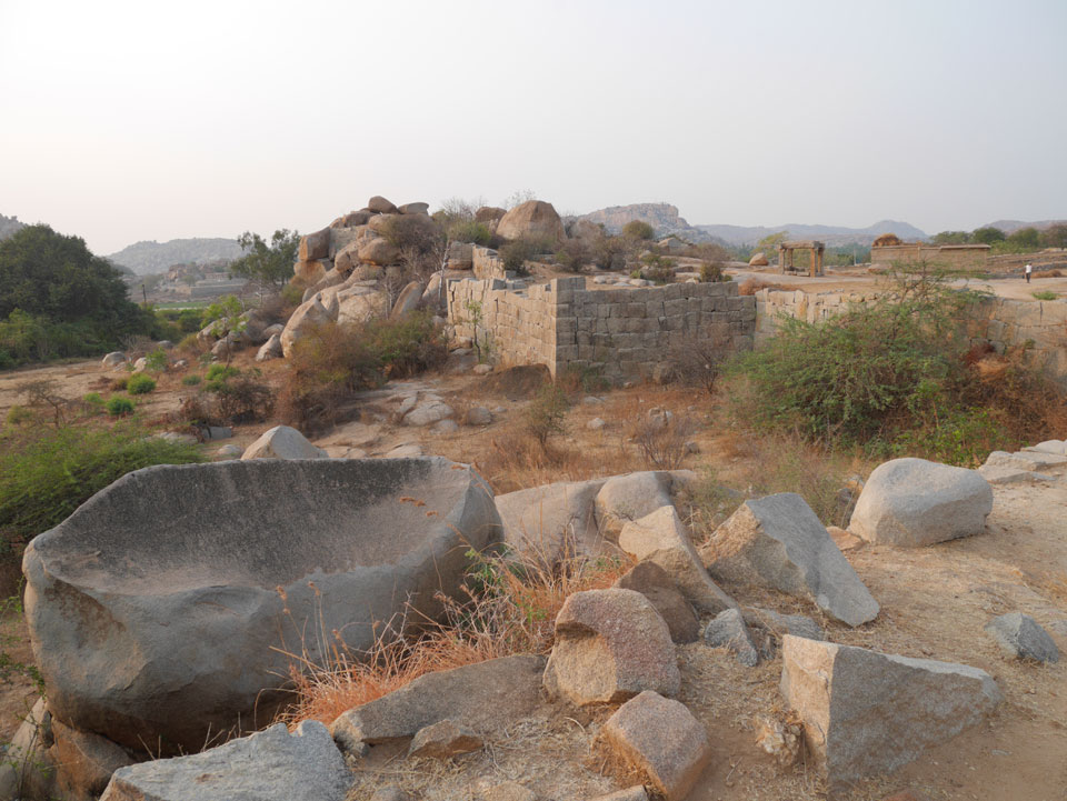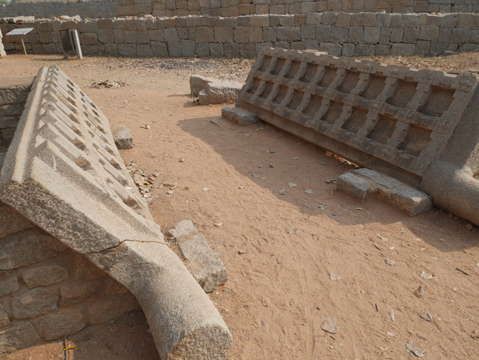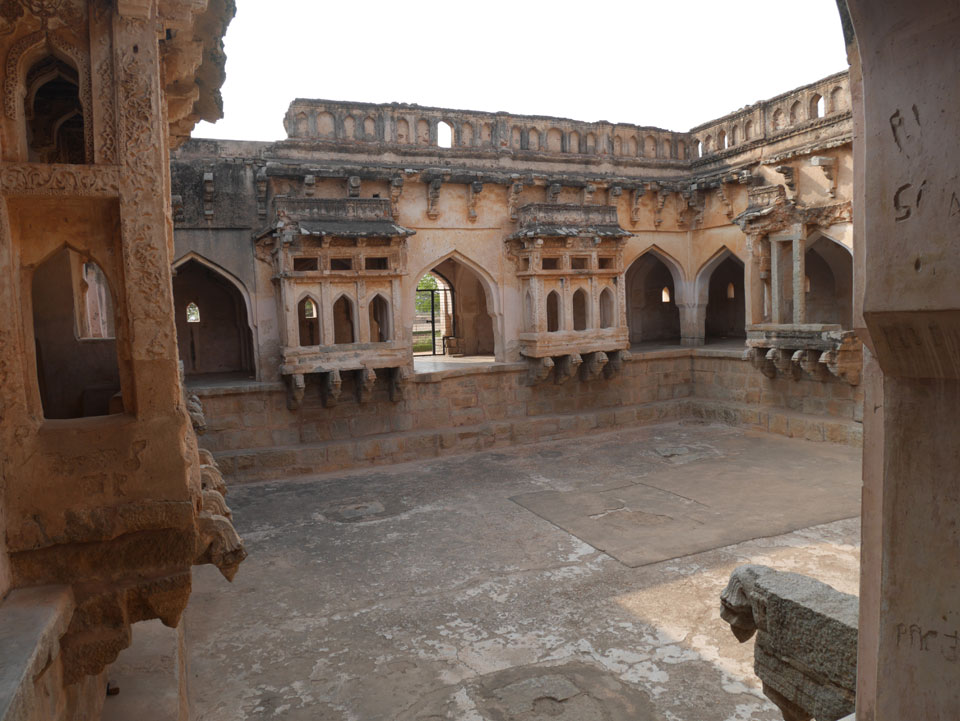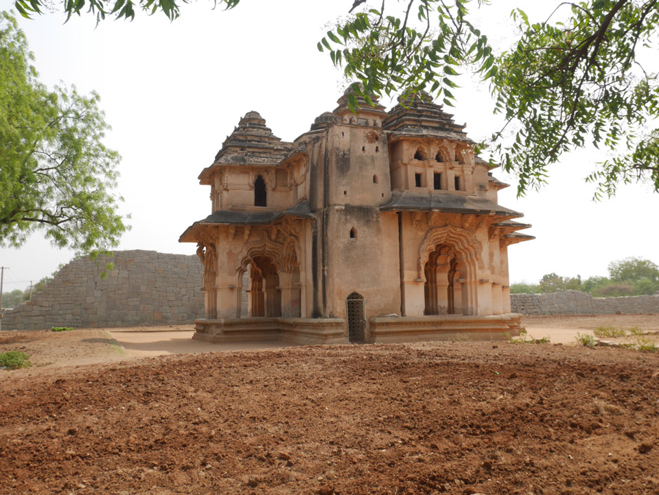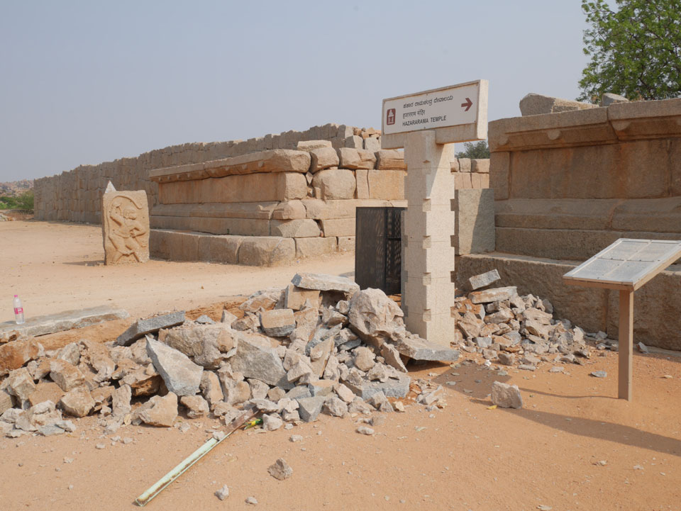 Ich sagte nur 600 zu + 100 Trinkgeld, wenn alles gut ist. Damit war der Fahrer zufrieden und wir fuhren los. Gleich am Ortsausgang Hampis war schon der erste Tempel, den ich nicht kannte. Gleich weiter ging’s zu einem mit Wasser zur Kühlung der Räume. Eine alte Frau führte durch und zeigte auf Fledermäuse an der Decke. Die 20 INR Trinkgeld waren OK für die Hobby-Führung in paar Minuten.