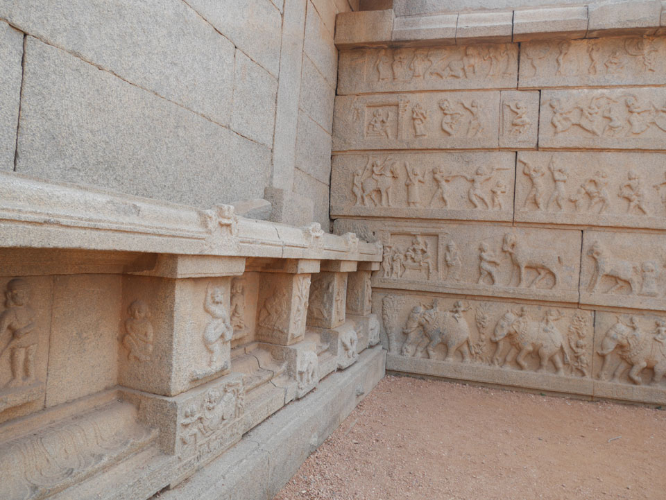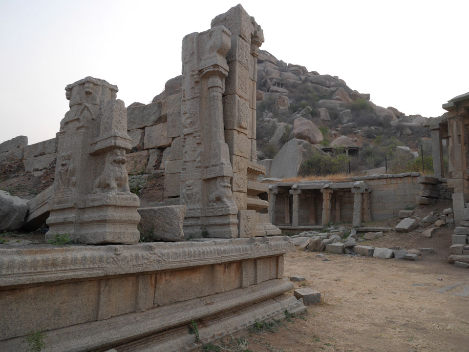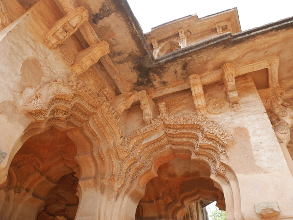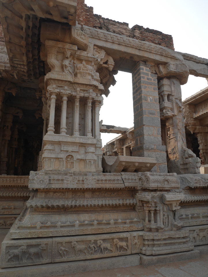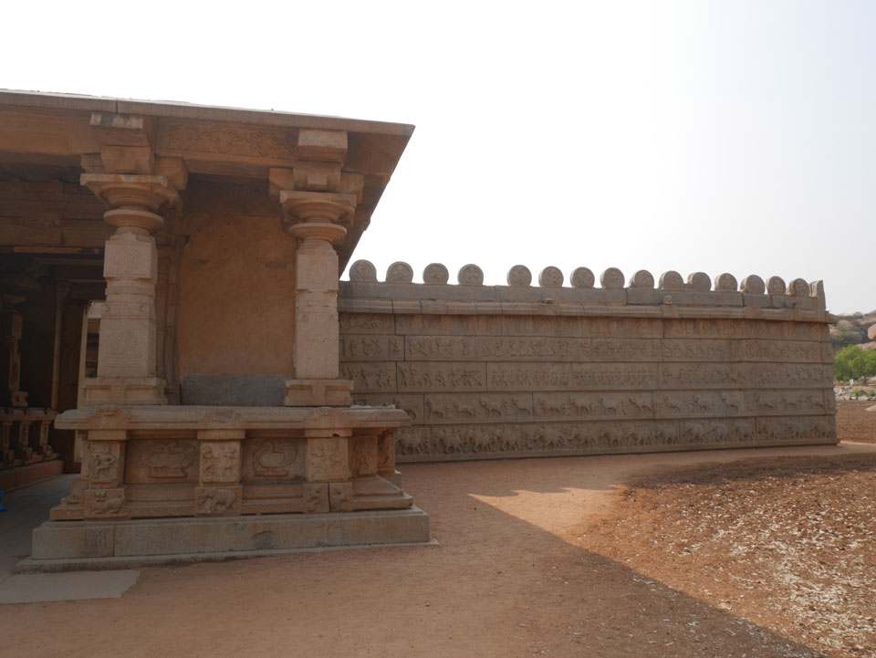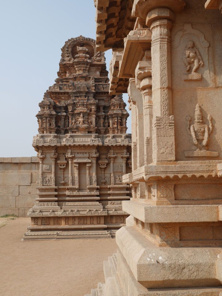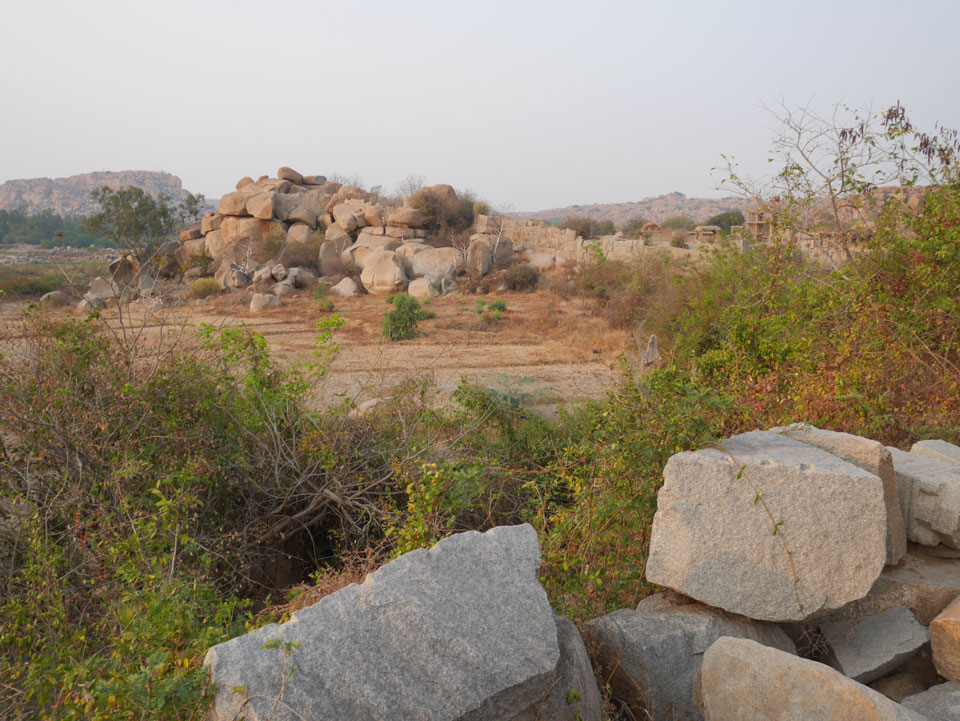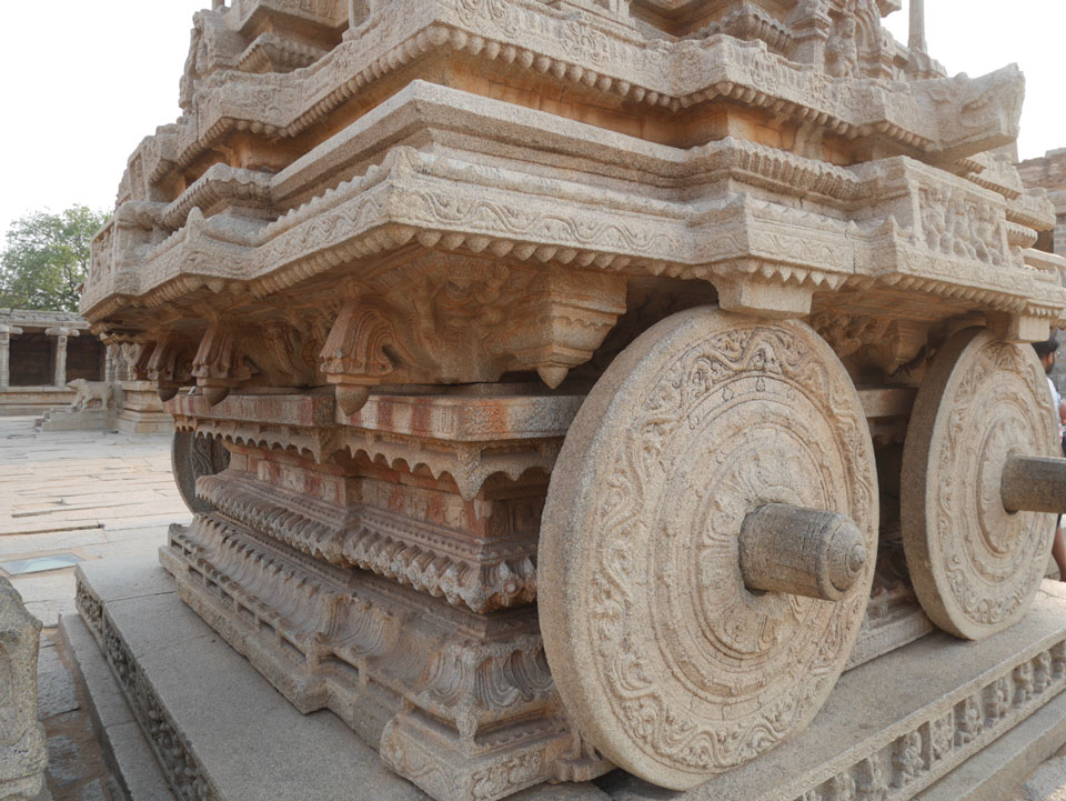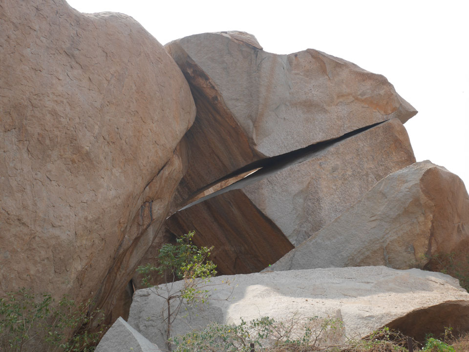 Ich sagte nur 600 zu + 100 Trinkgeld, wenn alles gut ist. Damit war der Fahrer zufrieden und wir fuhren los. Gleich am Ortsausgang Hampis war schon der erste Tempel, den ich nicht kannte. Gleich weiter ging’s zu einem mit Wasser zur Kühlung der Räume. Eine alte Frau führte durch und zeigte auf Fledermäuse an der Decke. Die 20 INR Trinkgeld waren OK für die Hobby-Führung in paar Minuten.