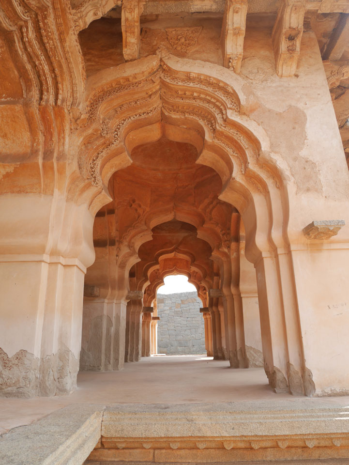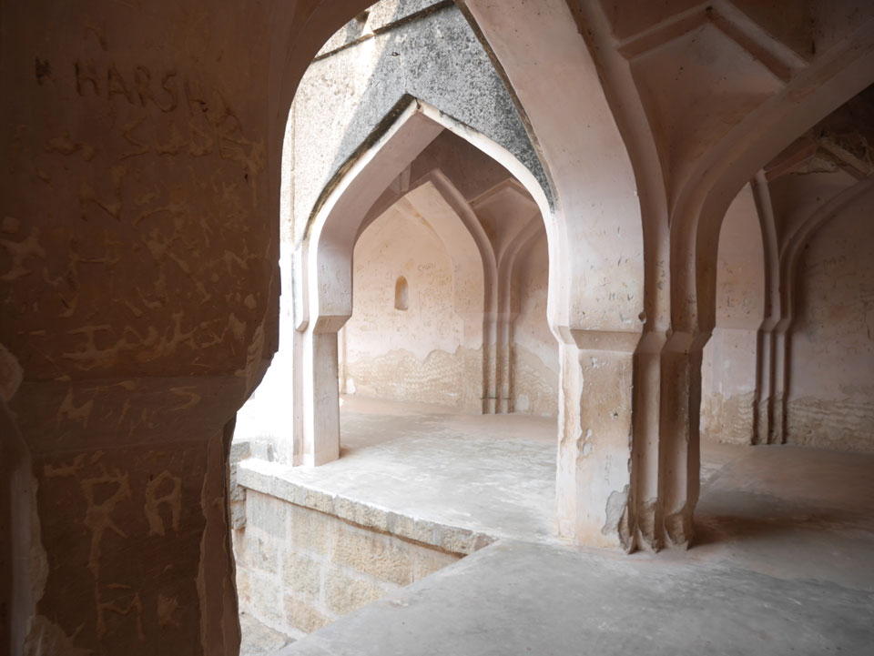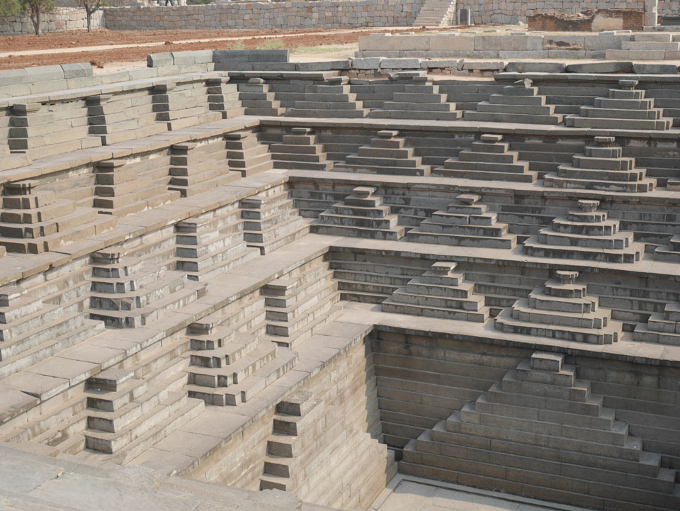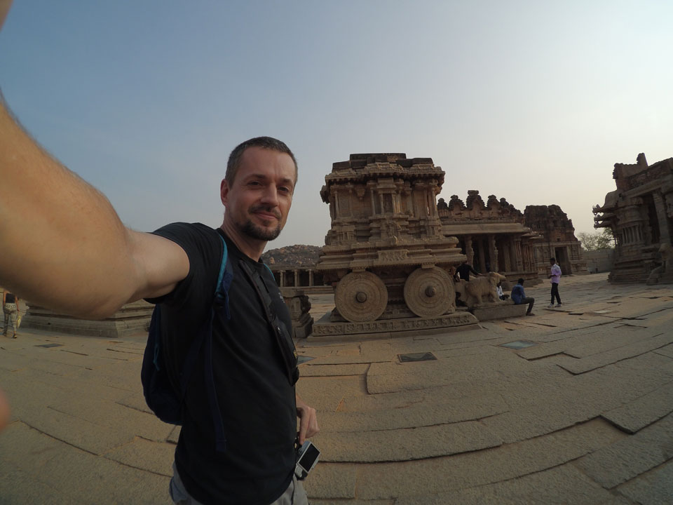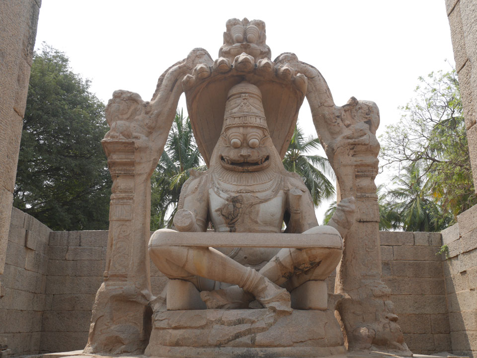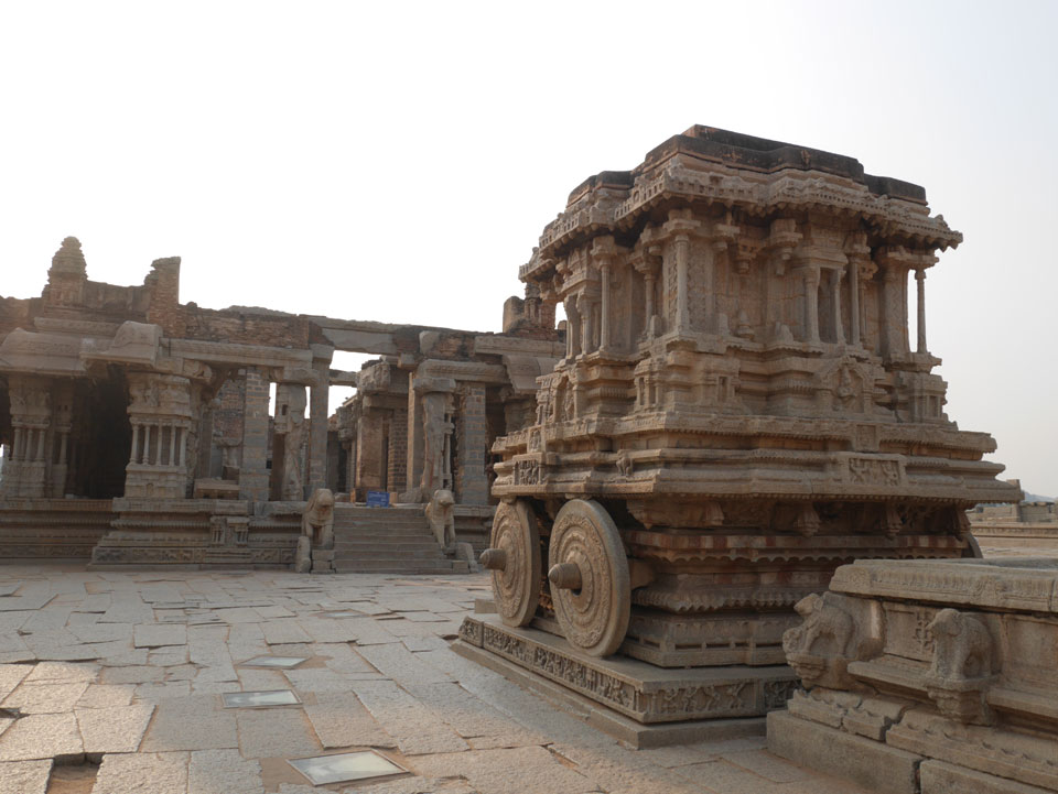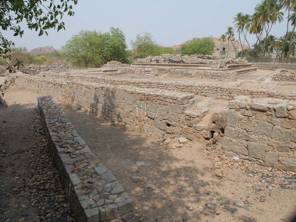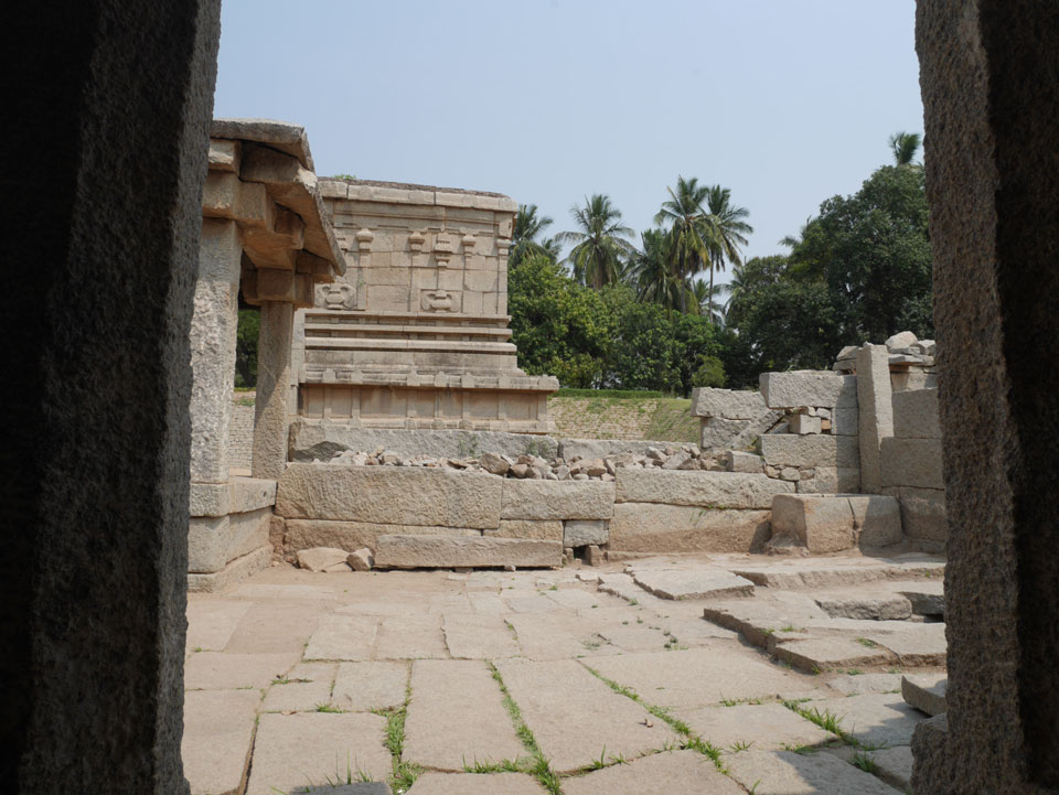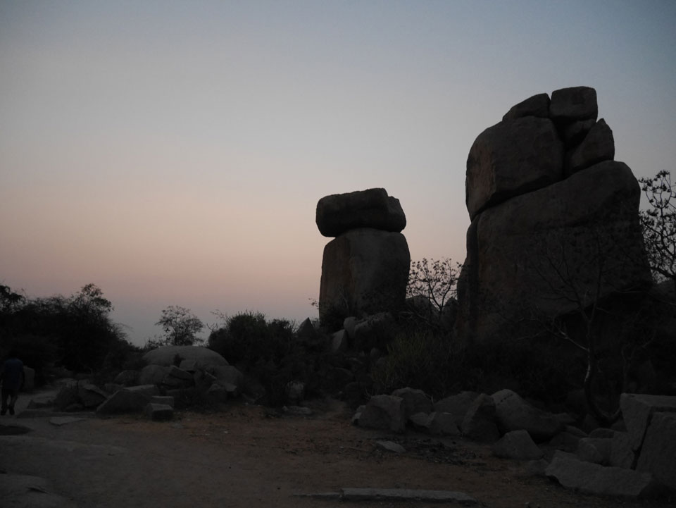 Ich sagte nur 600 zu + 100 Trinkgeld, wenn alles gut ist. Damit war der Fahrer zufrieden und wir fuhren los. Gleich am Ortsausgang Hampis war schon der erste Tempel, den ich nicht kannte. Gleich weiter ging’s zu einem mit Wasser zur Kühlung der Räume. Eine alte Frau führte durch und zeigte auf Fledermäuse an der Decke. Die 20 INR Trinkgeld waren OK für die Hobby-Führung in paar Minuten.