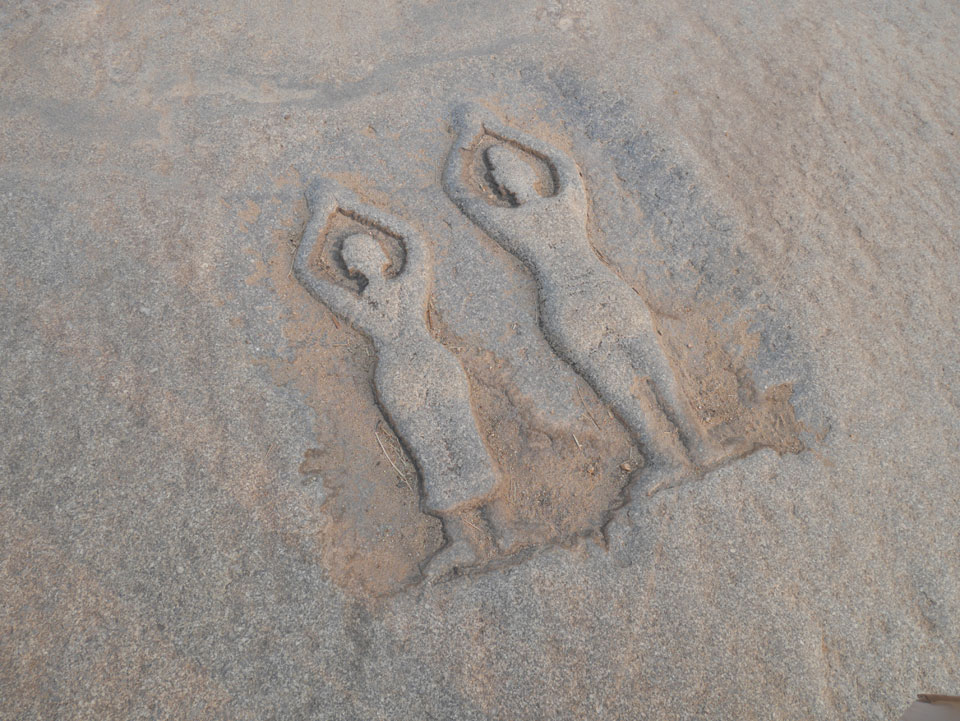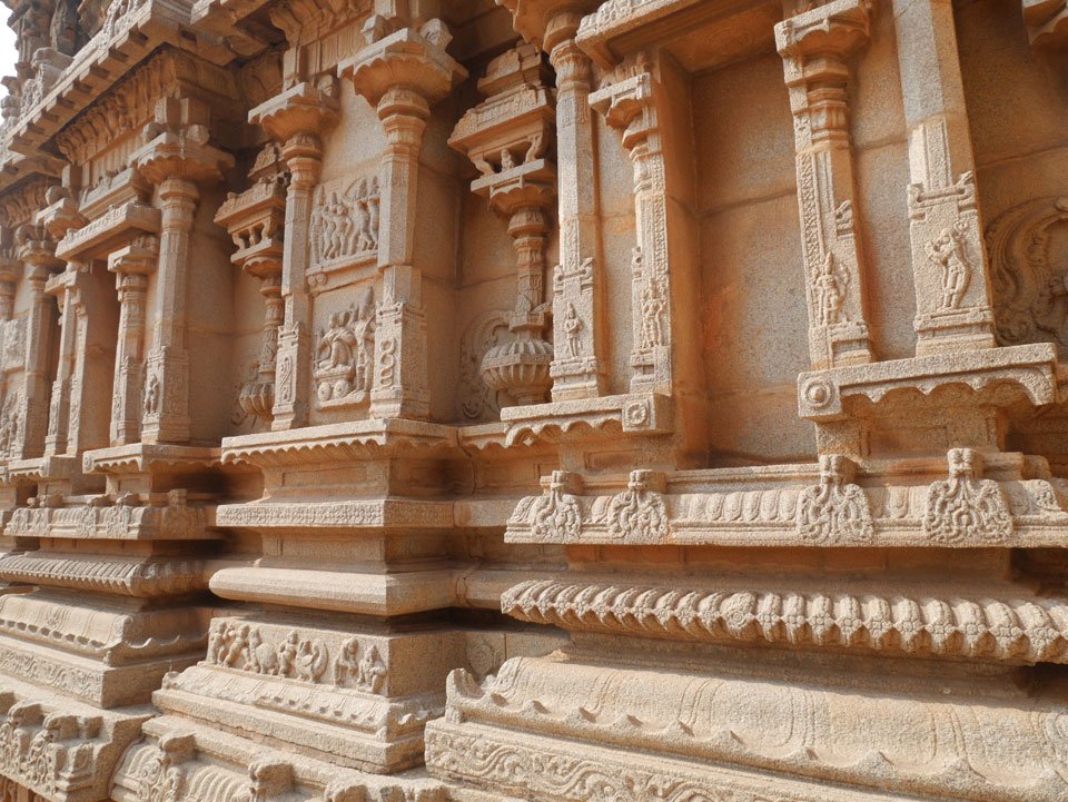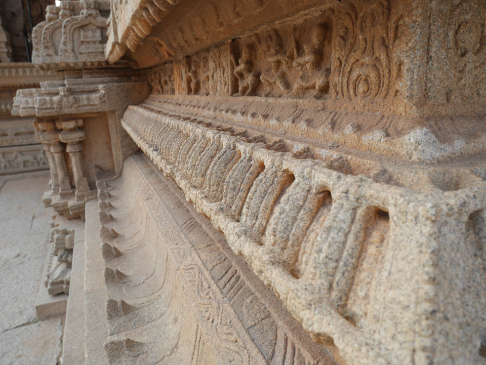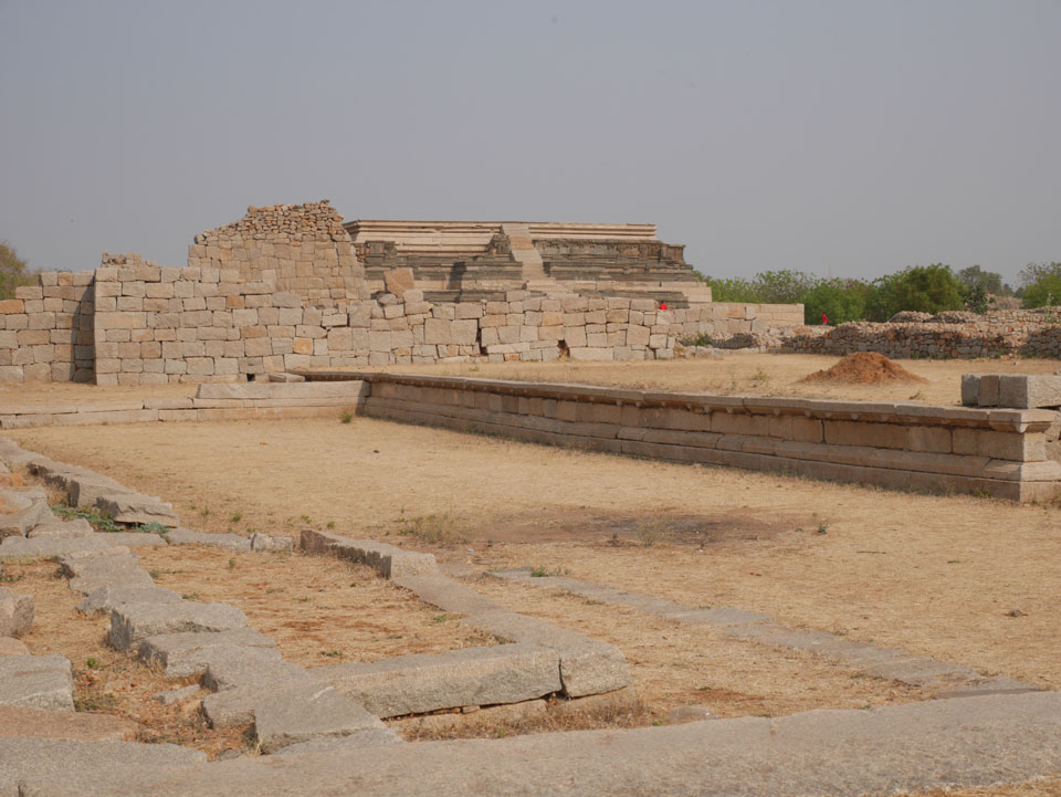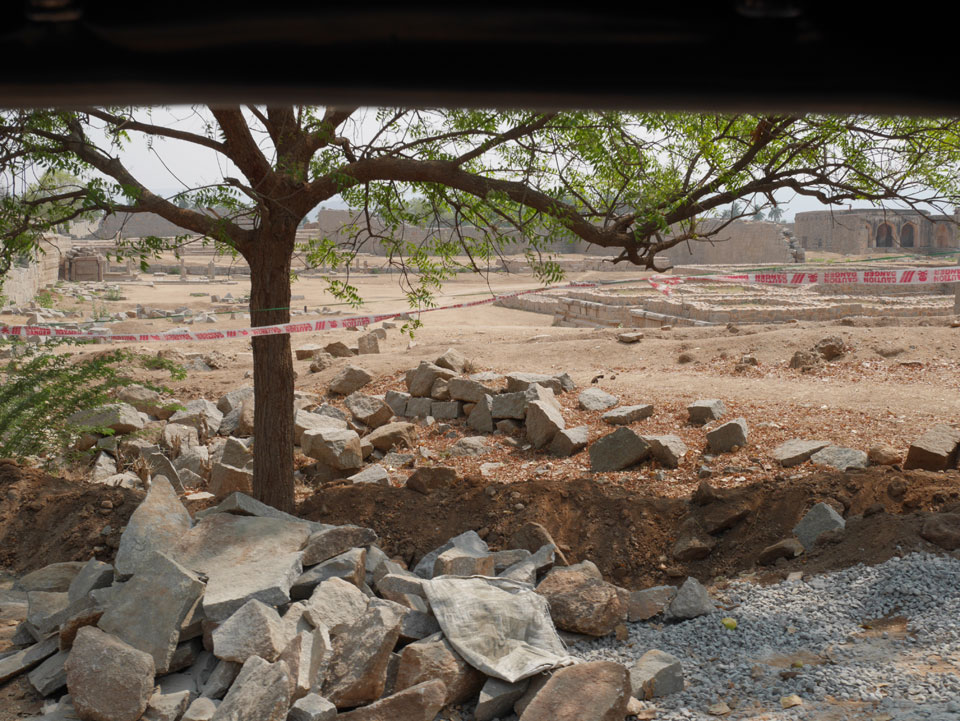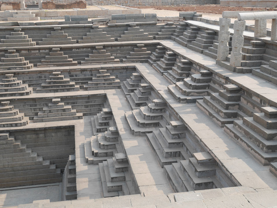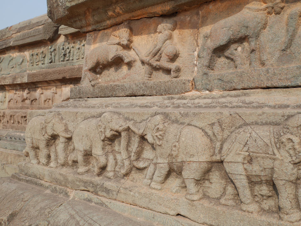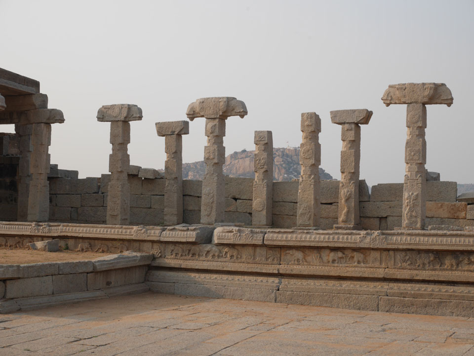 Ich sagte nur 600 zu + 100 Trinkgeld, wenn alles gut ist. Damit war der Fahrer zufrieden und wir fuhren los. Gleich am Ortsausgang Hampis war schon der erste Tempel, den ich nicht kannte. Gleich weiter ging’s zu einem mit Wasser zur Kühlung der Räume. Eine alte Frau führte durch und zeigte auf Fledermäuse an der Decke. Die 20 INR Trinkgeld waren OK für die Hobby-Führung in paar Minuten.