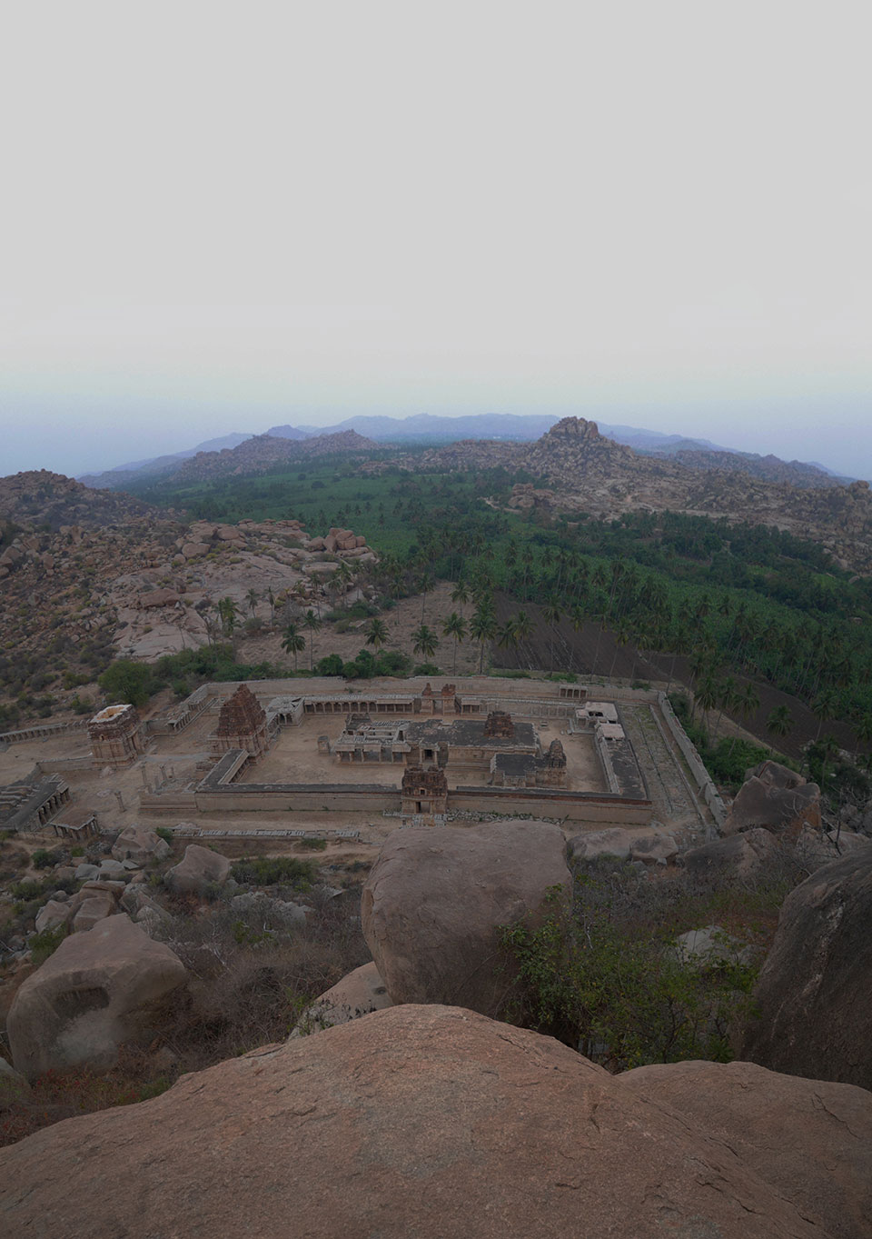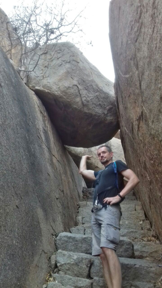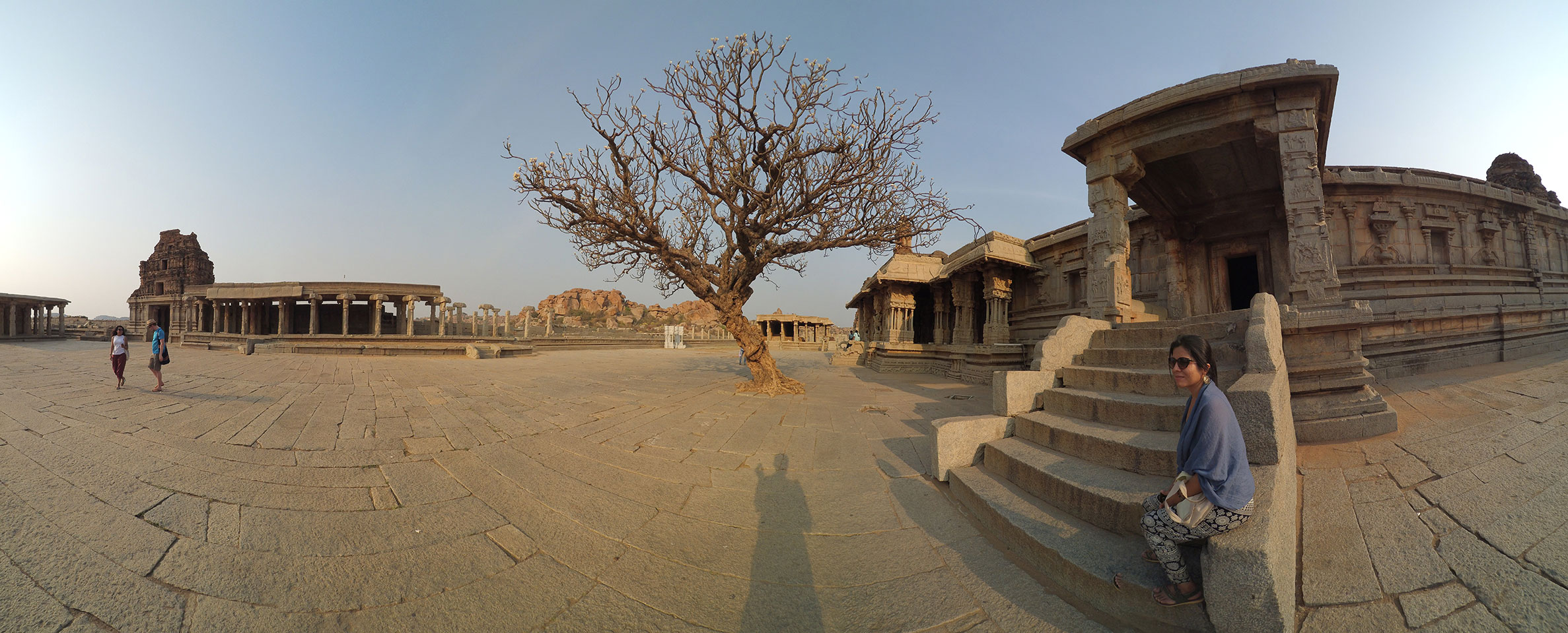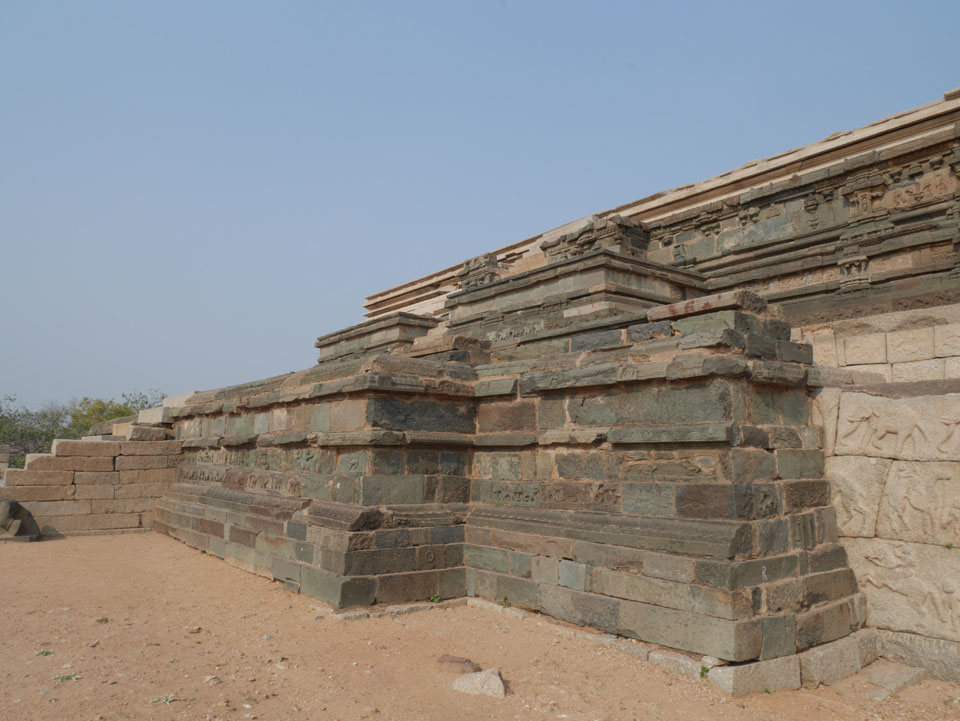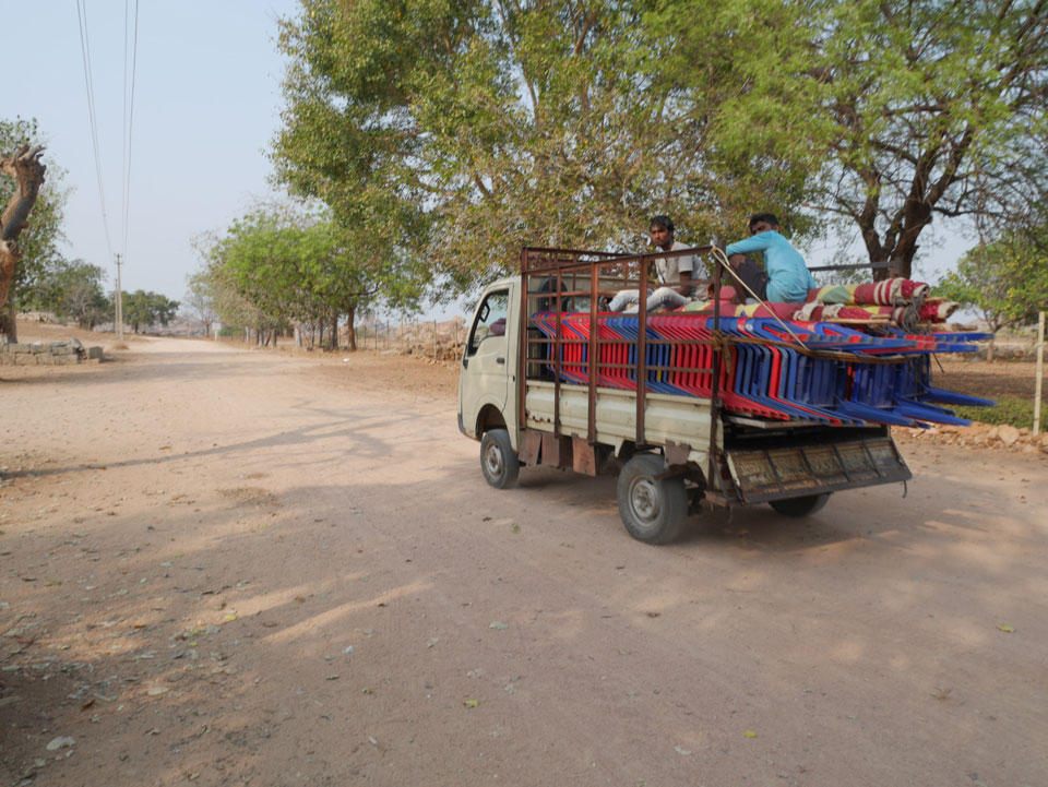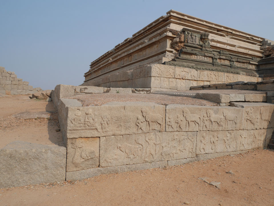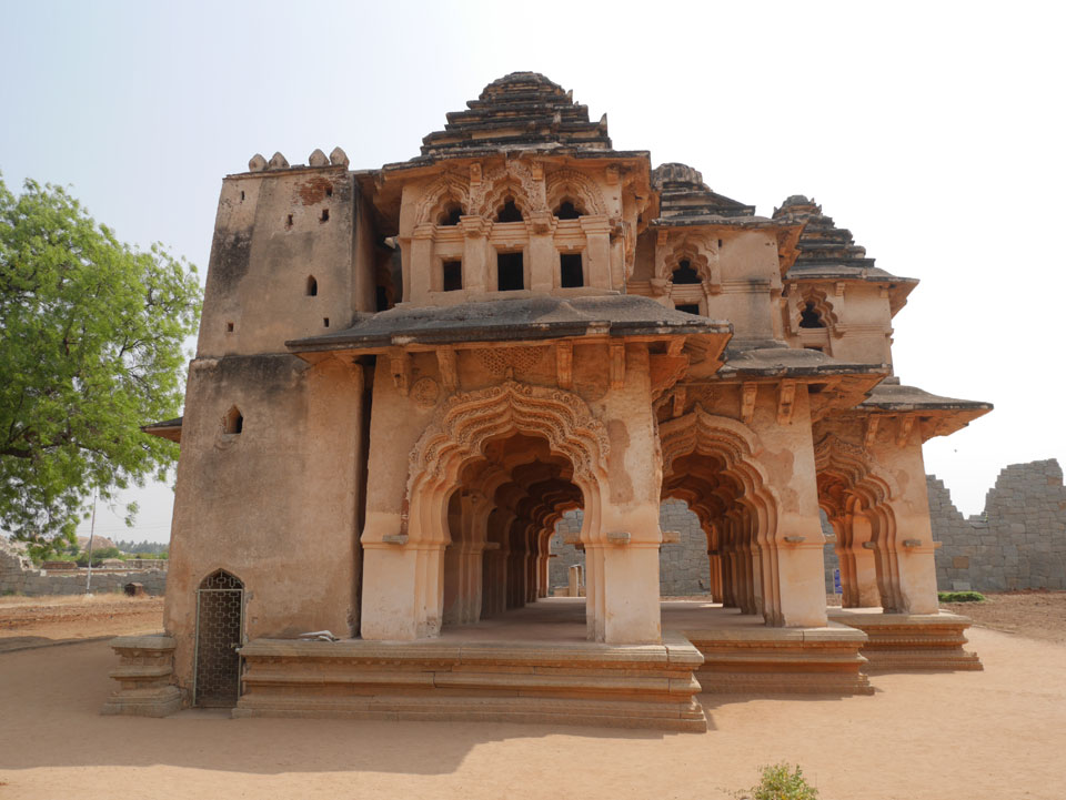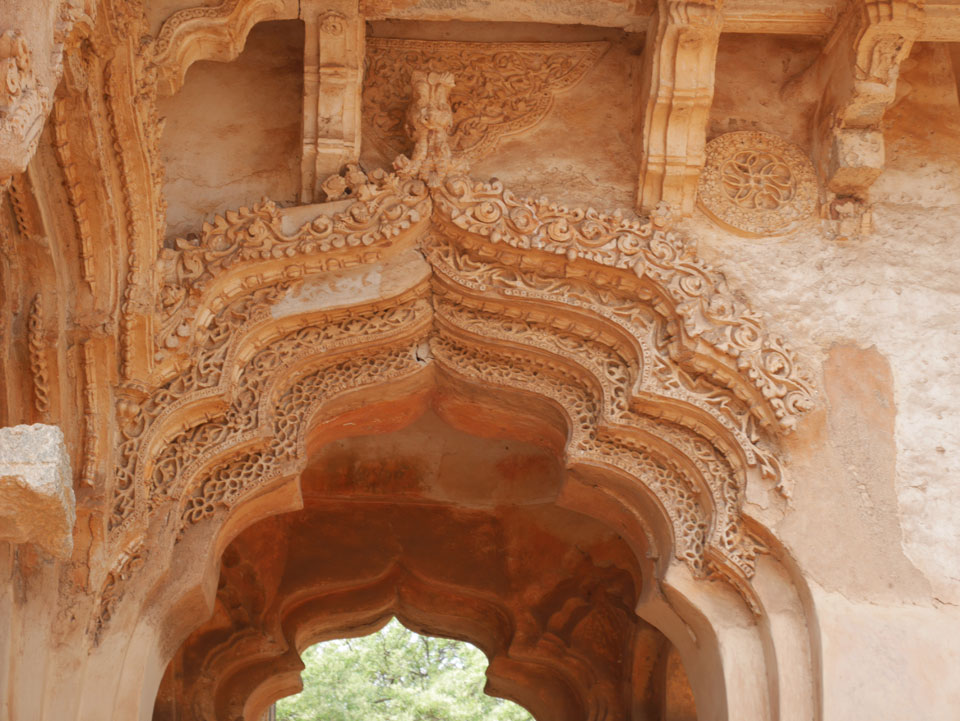 Ich sagte nur 600 zu + 100 Trinkgeld, wenn alles gut ist. Damit war der Fahrer zufrieden und wir fuhren los. Gleich am Ortsausgang Hampis war schon der erste Tempel, den ich nicht kannte. Gleich weiter ging’s zu einem mit Wasser zur Kühlung der Räume. Eine alte Frau führte durch und zeigte auf Fledermäuse an der Decke. Die 20 INR Trinkgeld waren OK für die Hobby-Führung in paar Minuten.