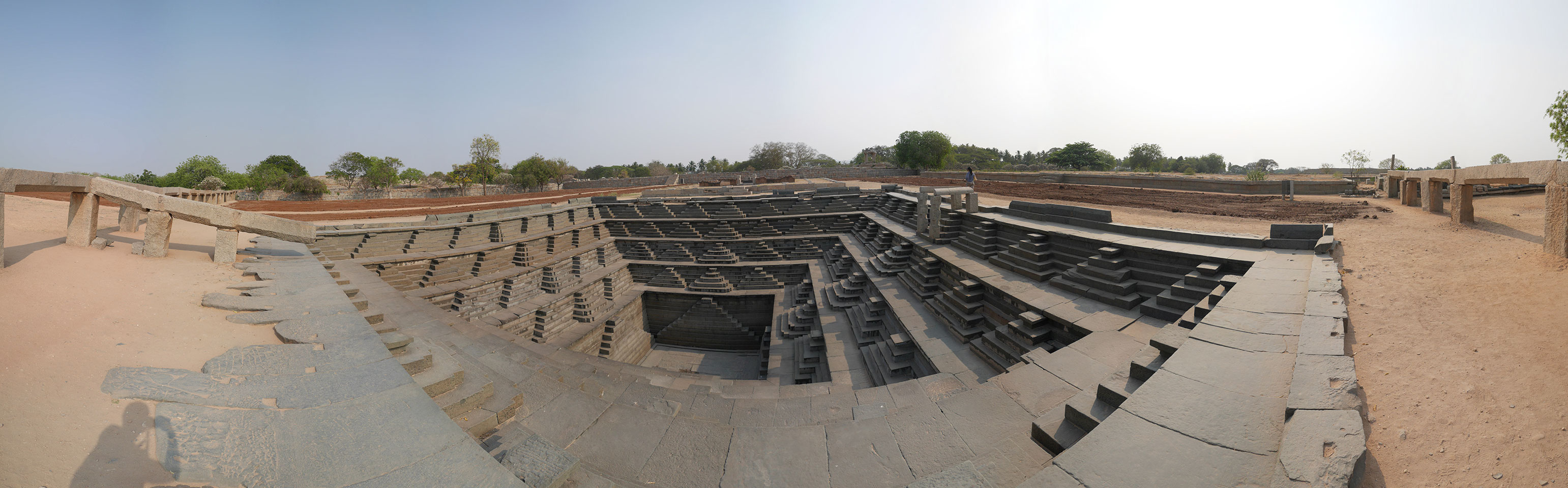 Der Rasen des letztens Jahres war mal umgepflügt worden, alles etwas braun. Wir sahen genug in der Hitze und schaute auch noch einen Stepwell und da nette Königinnen-Bad weiter unten an.