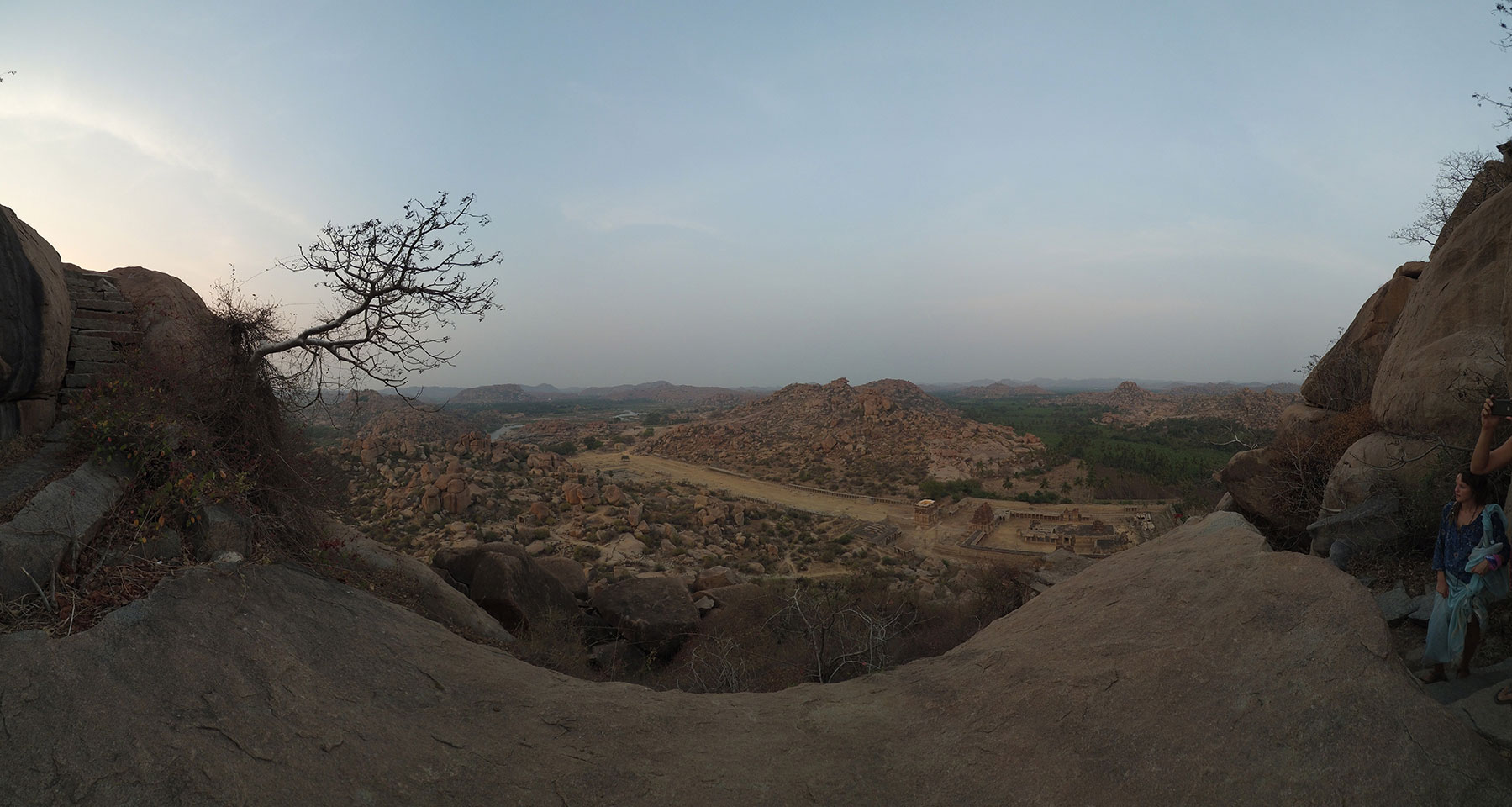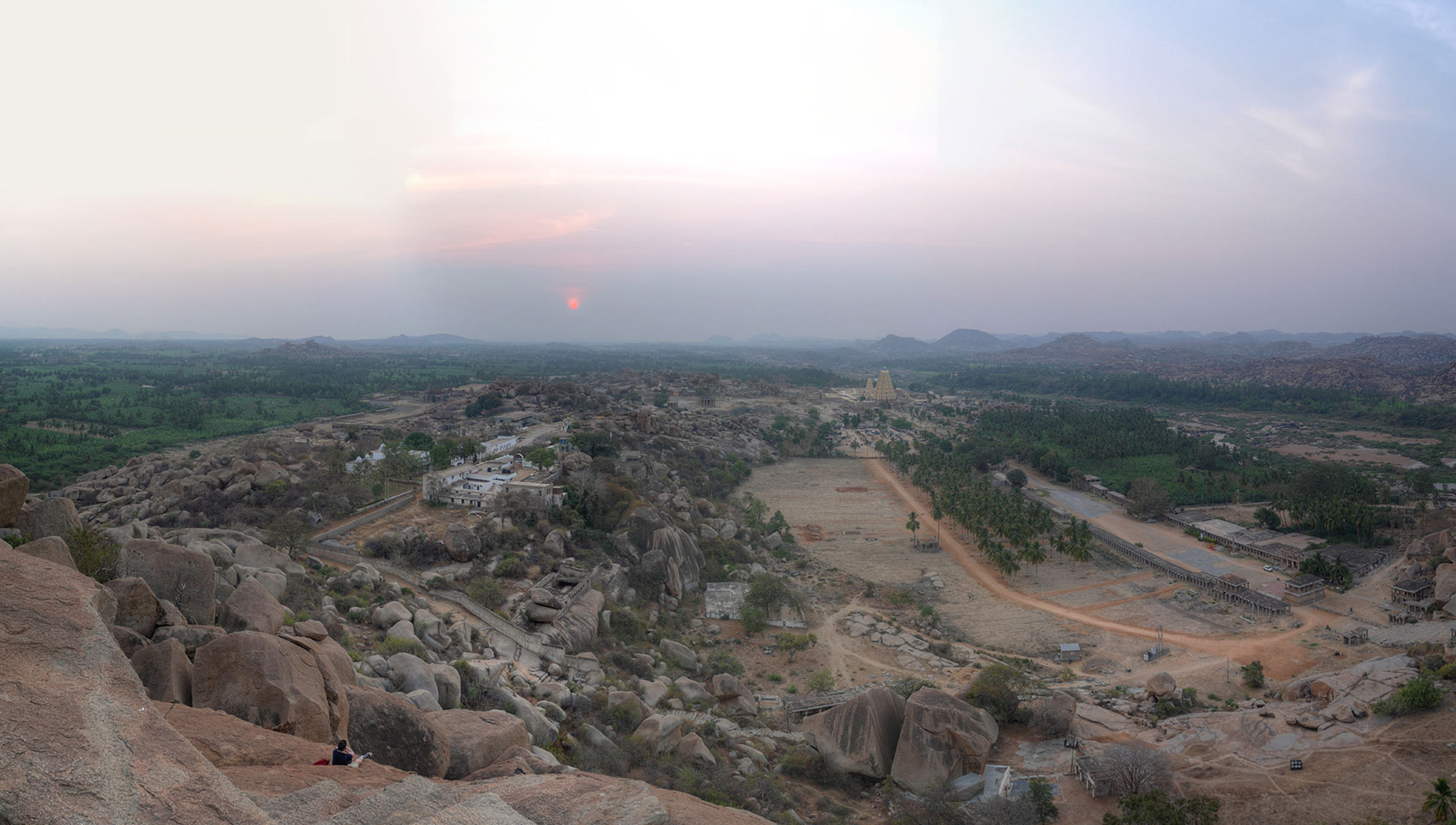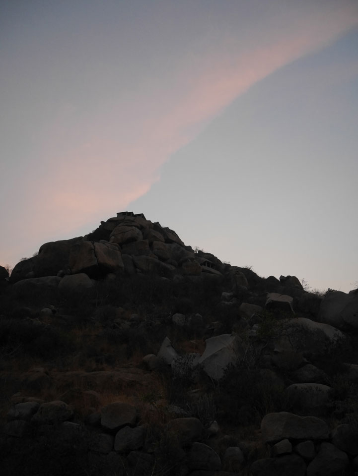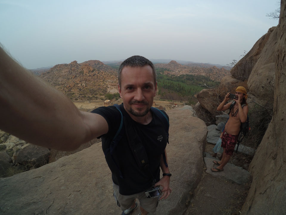 Der Weg zurück zum Sonnenuntergang war nett und wir hatten nun genug von Steinen und Tempeln. Die Zeit war richtig, noch auf den Hügel zu klettern. Jemand schlackerten in der Höhe dann doch die Knie und musste sitzenbleiben, während ich ein paar Bilder vom Sonnenuntergang schoss.
