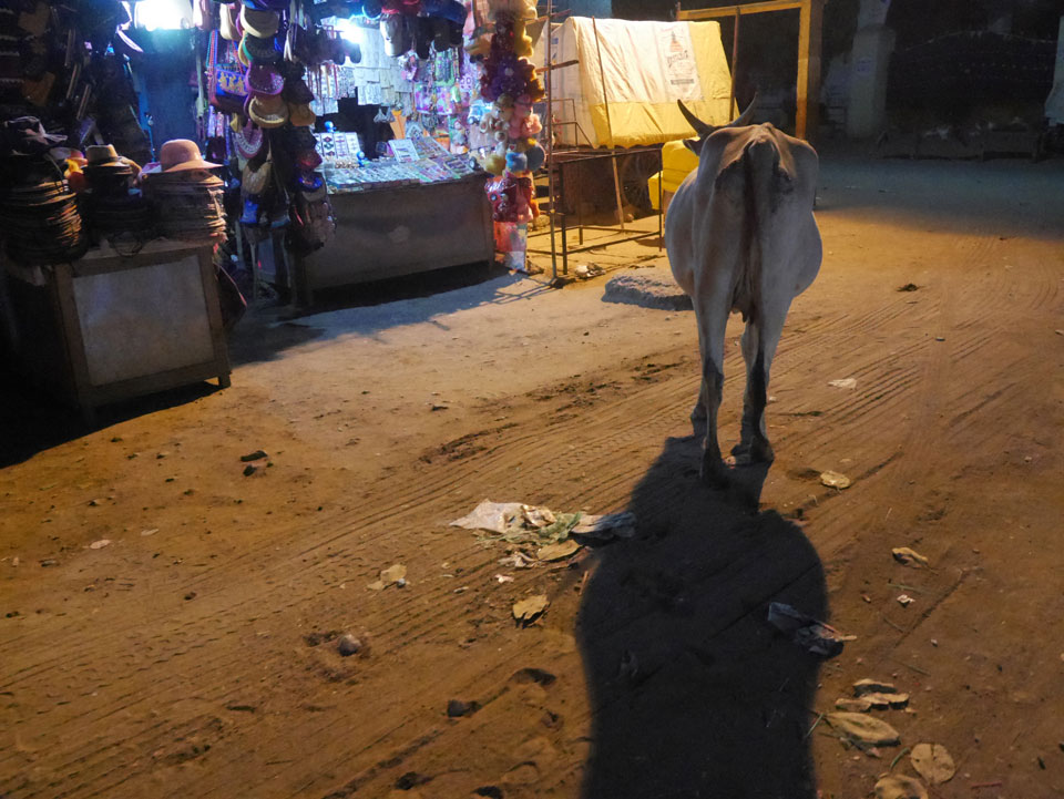 Wir starteten das Touristenprogramm in der Mittagshitze. Ich hatte den Plan, die Runde des letzten Jahres in umgekehrter Richtung zu absolvieren und vom letzten Tempel in’s Gästehaus zu spazieren. Gleich, als wir aus dem Gästehaus waren, kam ein zufäliiges Tuktuk an, das 800 INR für die Sache haben wolle.