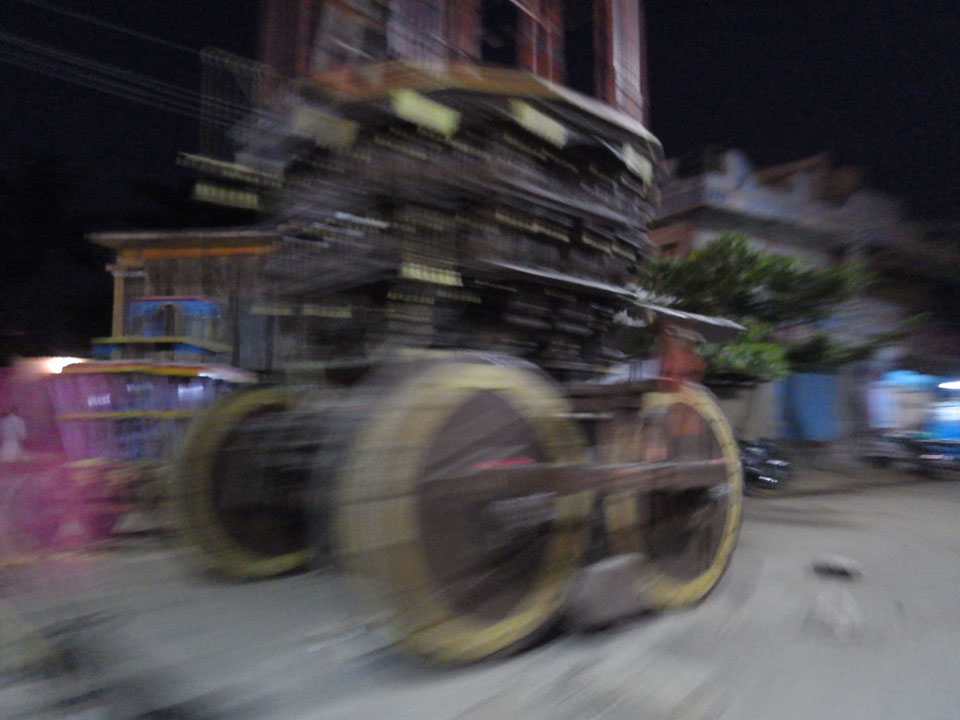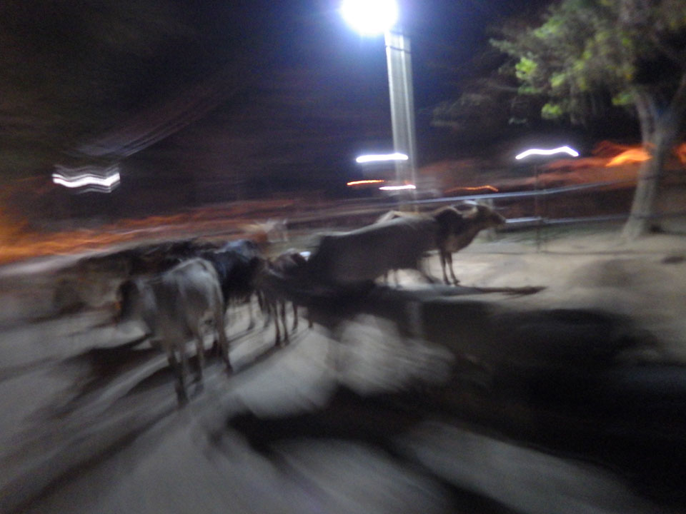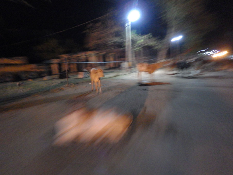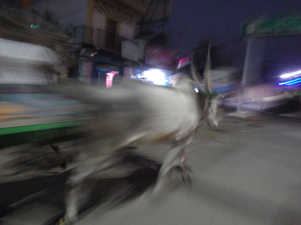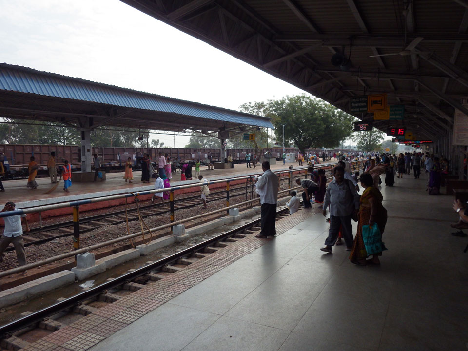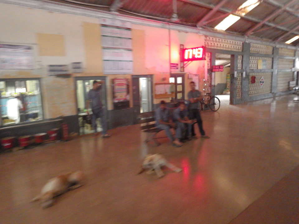 Am Bahnhof dann nach einer halben Stunde Fahrt durch die Nacht. Auf den Straßen ist ganz schön was los. Ochsenkarren und Leute, die zur Arbeit woauchimer gehen. Manchmal hatte das den Anschein, als wäre man hundert Jahre in der Vergangenheit. Am Bahnhof dann hatte jemand das letzte Cash – 500, doch der Fahrer war nicht so cool, Wechselgeld dabei zu haben. Ich wollte aber auch kein großes Trinkgeld geben, wenn es nicht mein Geld ist. An einem Stand wollten wir wechseln aber ich kaufte gleich was ein: 2 Flaschen Wasser, zwei Chai (einer für den Fahrer), Schokokekse und er nahm noch eine Zigarette. Das waren zufällig genau 100 Rupees. Na dann.