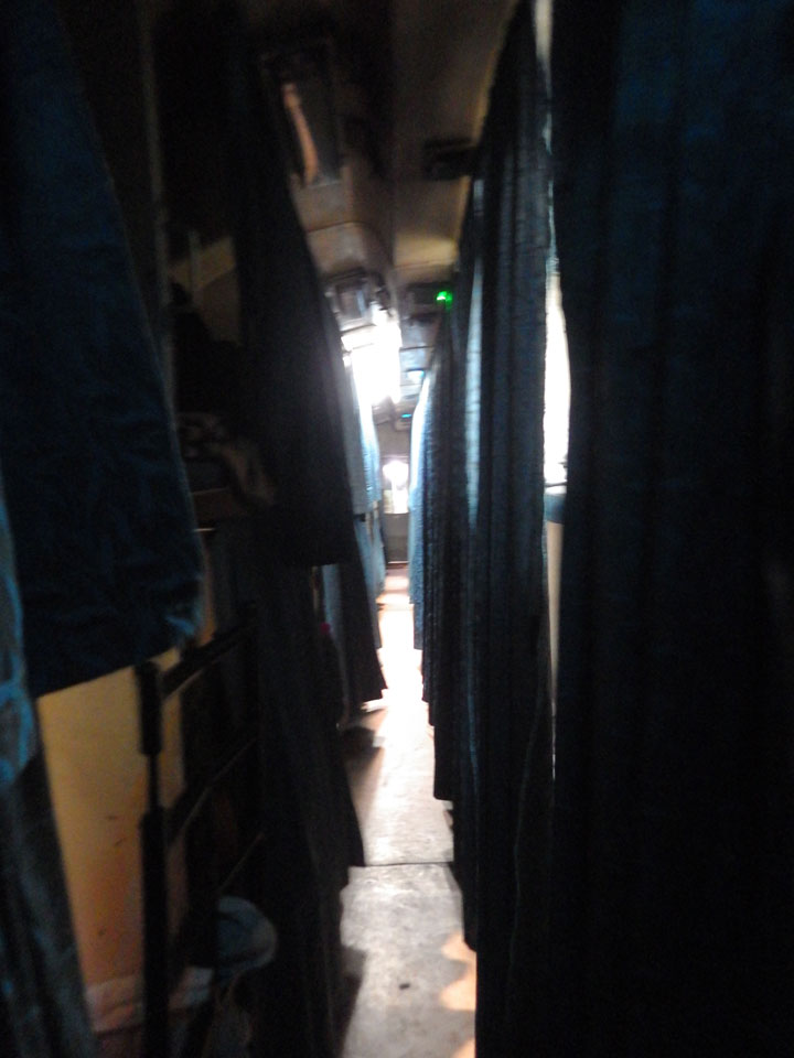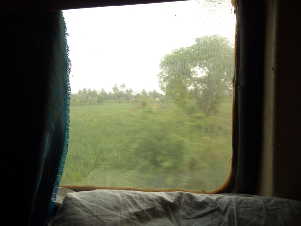 Das Kleinkind der Familien war oft mit einem Tablet und Babyspiel beschäft, krakelte jedoch bei jeder Kleinigkeit los. Ich lag auf dem oberen Bunk und hatte mit der Klimaanlage ordentlich Kälte und Lärm. Eine Jacke war notwendig. Durch die Verspätung änderte ich den Plan noch bis nach Palolem zu kommen und den Süden mit Agonda aufzurollen. Ist heute einfach nicht drin, weil der letzte brauchbare Zug gegen 16:20 fährt. Stattdessen buchte ich was günstiges an Benaulim Beach – nur um die 1000 INR die Nacht, jedoch ohne Klima und Komfort. Nach der kurzen Nacht nickte ich nun oft weg. Als nach einigen Stunden das Kind mal schlief, kam der Wagon etwas mehr zur Ruhe.