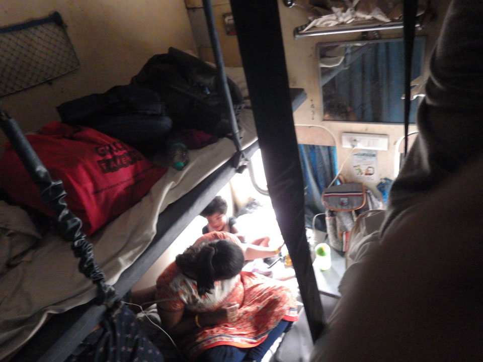 Der Zug kam endlich. Wie damals in 2017 saßen auf unseren Plätzen Leute. Die indische Eisenbahn vergibt die Reservierungsplätze mehr oder weniger zufällig. Ich hatte vor einigen Wochen reserviert und wir hatten Platz 1 und 2, was mit dem Riesenkoffer gut war. Etwas Diskussion mit der Familie, die sich dann umsetzte. Ich machte locker, jemand hatte aber die zweite AC Klasse in Indien noch nicht so gesehen. Frische Bettwäsche kam schließlich und wir bekamen auch unsere Plätze.