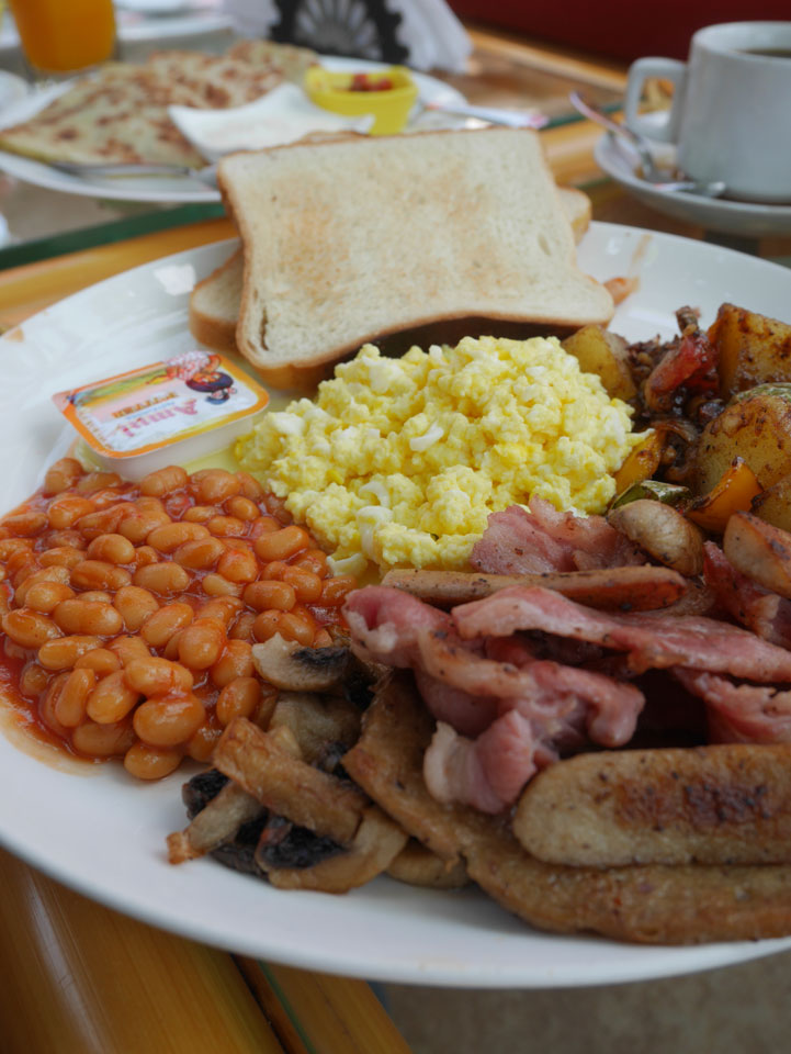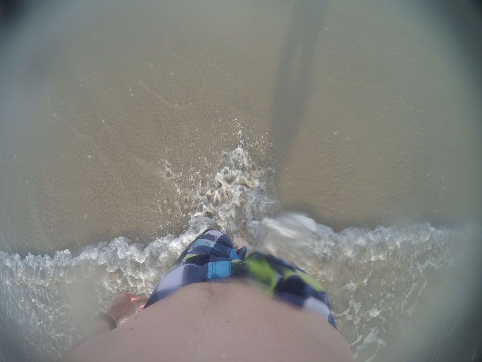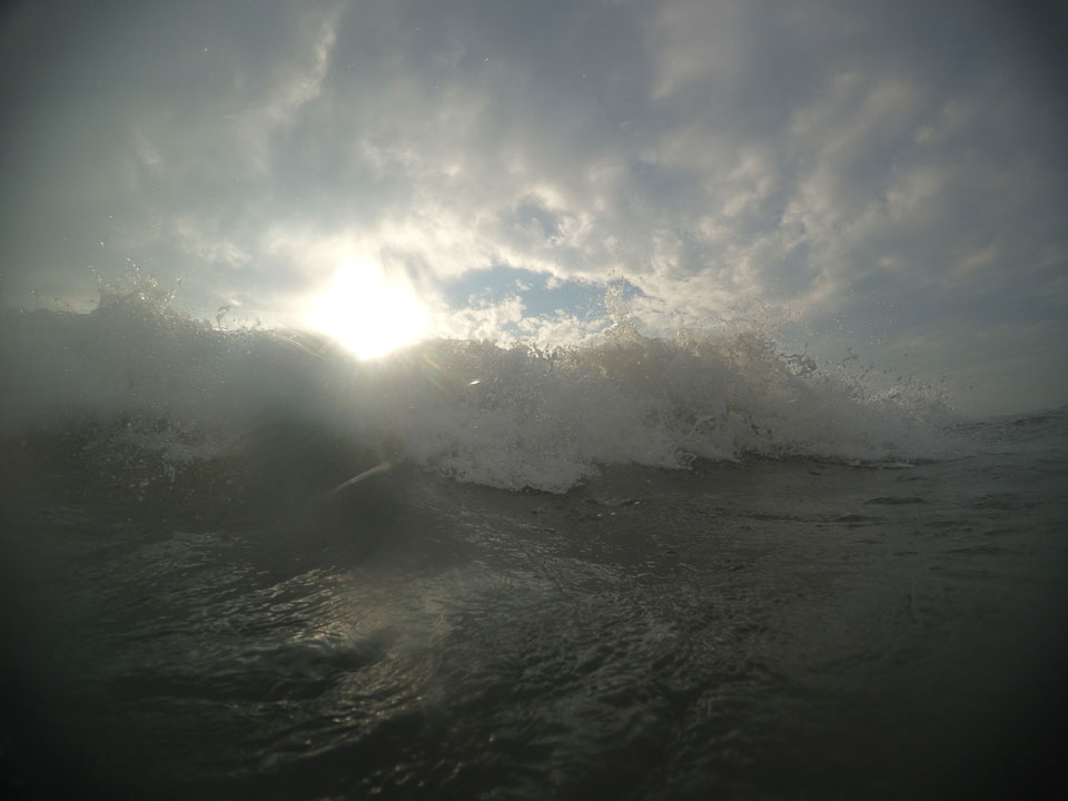 Das Full Monty Frühstück im Valonia’s Wheels war ganz OK. Eine frische Brise brachte die Sonne zum Vorschein. Tollen Strandwetter mit etwas Wellen und meiner Yi im Unterwasser-Gehäuse.