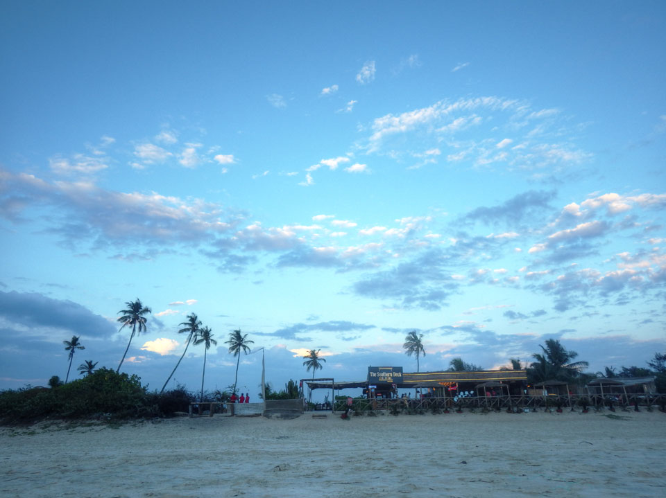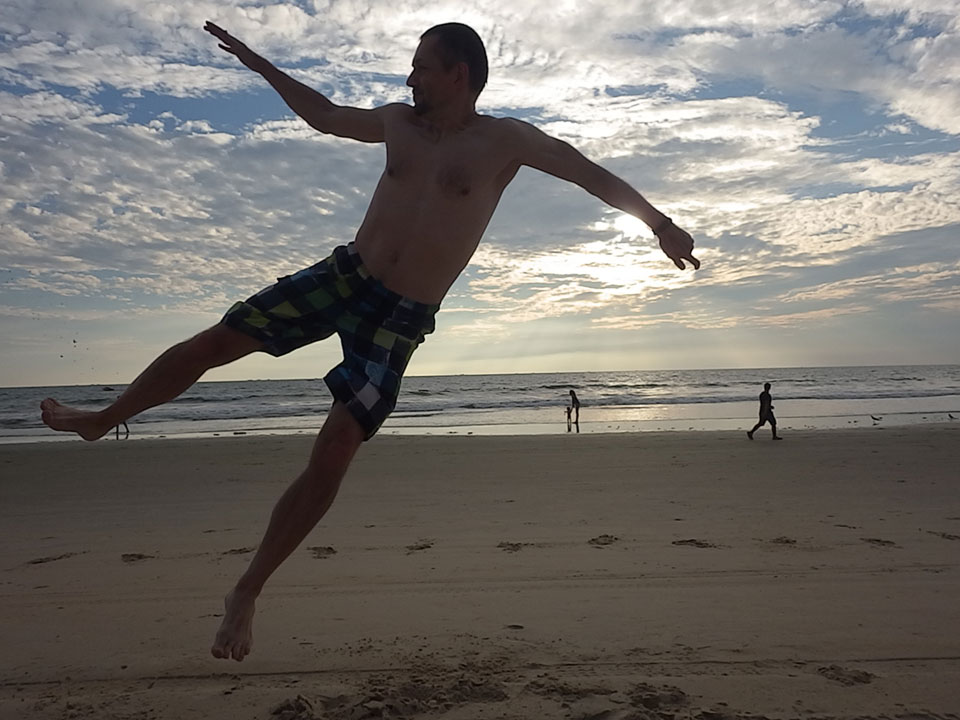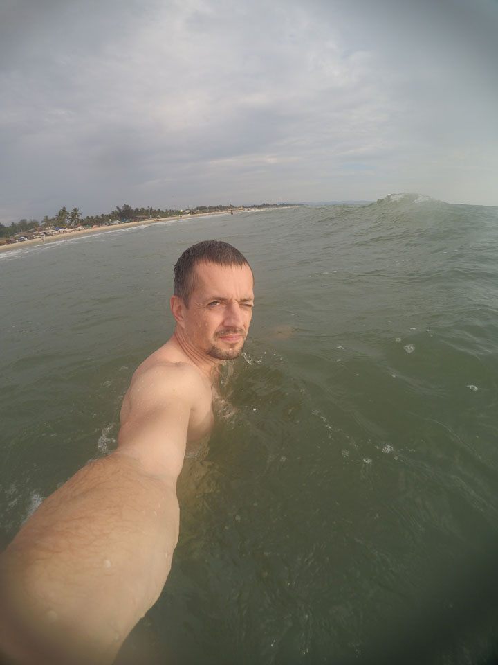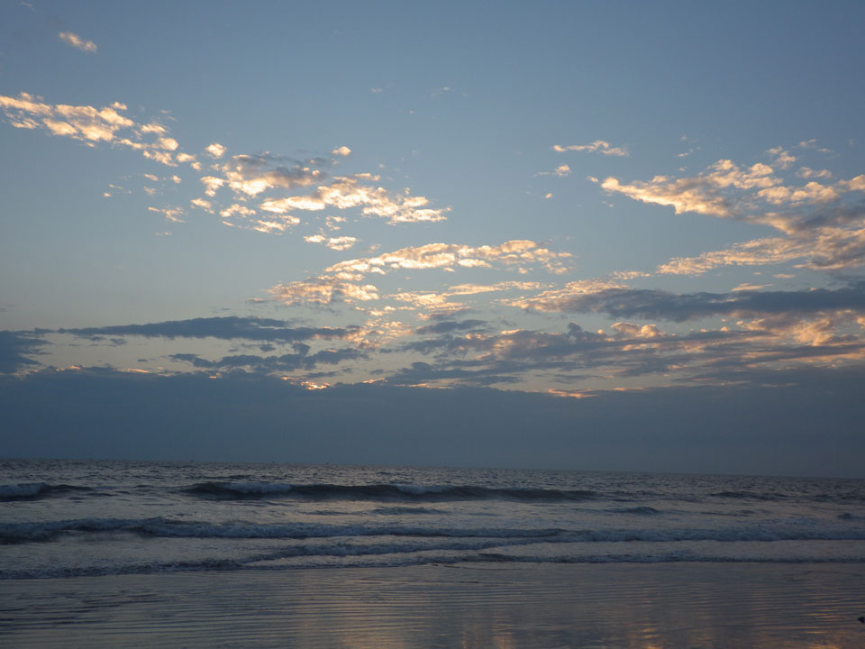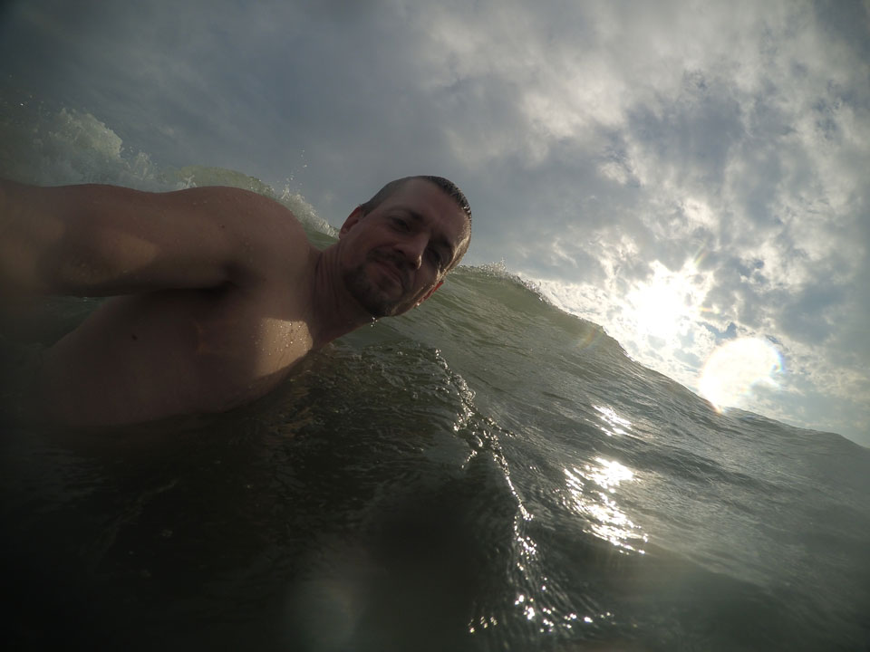 Ich ging ein paar Mal baden und genoss das Wasser heute sehr. Die Nachsaison läuft wohl. Man hat überall Platz. Nur eine Handvoll Leute ist im warmen Wasser. Alles super! Der Sonnenuntergang mit den Wolken sah auch hübsch aus.