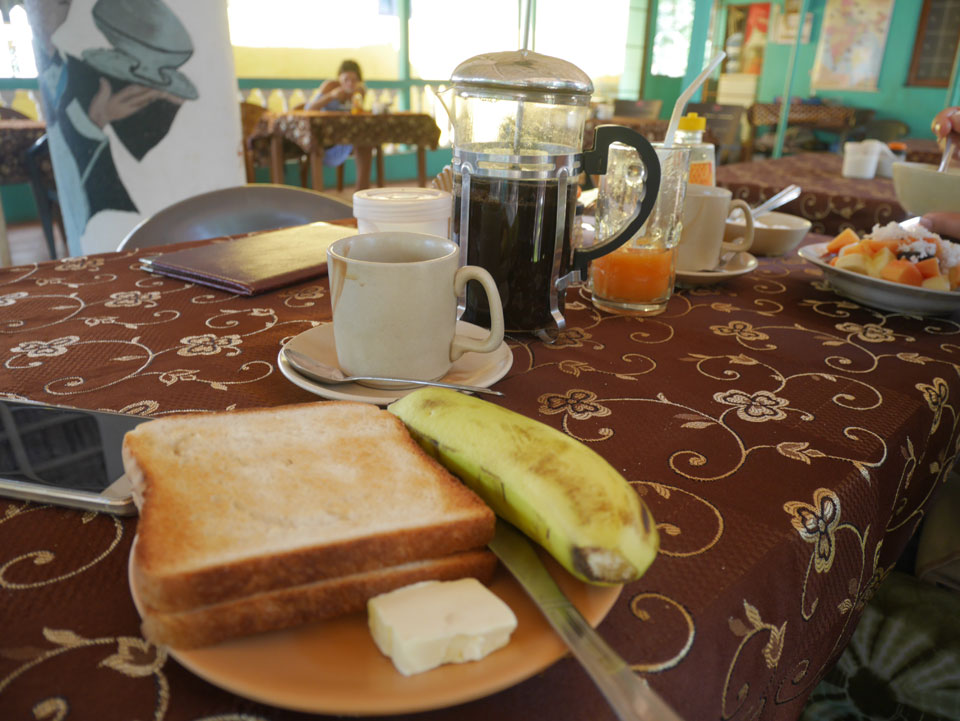 Unser Zug stand erst gegen 14:30 an. Ich hatte eine später Auscheck-Zeit ausgemacht und so gingen wir in brütender Hitze erst mal wieder im Palmira Guesthouse frühstücken. Echt gute Value da. In einem Monat schließen sie für die Saison, weil dann zu wenige Leute kommen.