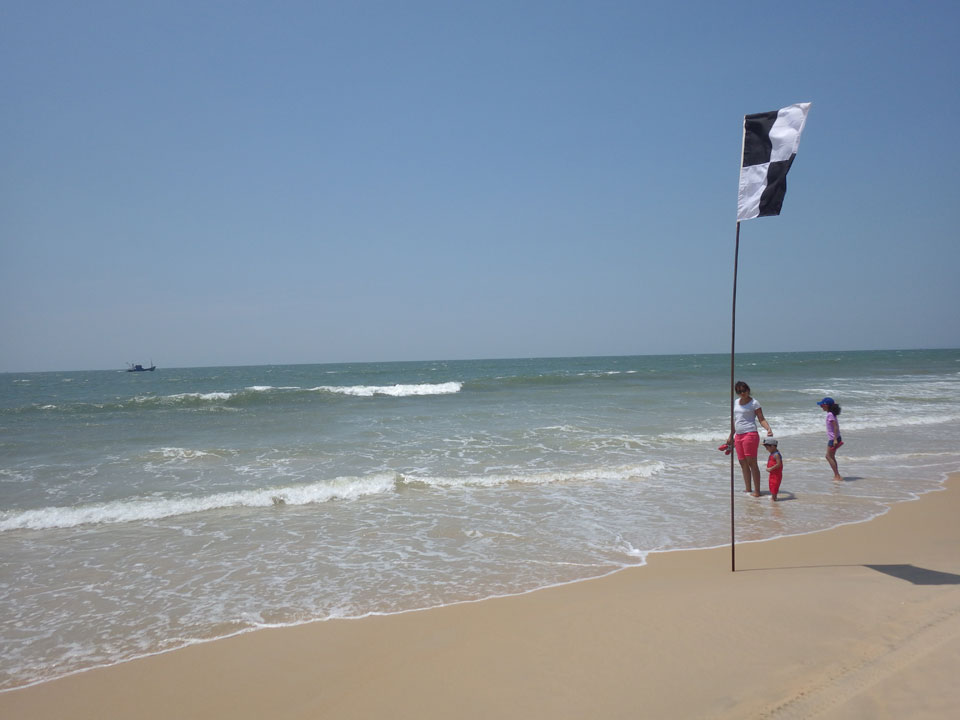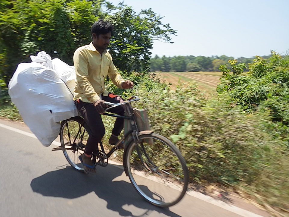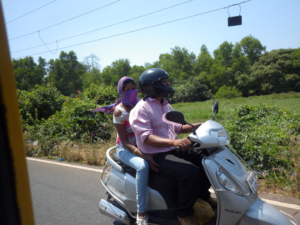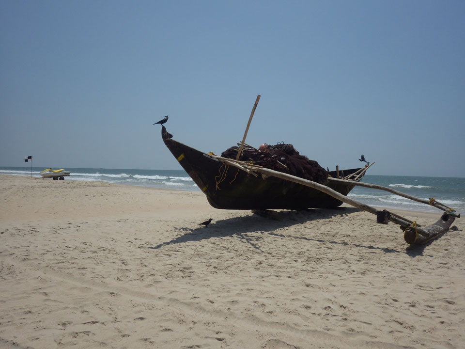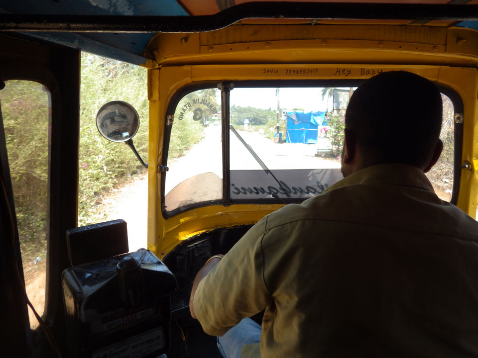 Zurück im Zimmer wartete schon eine Putzfrau. Sie wollte loslegen aber wir waren noch nicht fertig. Ein paar Rupien Trinkgeld freute sie. Als wir gepackt hatten, checkten wir nochmal den Strand. Baden wäre zwar cool gewesen aber irgendwie war die Sache gelaufen. Es ist Mittags einfach zu irre hell und heiß. Wir machten das erstbeste Tuktuk für den Transport zum Flughafen klar. Die Sachen passten gerade so rein, wie immer.